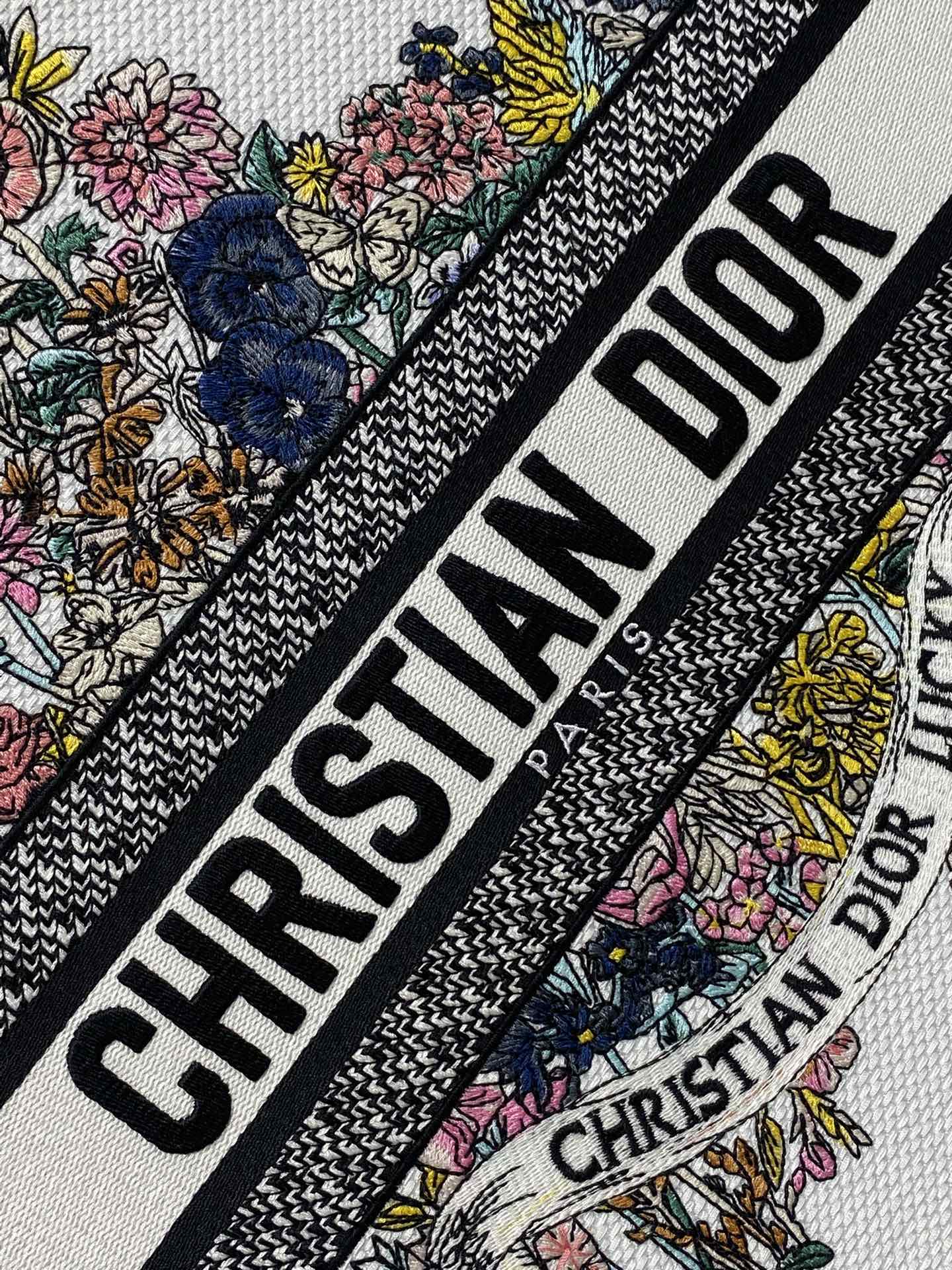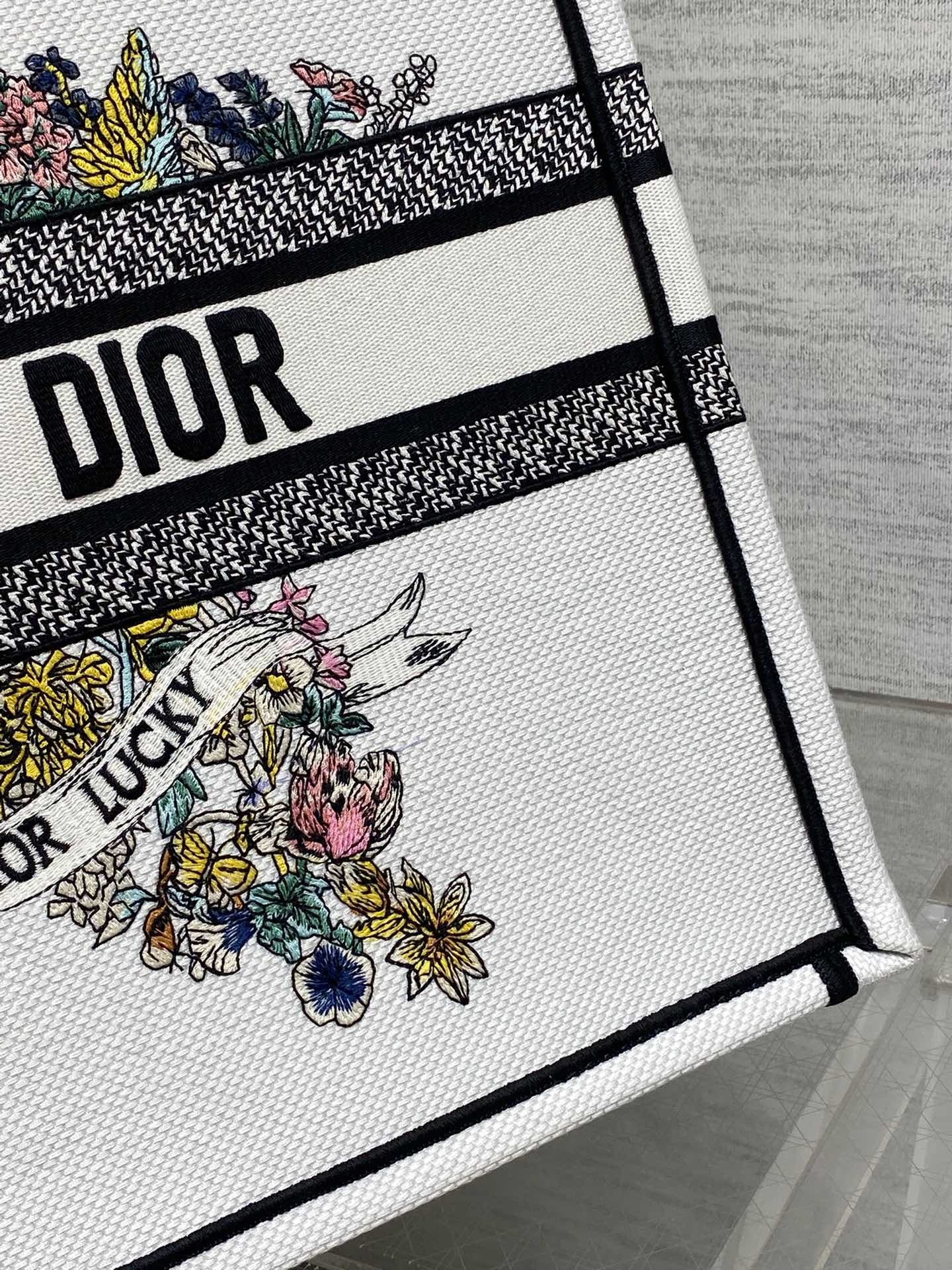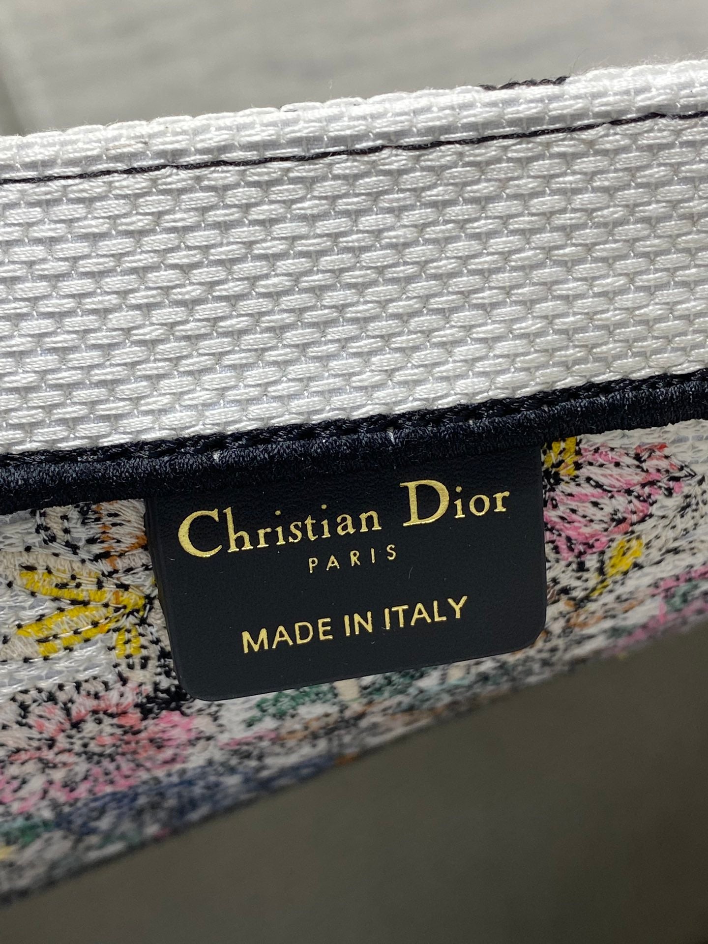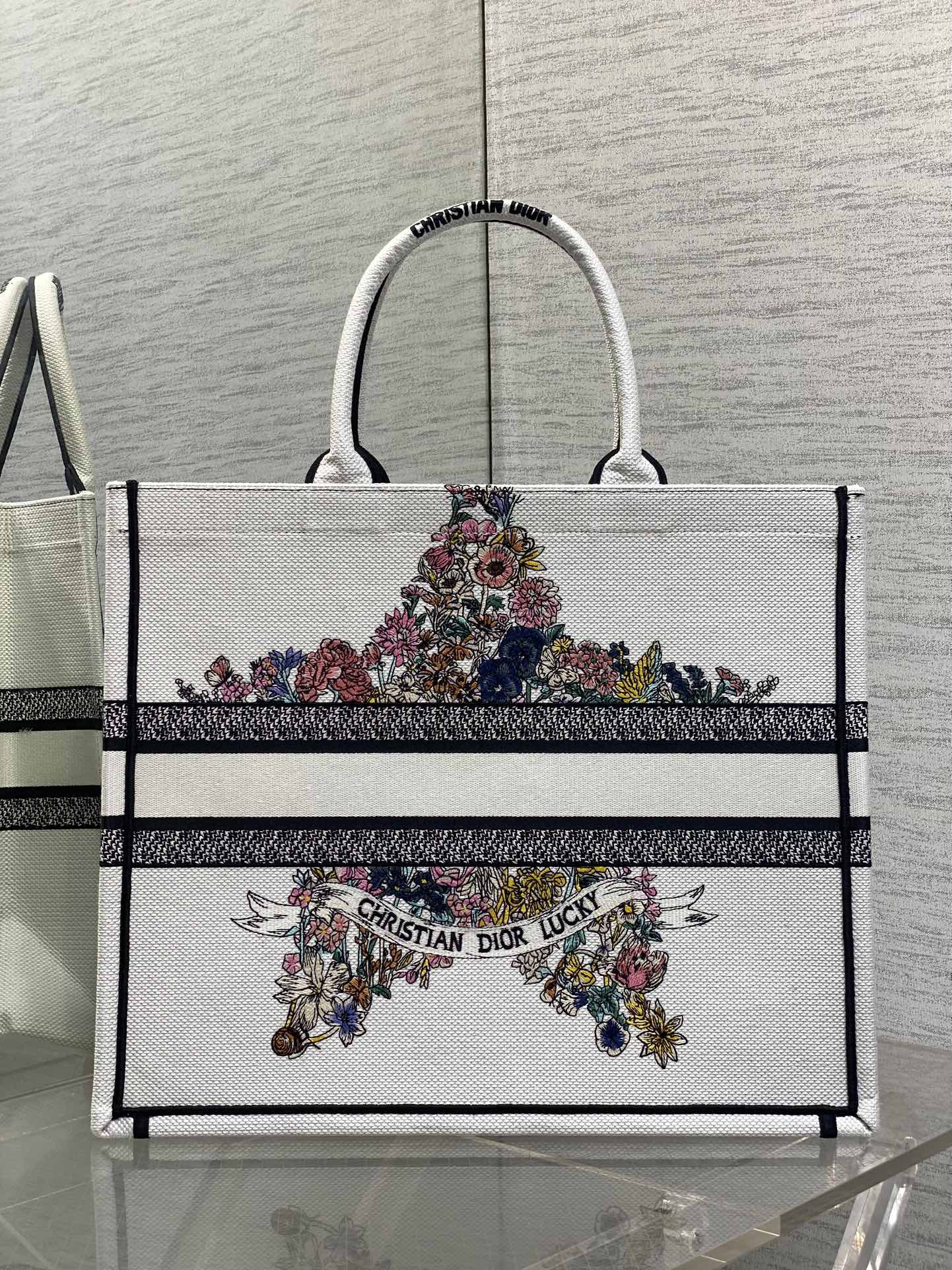 DIOR 25S LUCKY LARGE DIOR BOOK TOTE 42 IN WHITE MULTICOLOR DIOR STAR EMBROIDERY