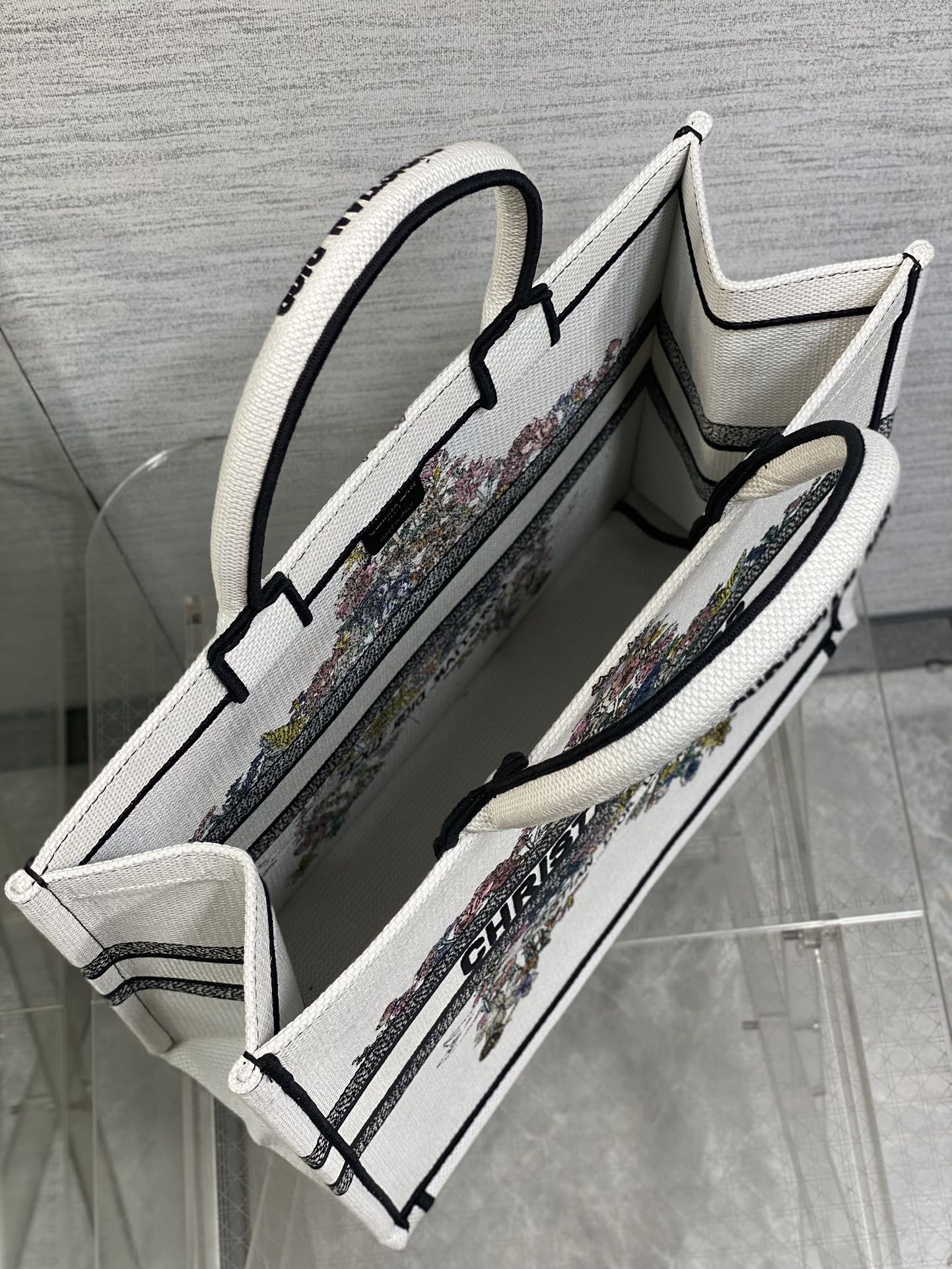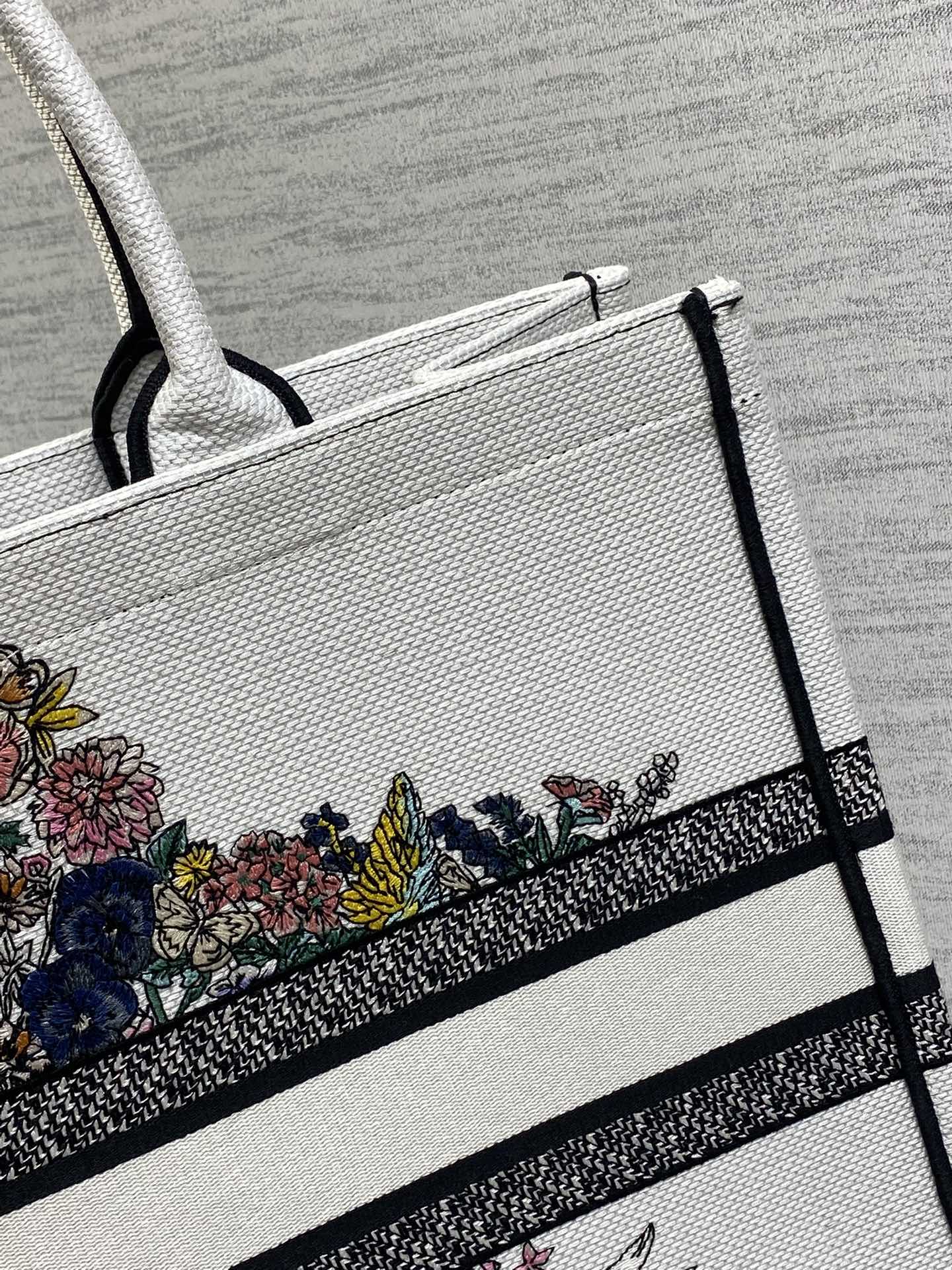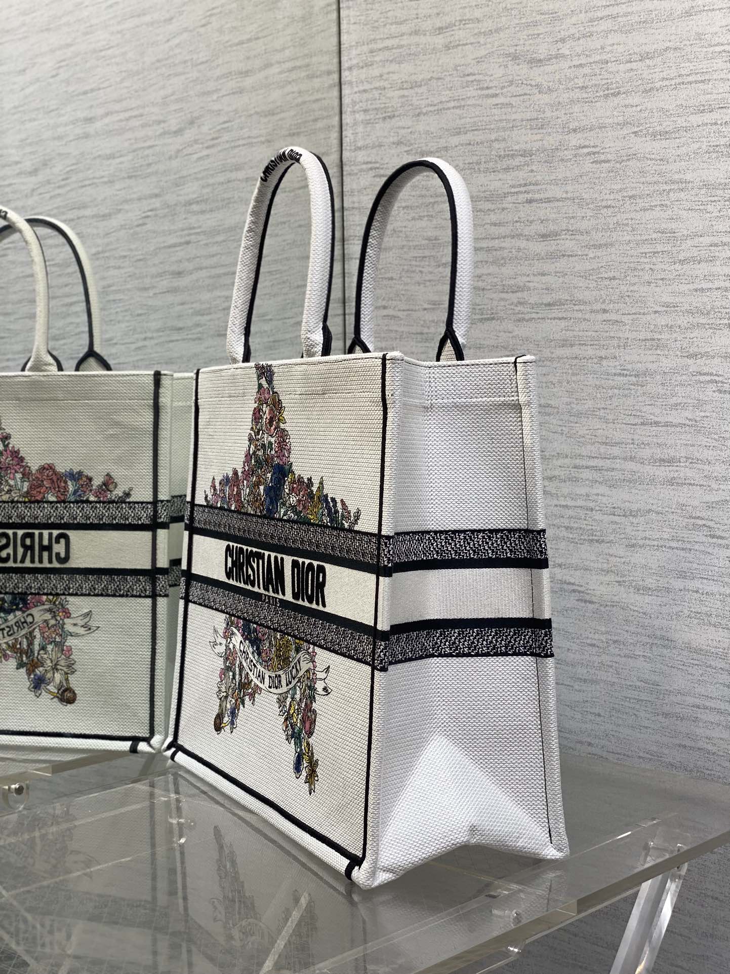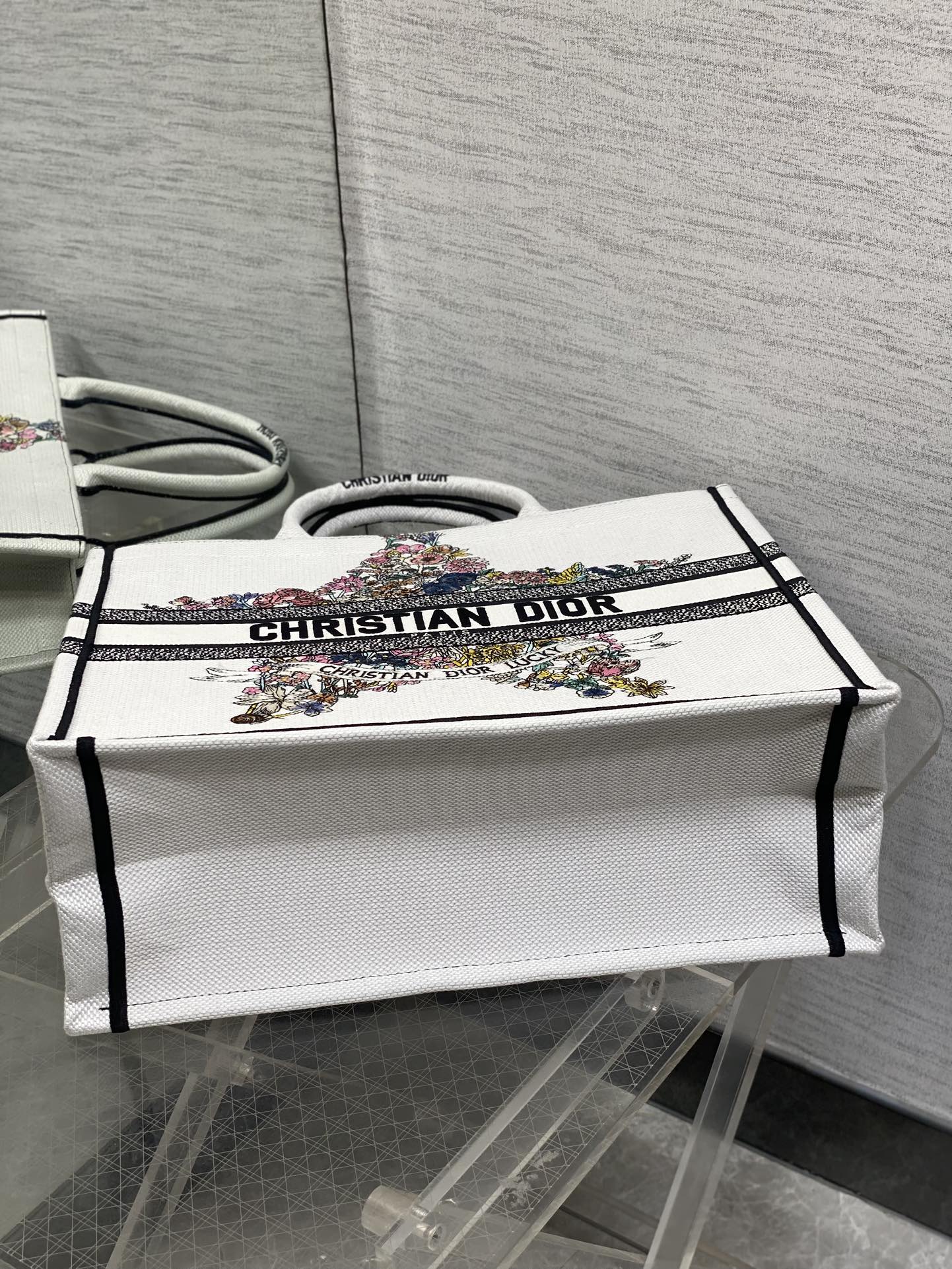 DIOR 25S LUCKY LARGE DIOR BOOK TOTE 42 IN WHITE MULTICOLOR DIOR STAR EMBROIDERY