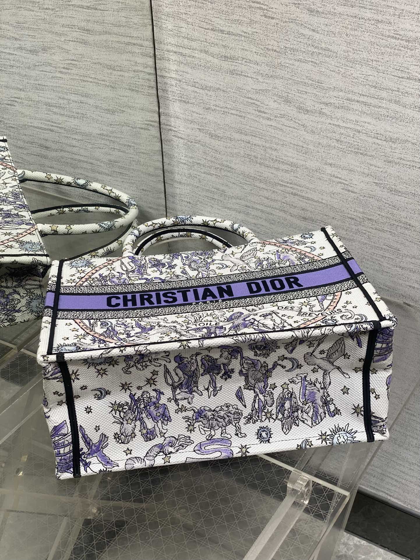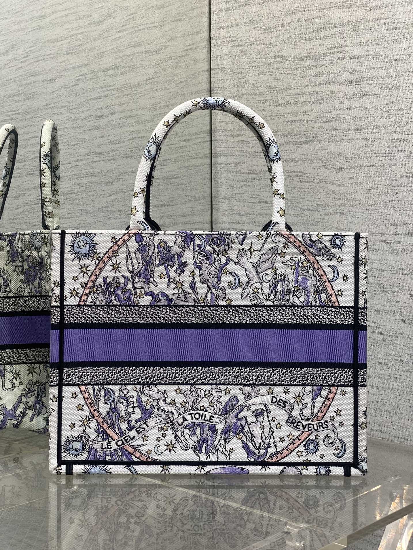 DIOR 25S LUCKY MEDIUM BOOK TOTE 36 IN WHITE AND PURPLE DIOR NIGHT OF DREAMS EMBROIDERY