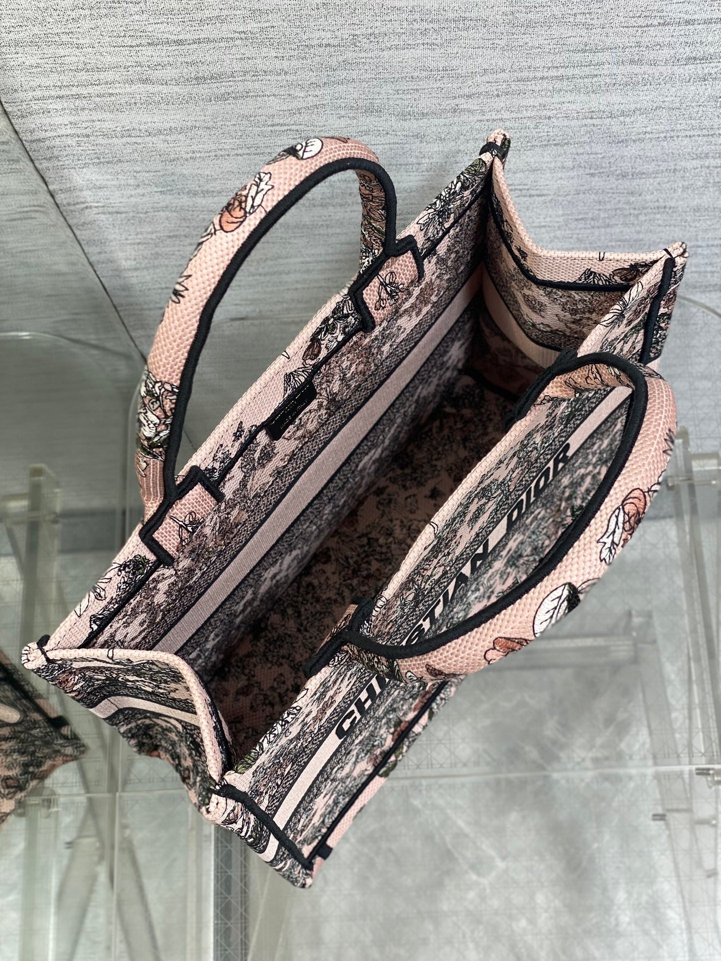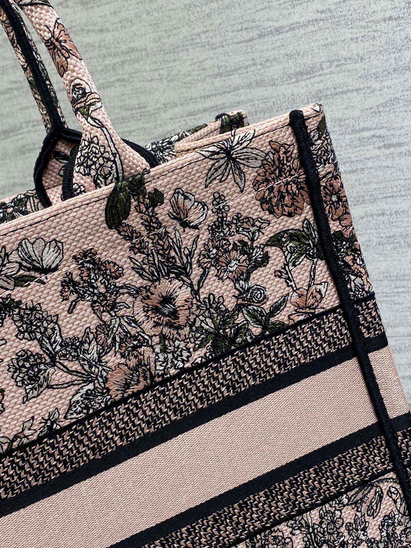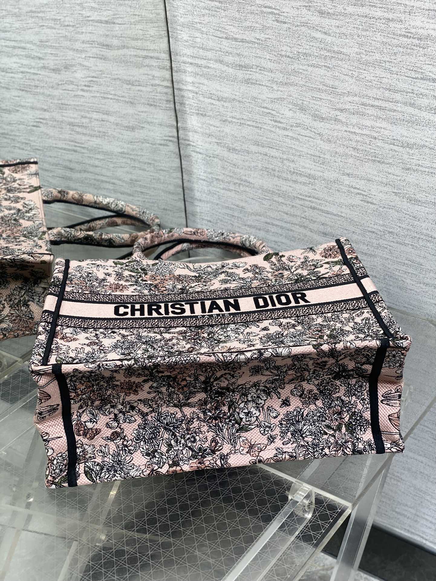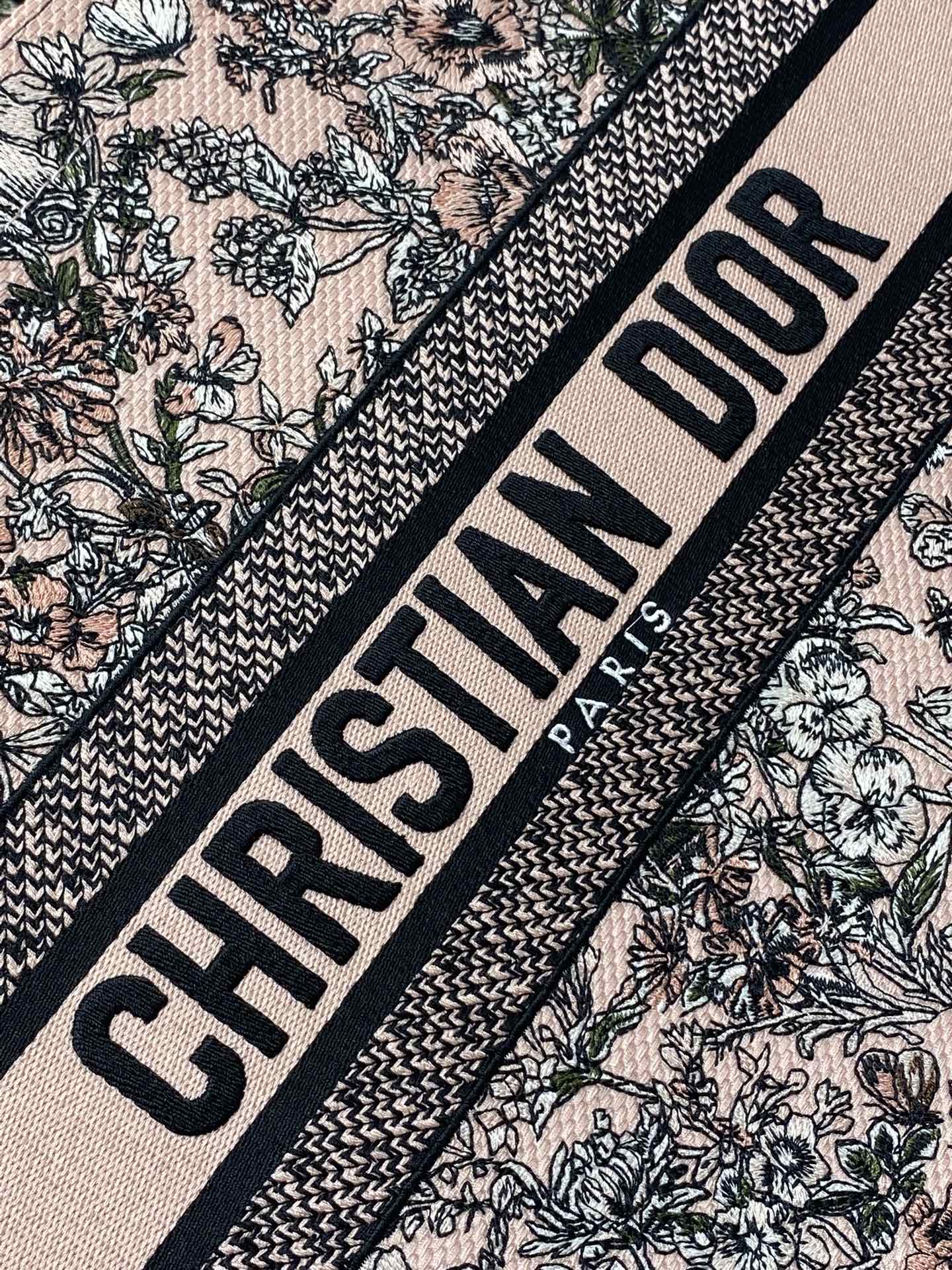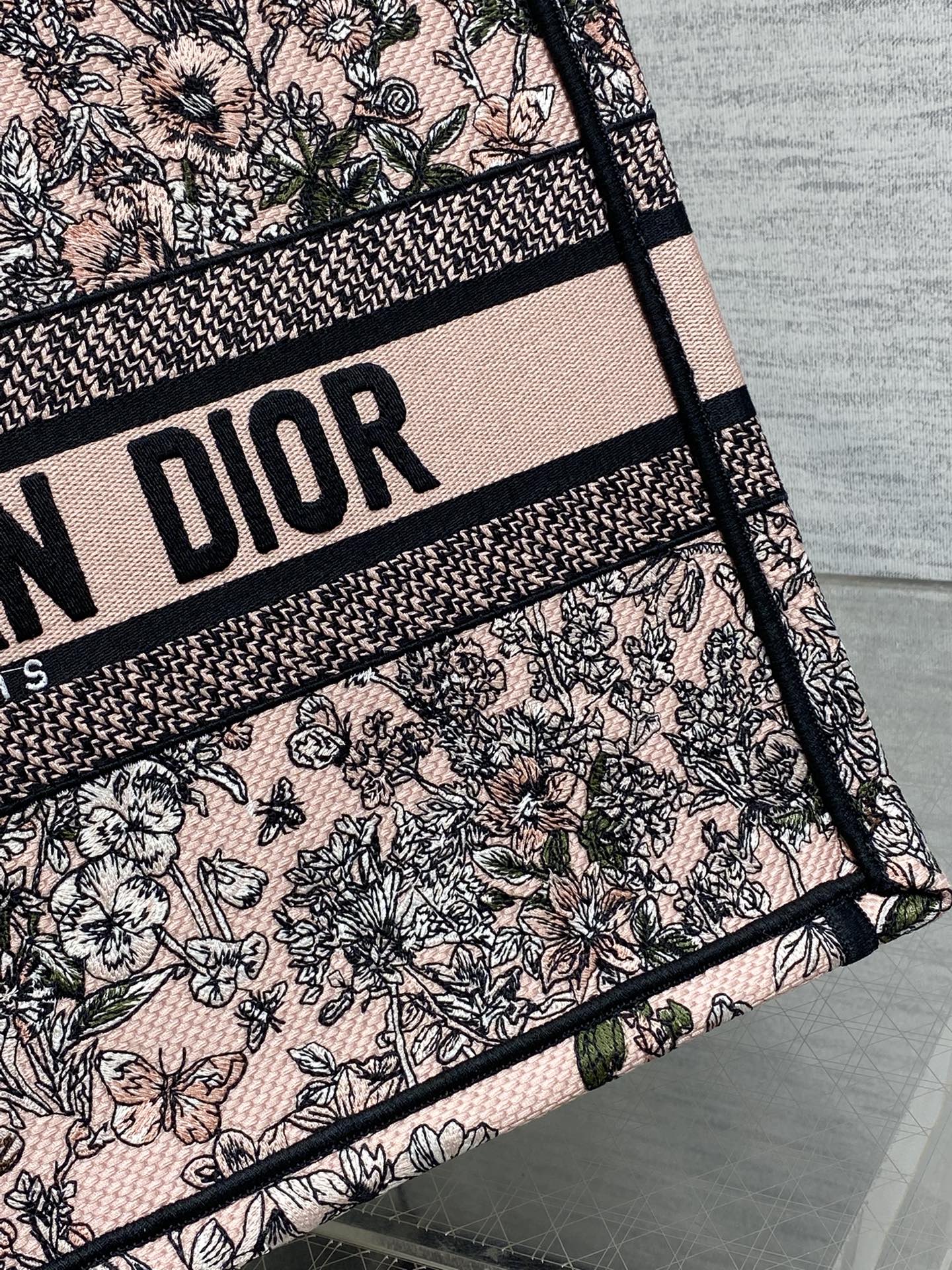 DIOR 25S LUCKY MEDIUM DIOR BOOK TOTE 36 IN PINK MULTICOLOR DIOR FLOWERS CALENDAR ALLOVER EMBROIDERY