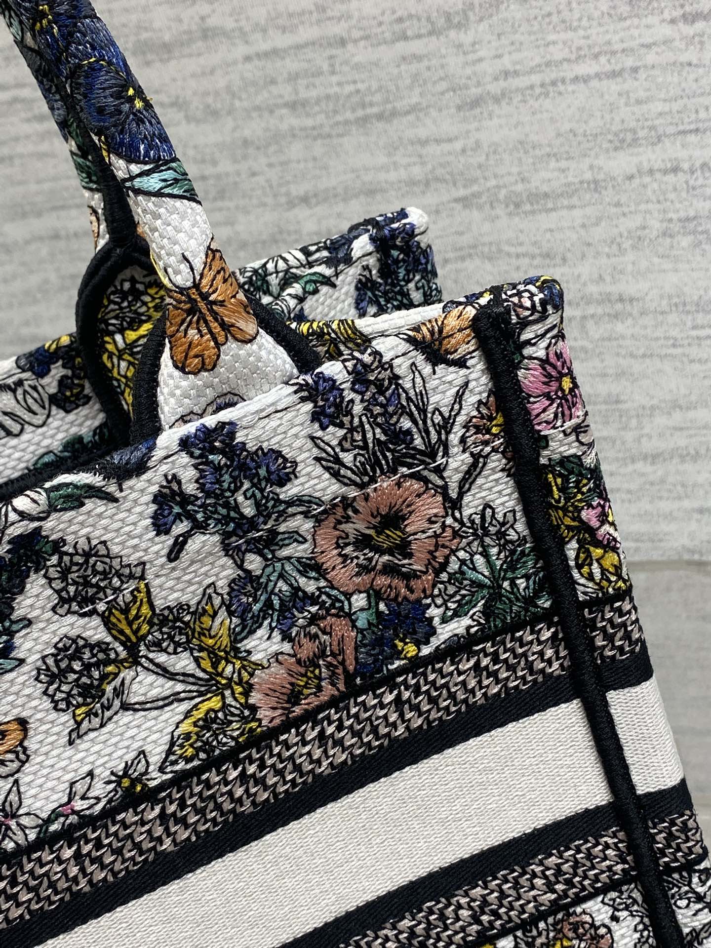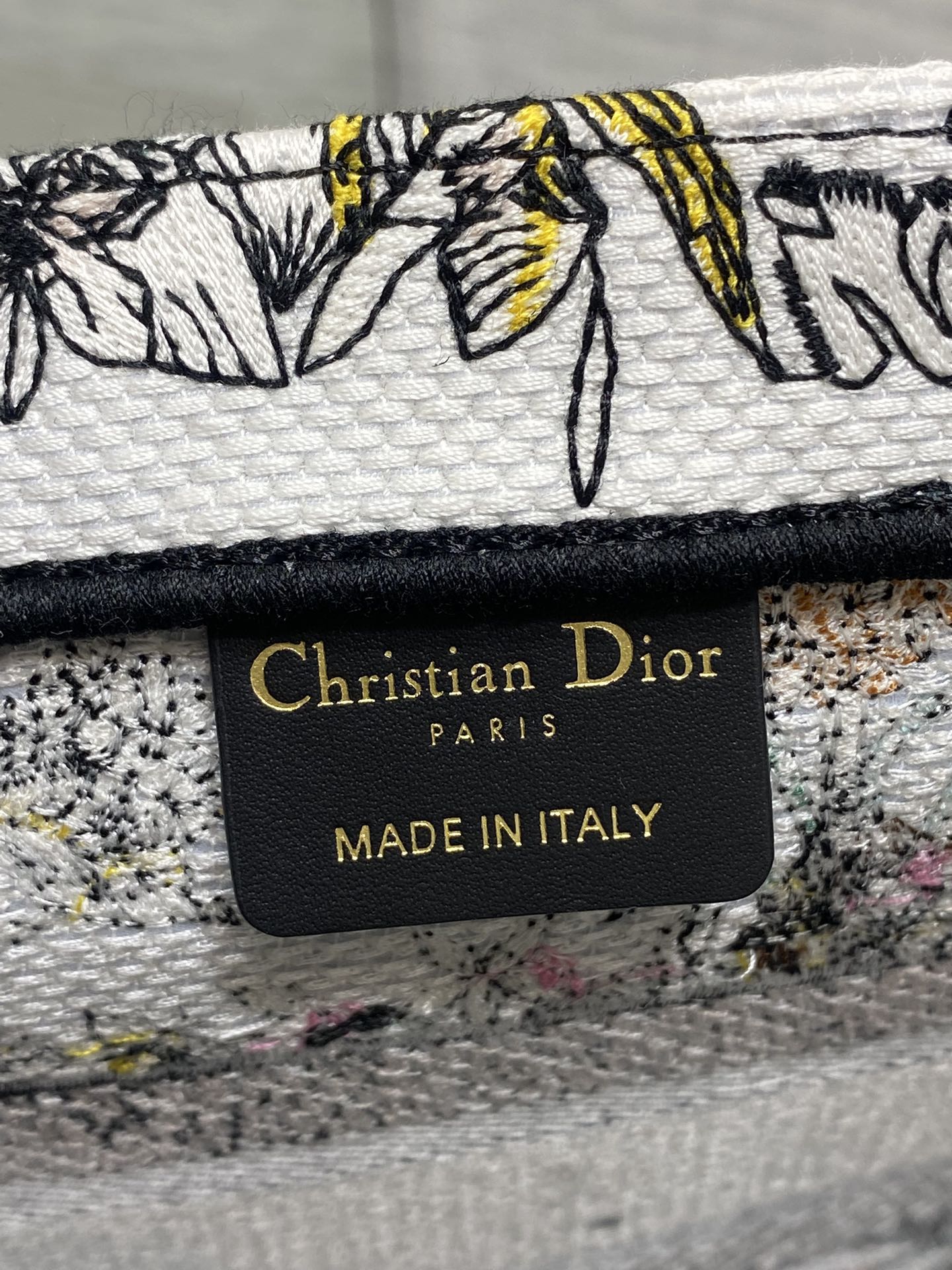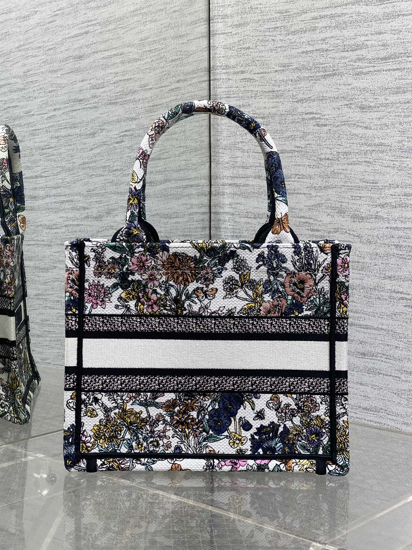 DIOR 25S LUCKY SMALL DIOR BOOK TOTE 26 IN MULTICOLOR DIOR FLOWERS CALENDAR ALLOVER EMBROIDERY