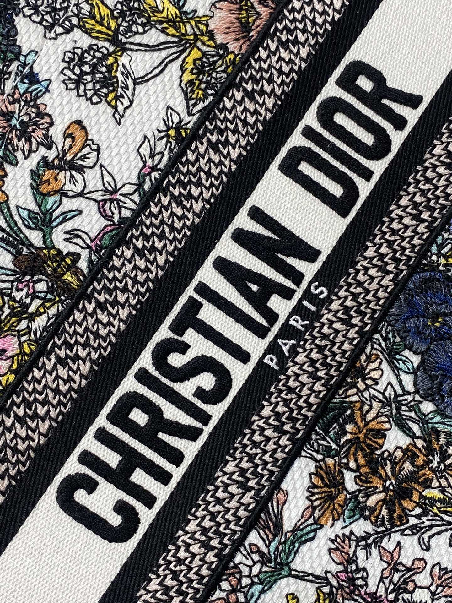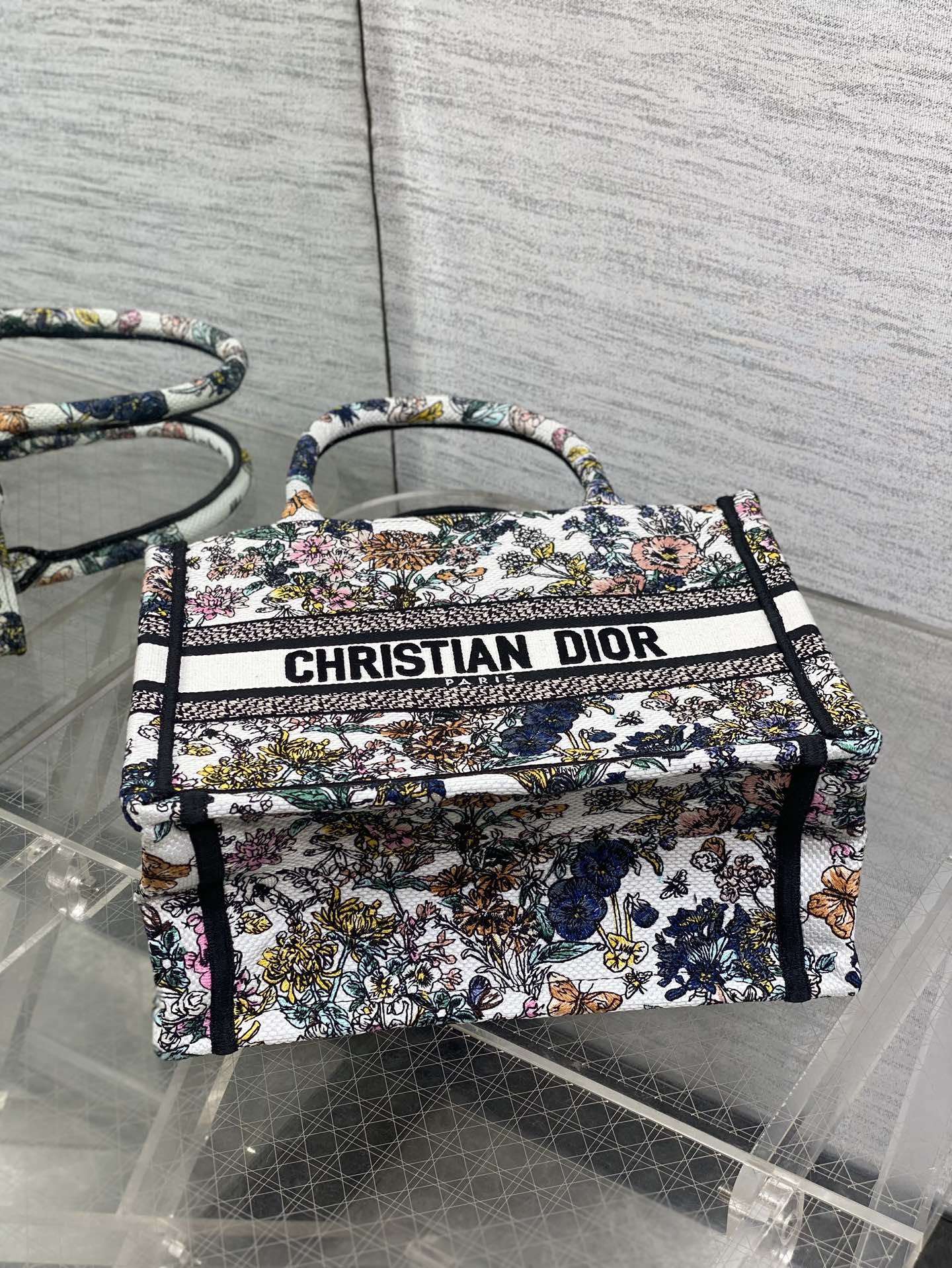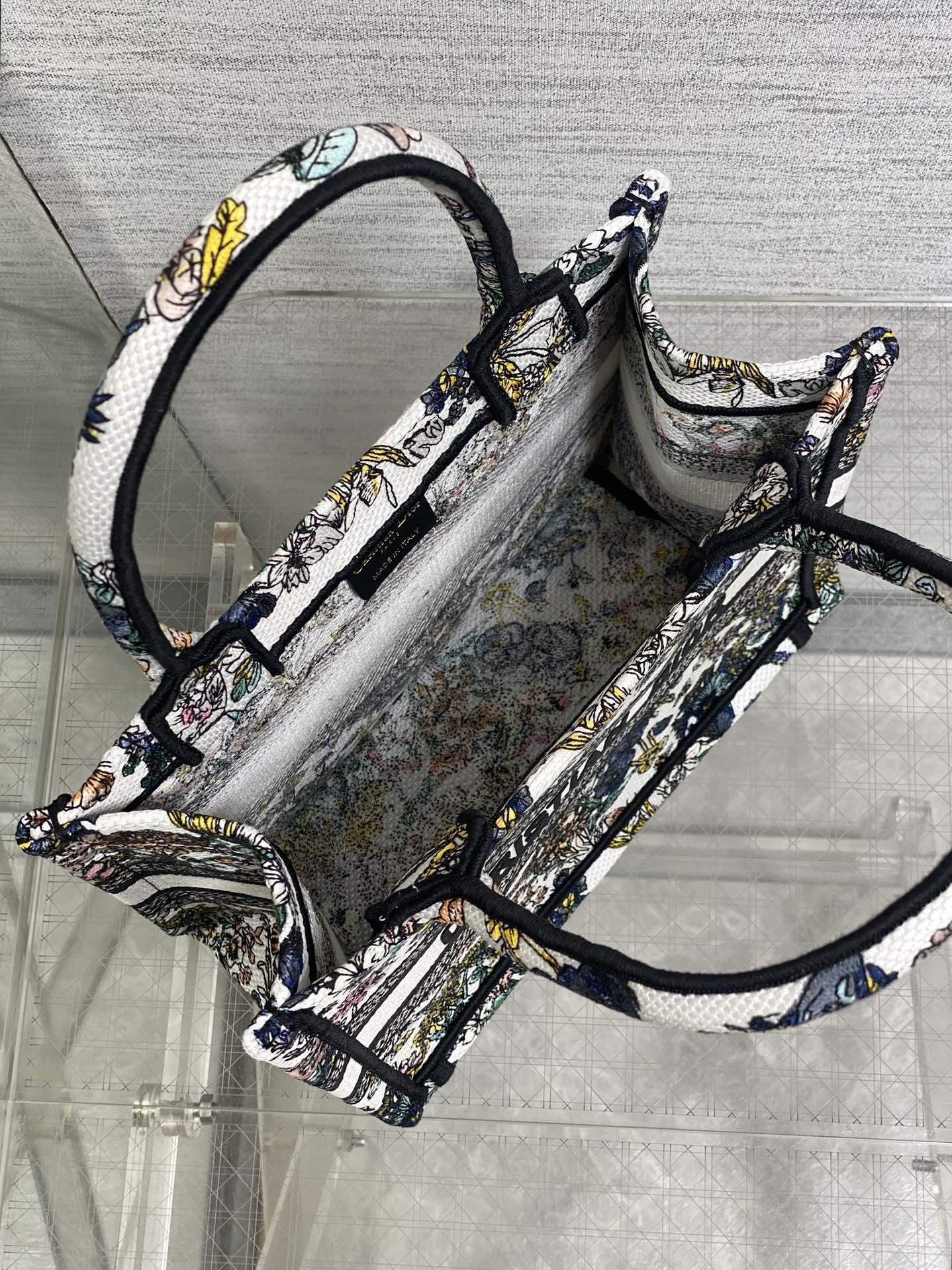 DIOR 25S LUCKY SMALL DIOR BOOK TOTE 26 IN MULTICOLOR DIOR FLOWERS CALENDAR ALLOVER EMBROIDERY