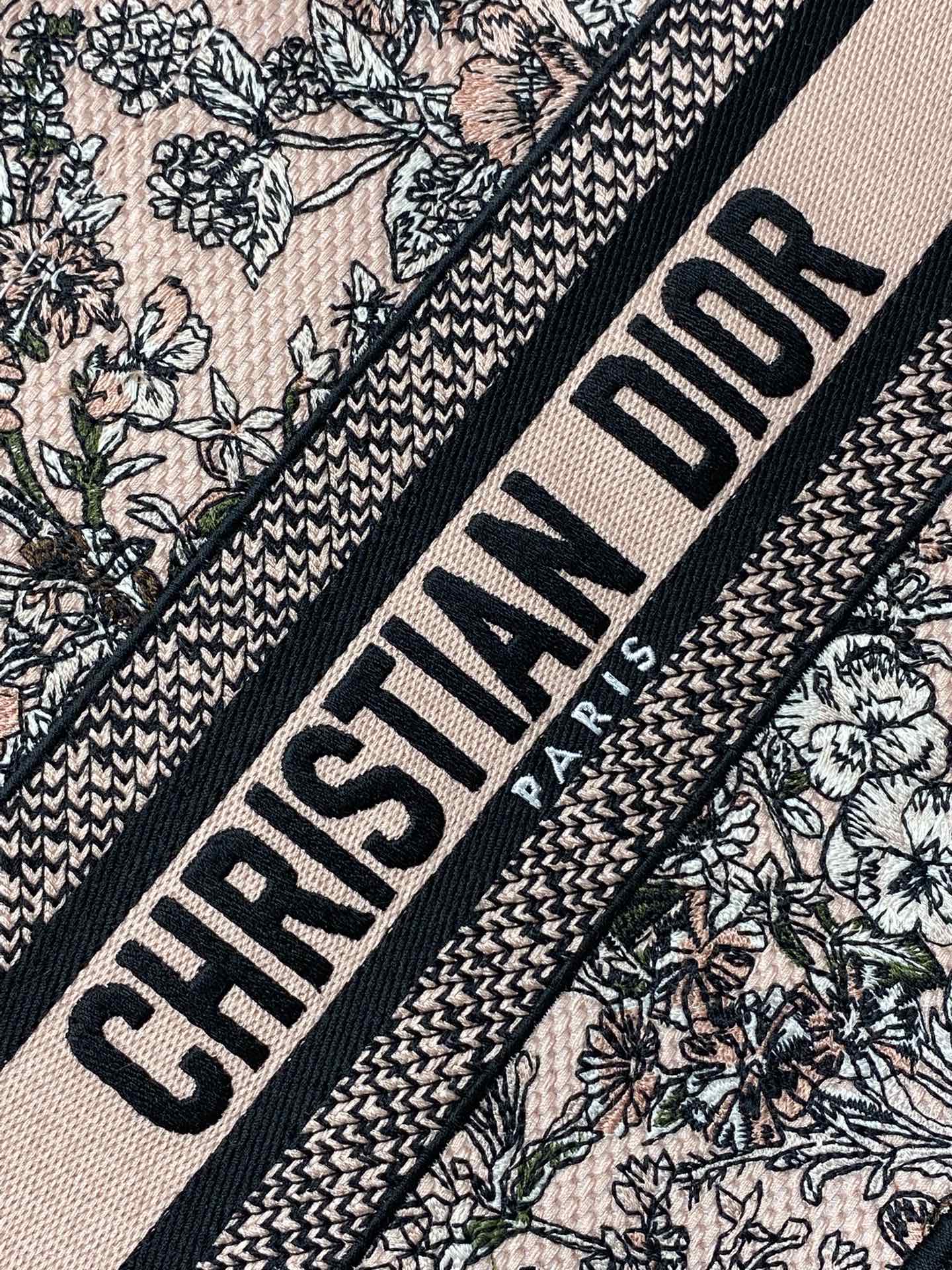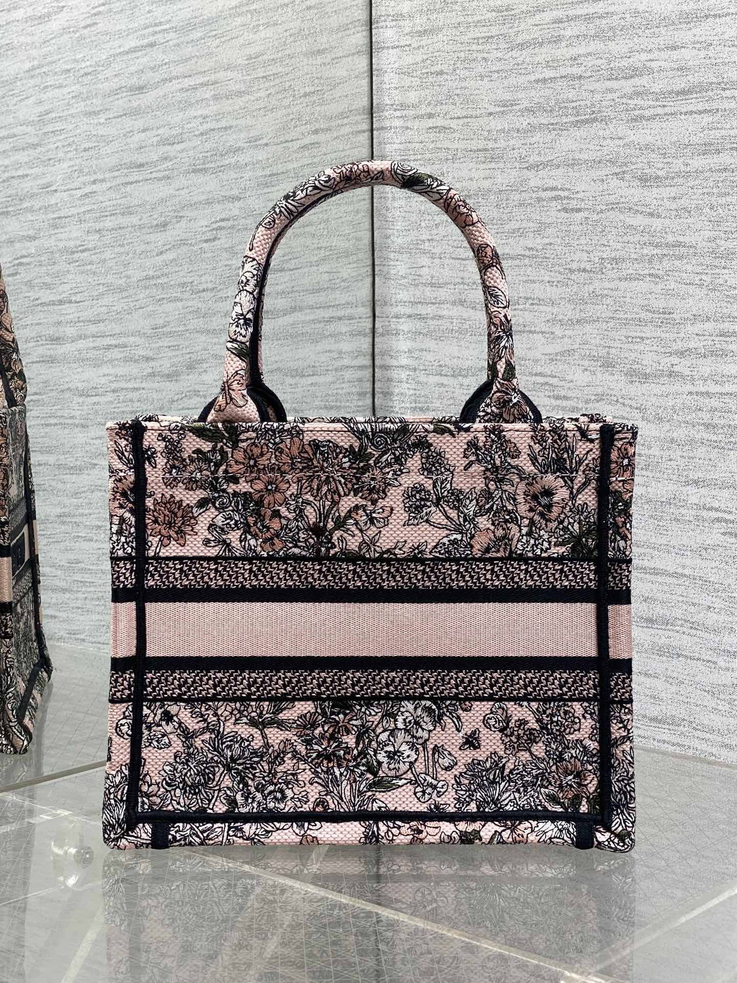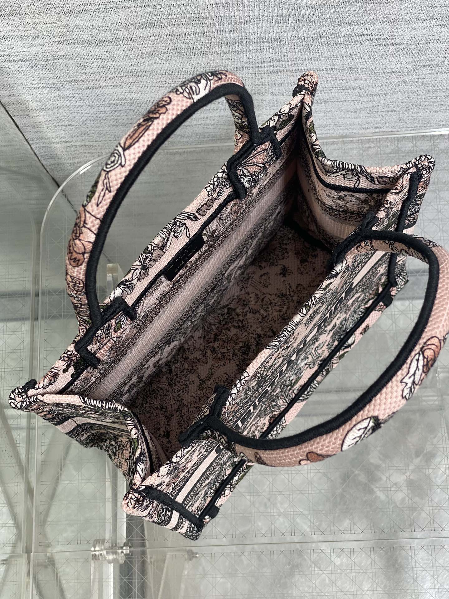 DIOR 25S LUCKY SMALL DIOR BOOK TOTE 26 IN PINK MULTICOLOR DIOR FLOWERS CALENDAR ALLOVER EMBROIDERY