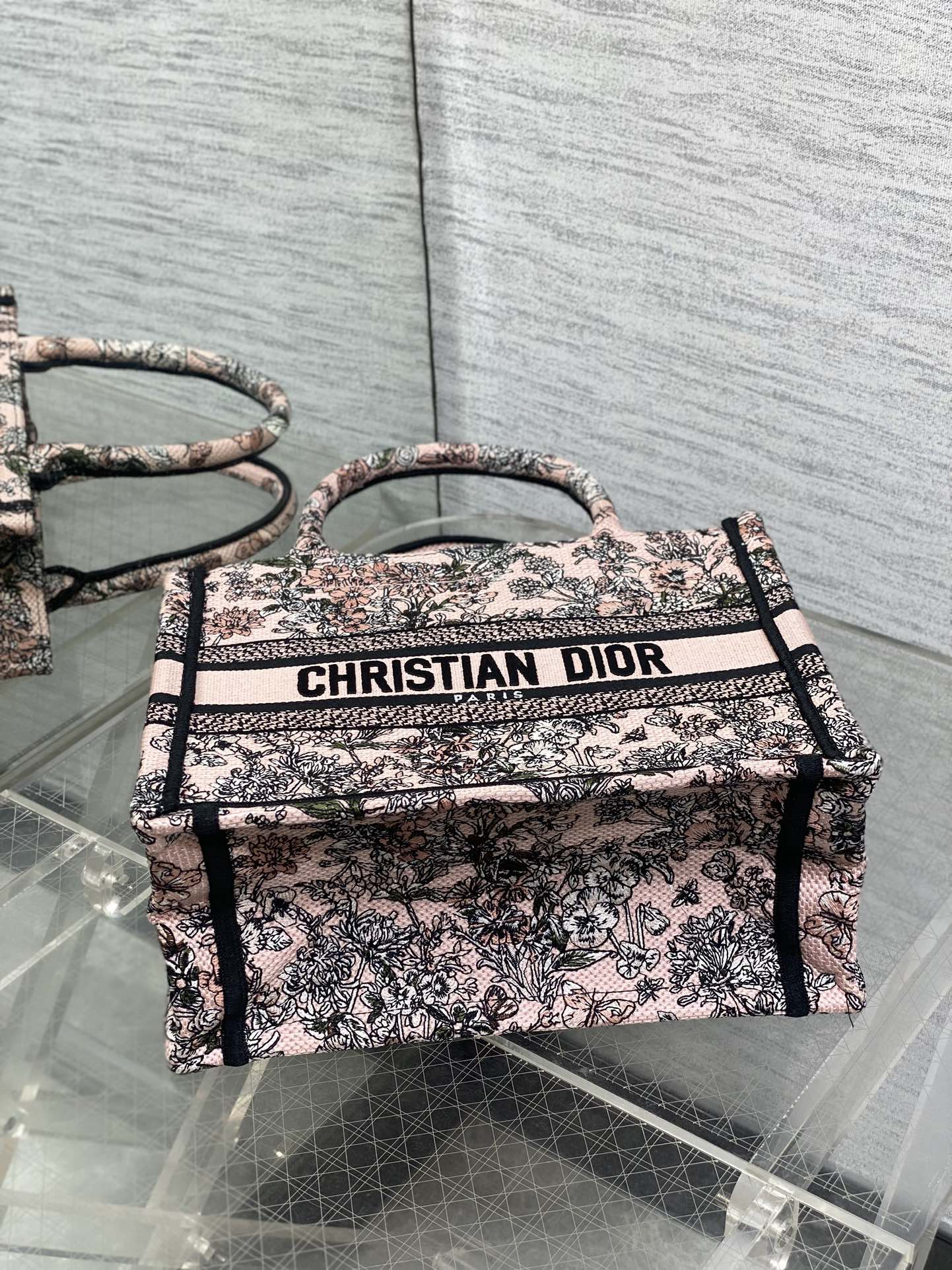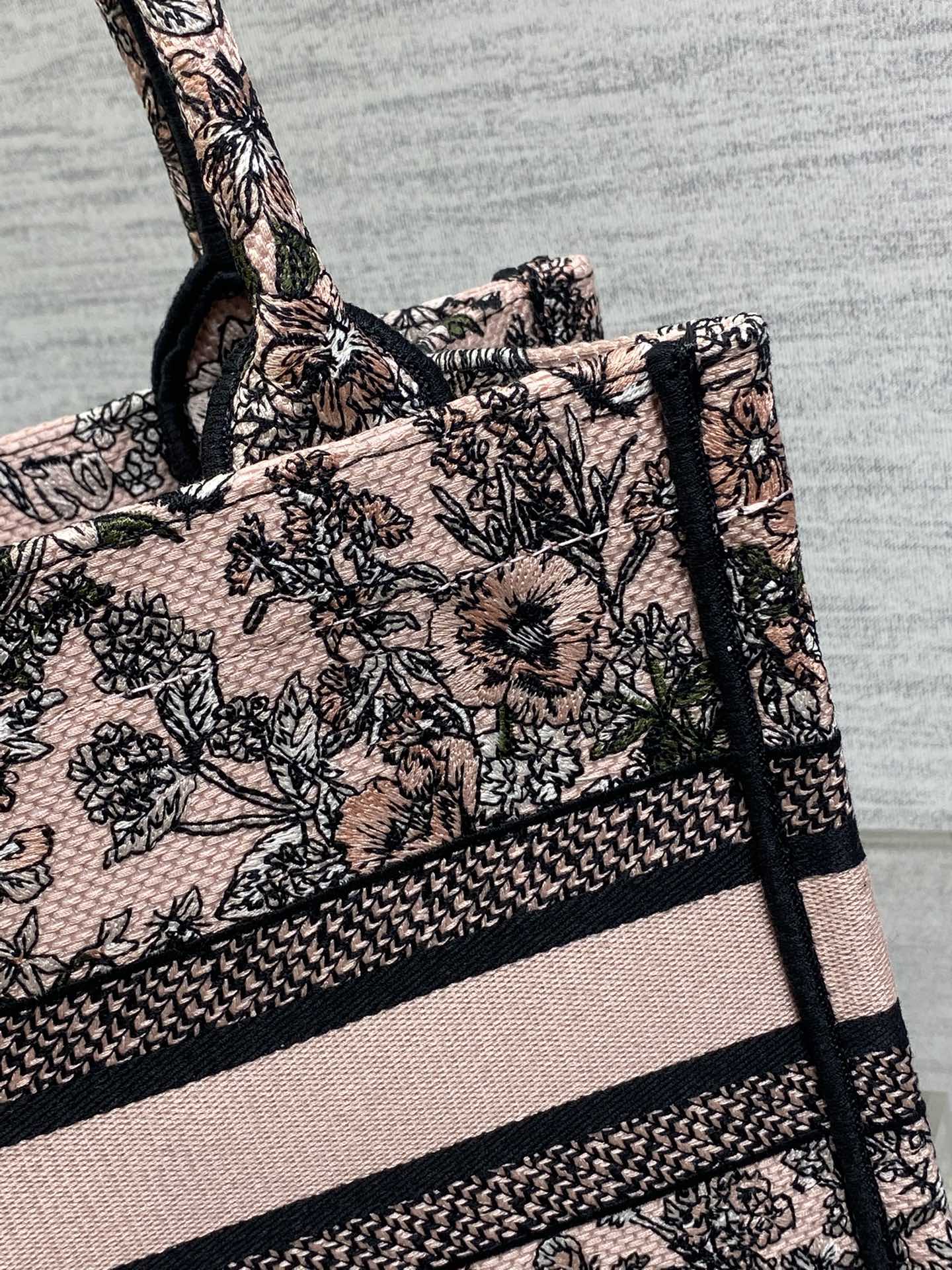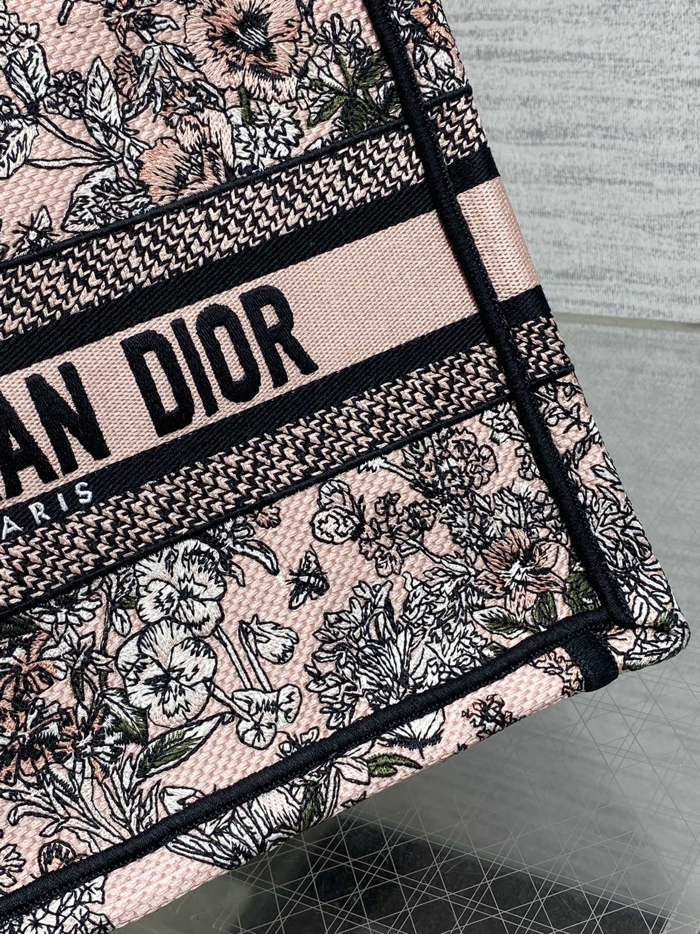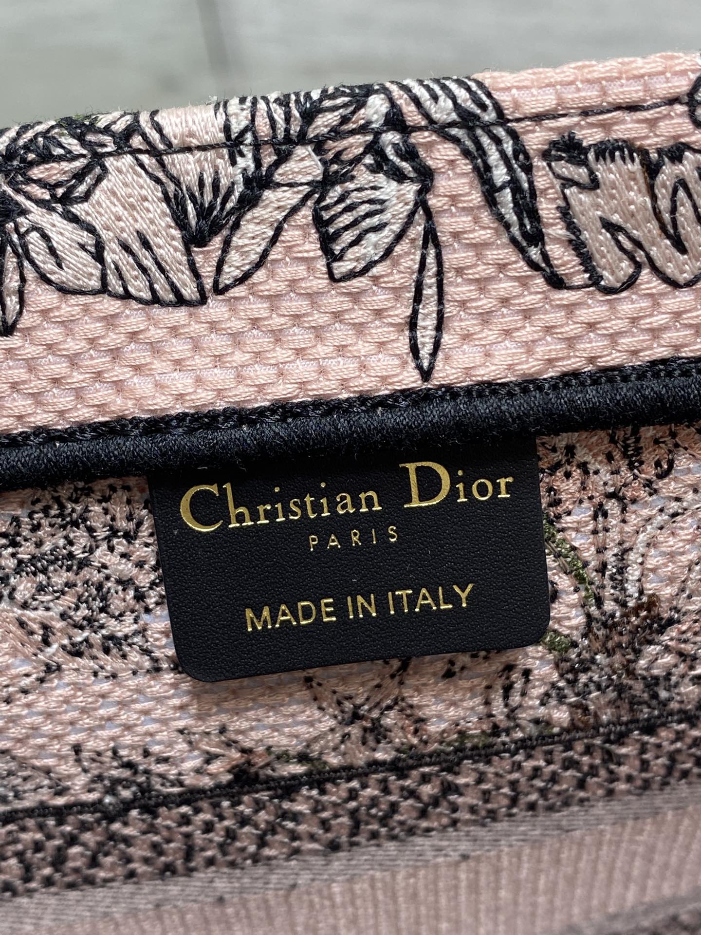 DIOR 25S LUCKY SMALL DIOR BOOK TOTE 26 IN PINK MULTICOLOR DIOR FLOWERS CALENDAR ALLOVER EMBROIDERY