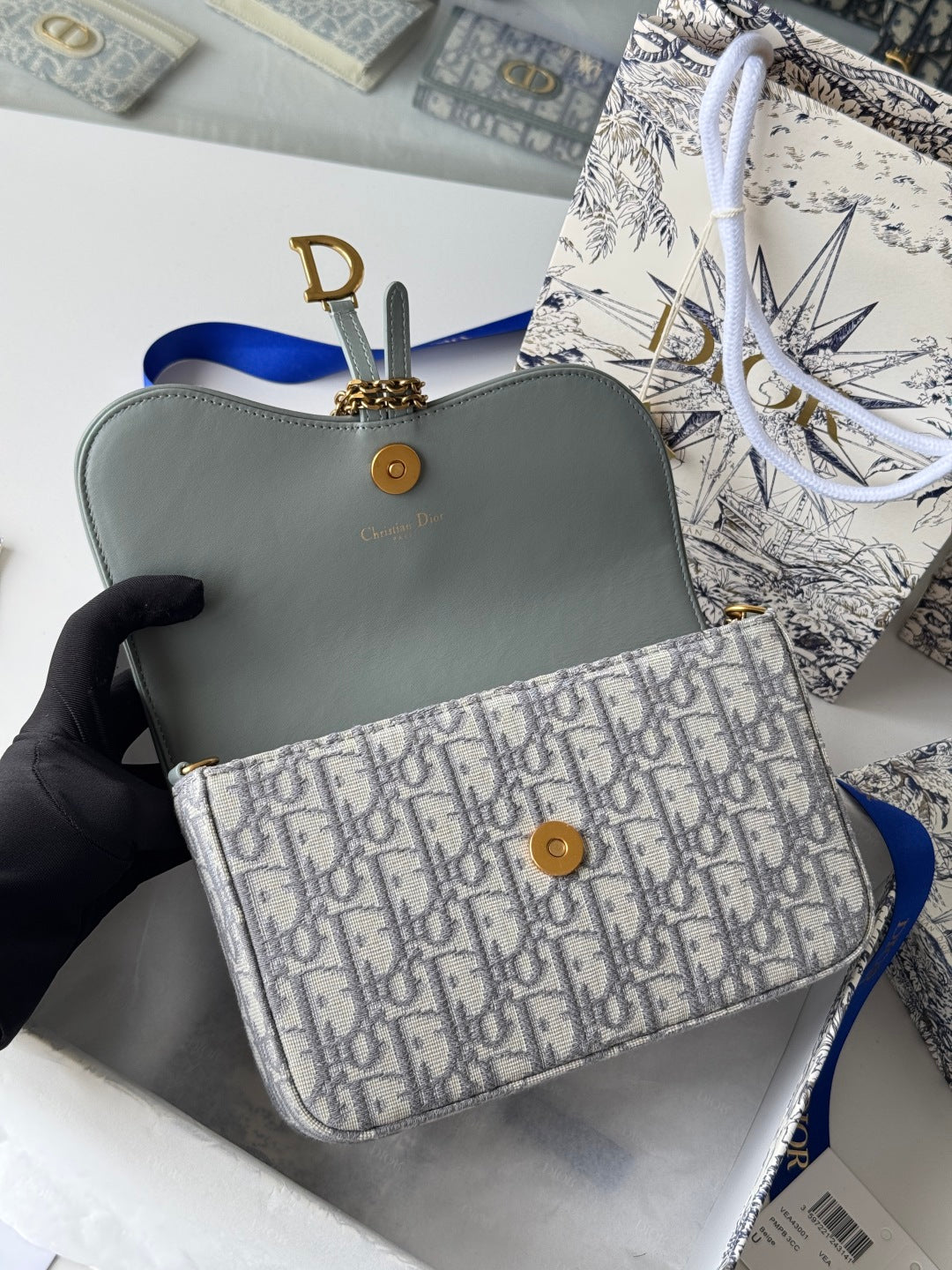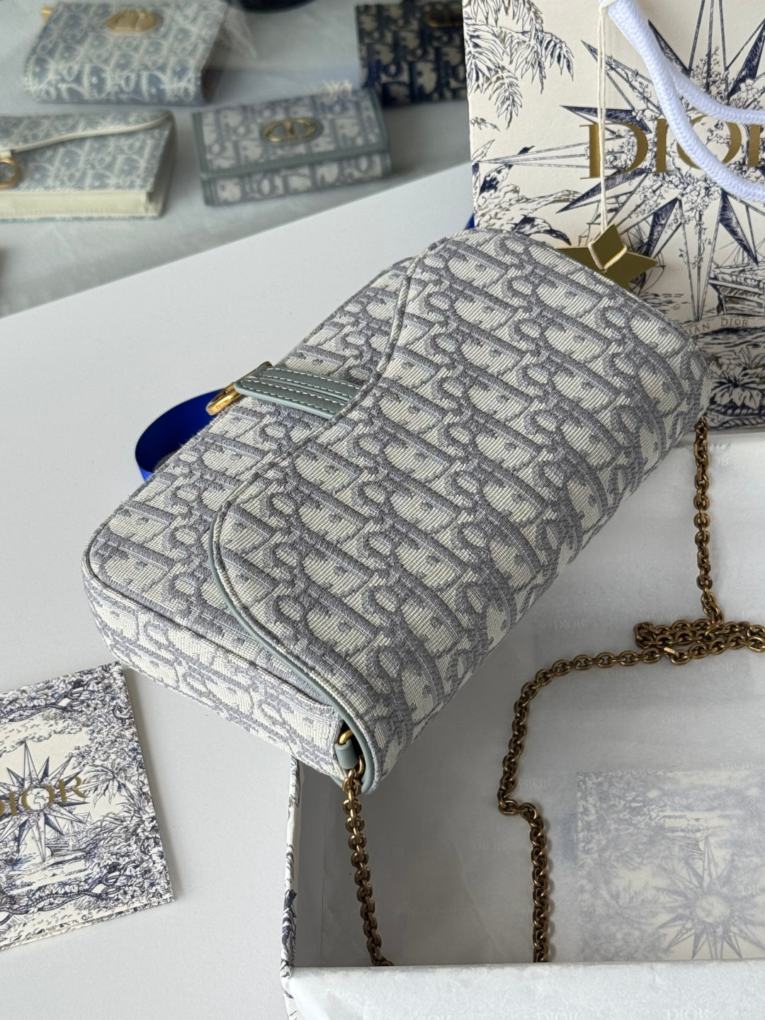 DIOR 25S MEDIUM SADDLE POUCH WITH CHAIN 21 IN GRAY DIOR OBLIQUE JACQUARD CANVAS