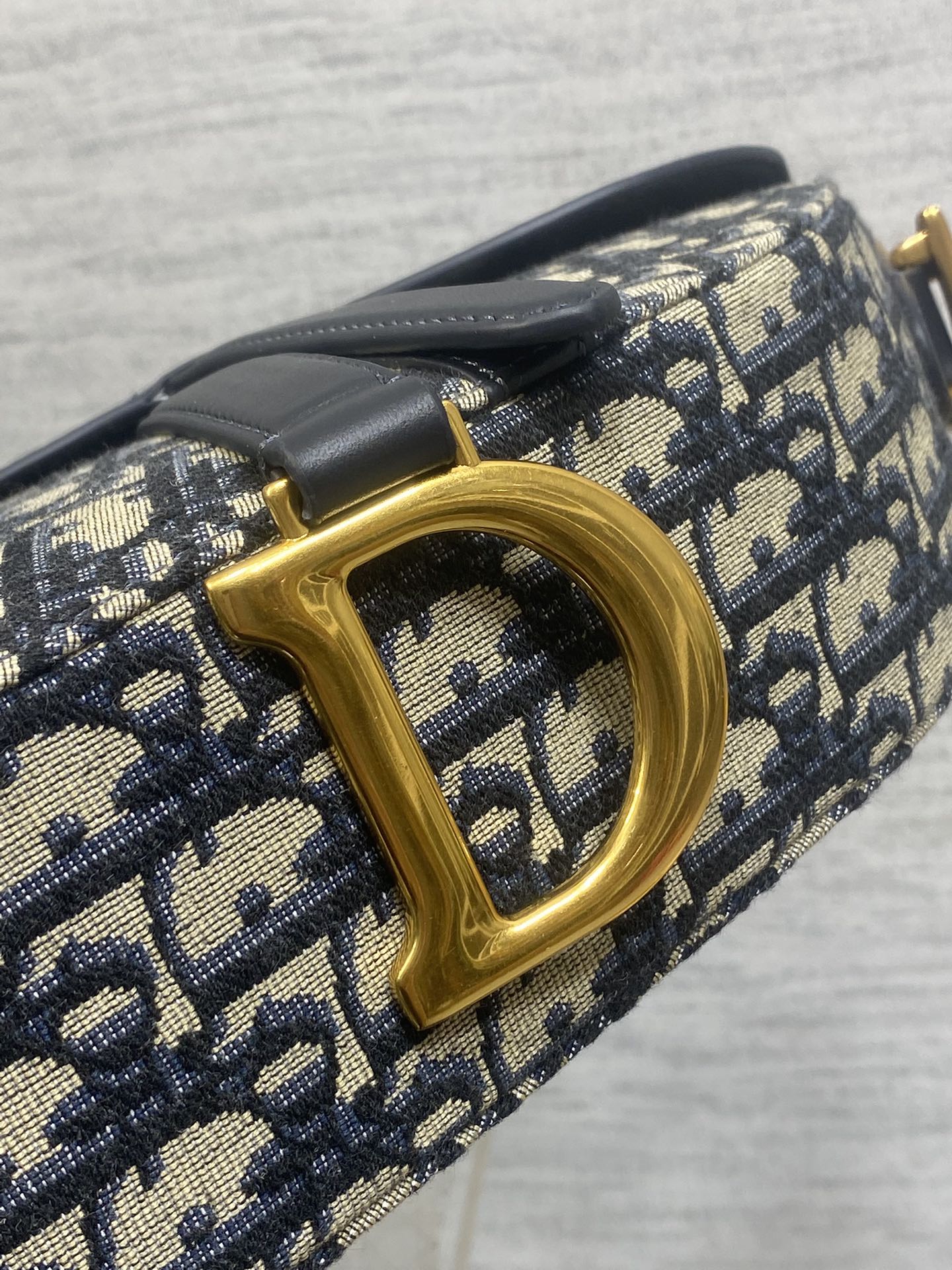 DIOR 25S MINI SOFT SADDLE BAG 19 IN BLUE DIOR OBLIQUE JACQUARD AND SMOOTH CALFSKIN