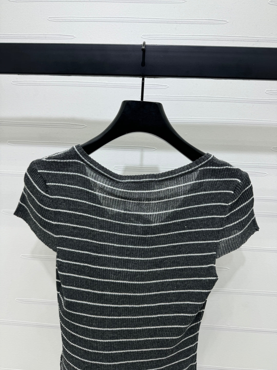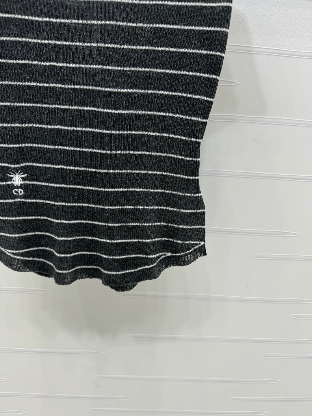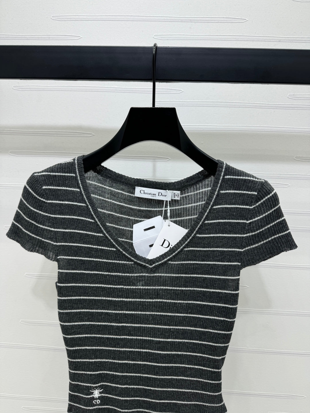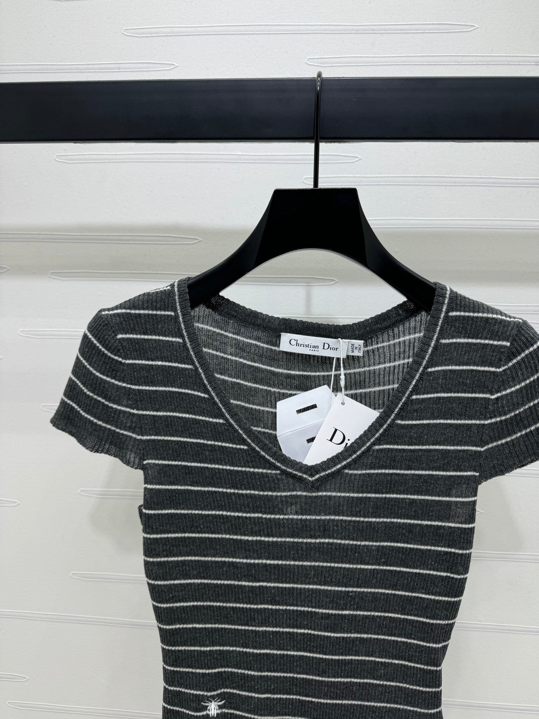 DIOR 25S SHORT SLEEVE STRIPED V-NECK SWEATER 264077