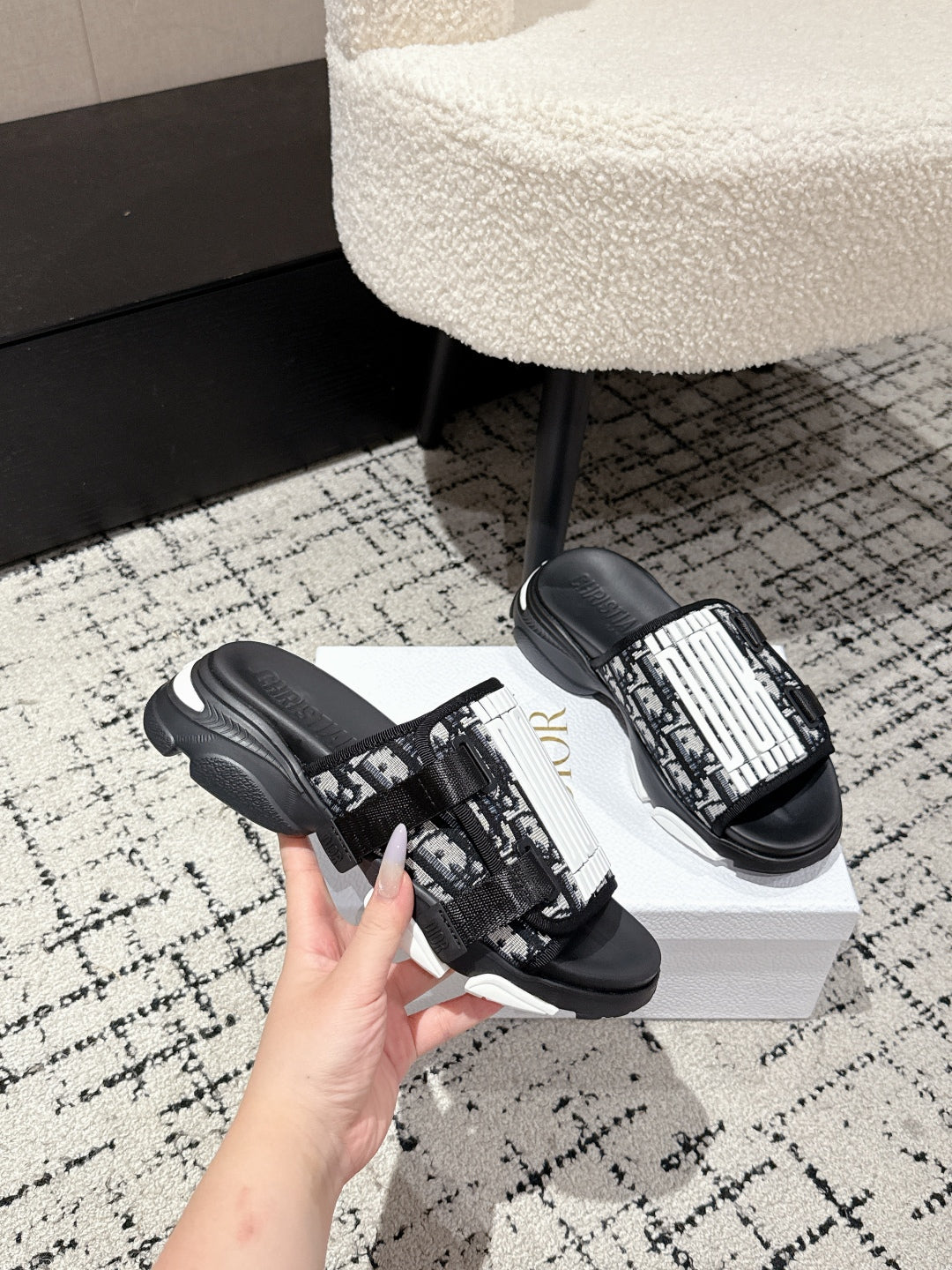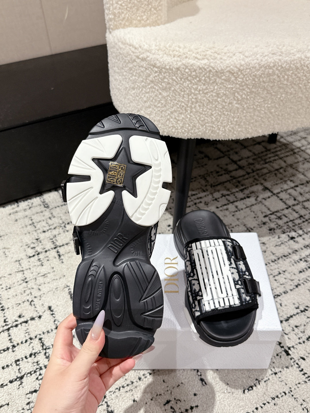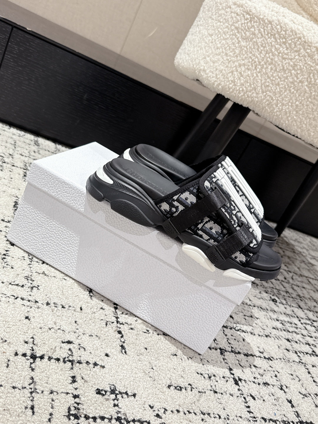 DIOR ADJUSTABLE STRAP SANDALS 25S 50 MM IN BLACK FABRIC MIX CALFSKIN STYLE 4