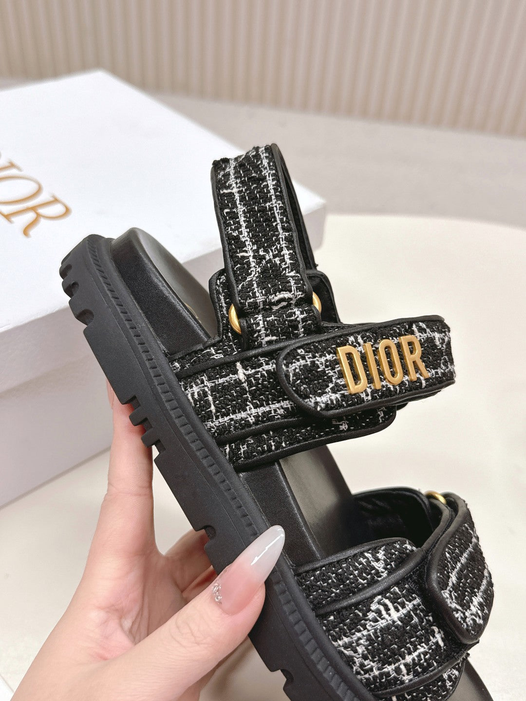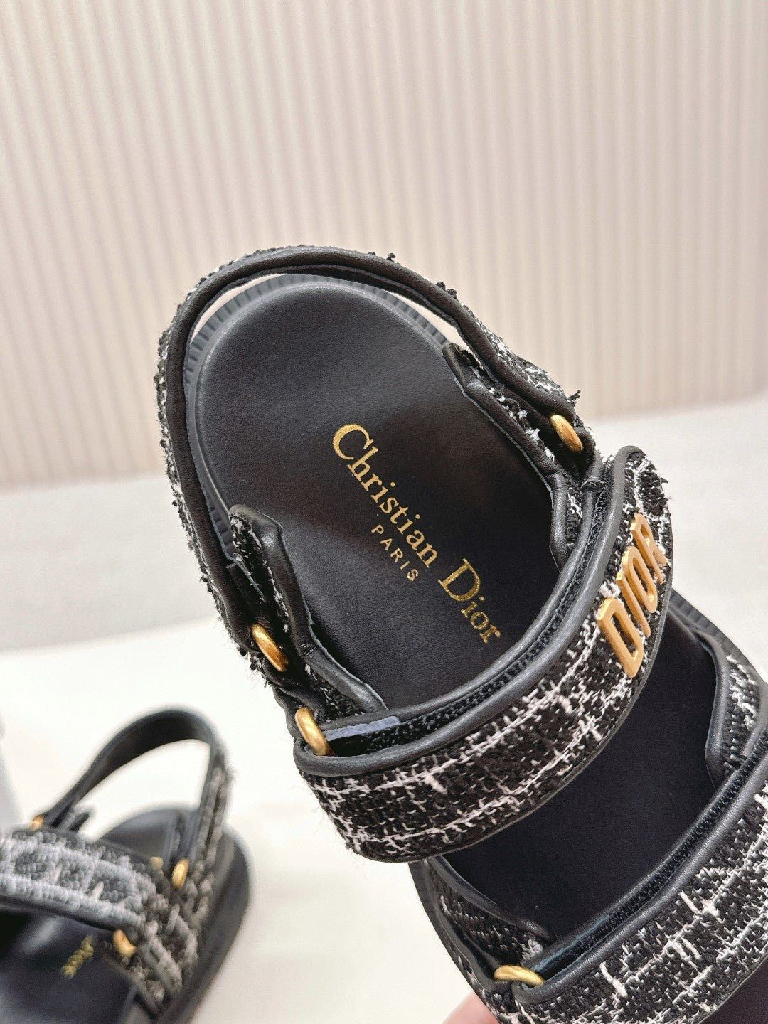 DIOR BACK-STRAP SANDALS 25S IN BLACK TWEED AND CALFSKIN