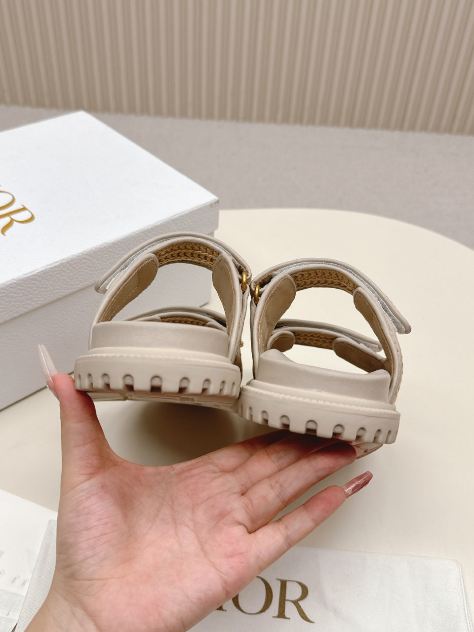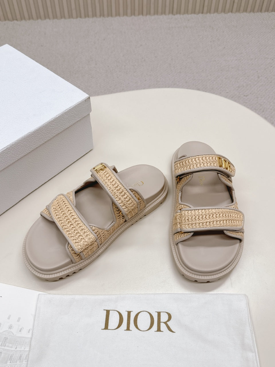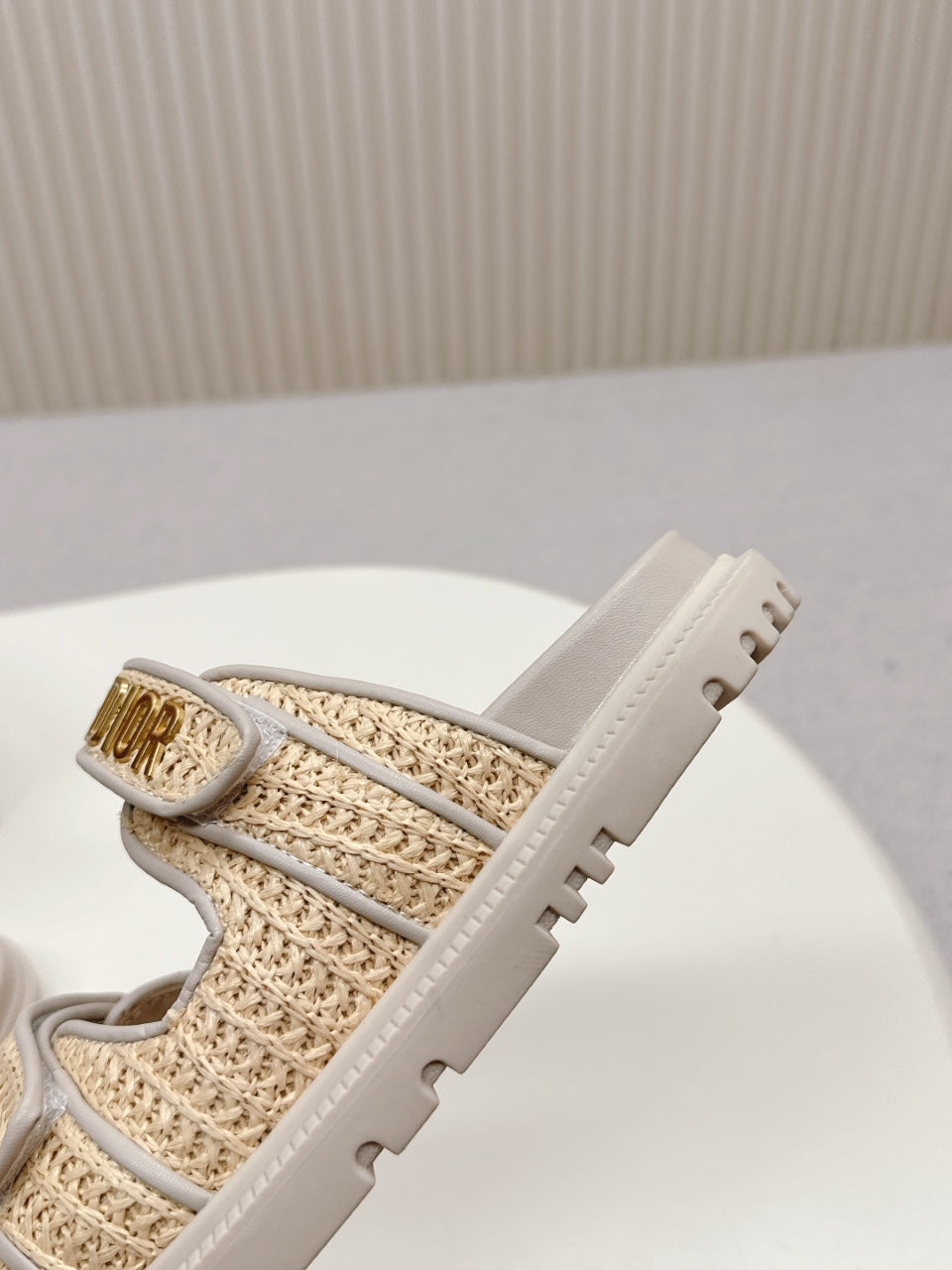 DIOR CLASSIC DOUBLE-STRAP SLIDES 25S IN BEIGE RAFFIA AND TAUPE BEIGE CALFSKIN