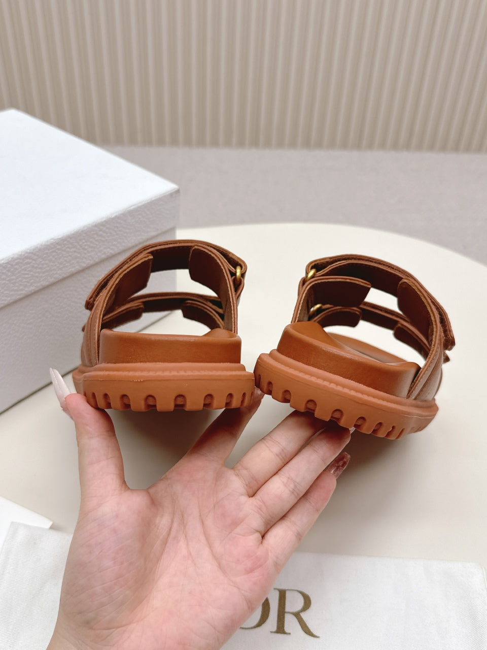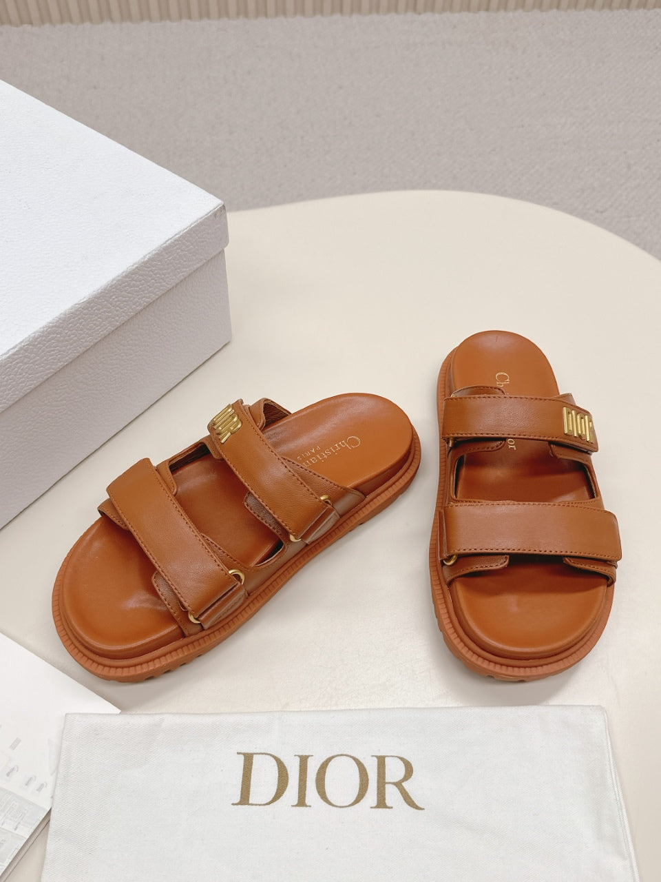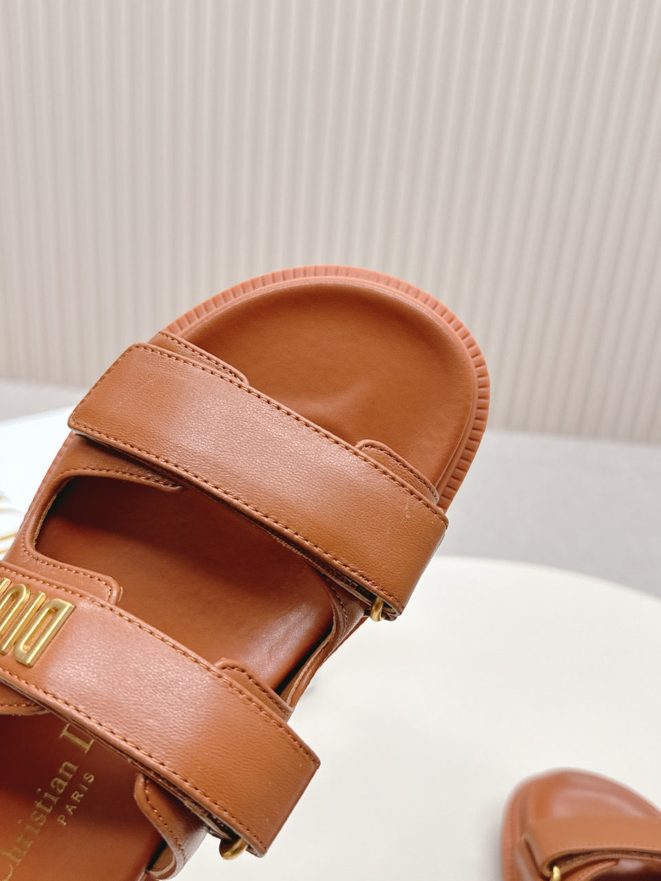 DIOR CLASSIC DOUBLE-STRAP SLIDES 25S IN BROWN CALFSKIN