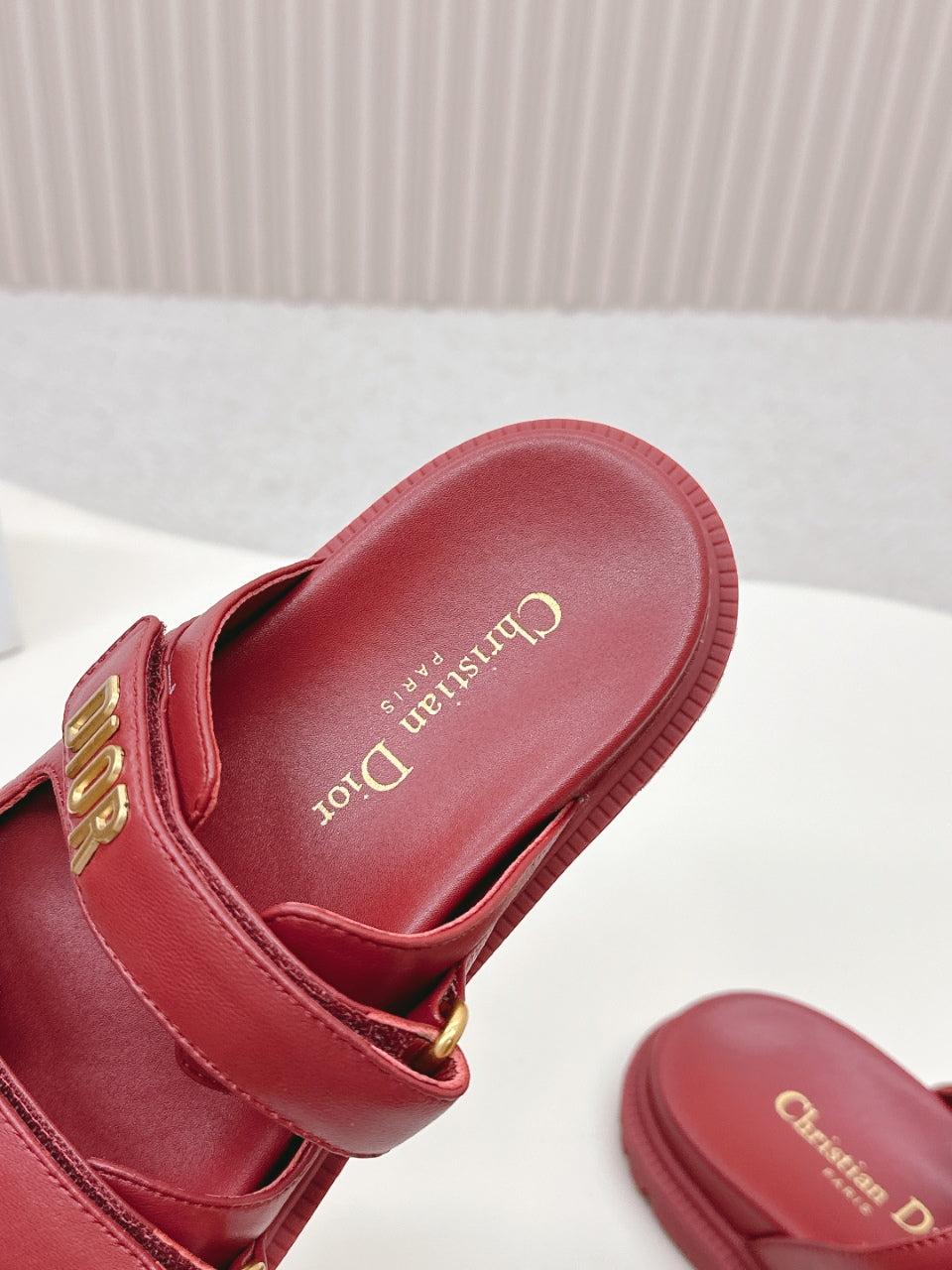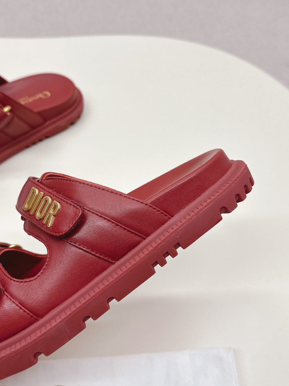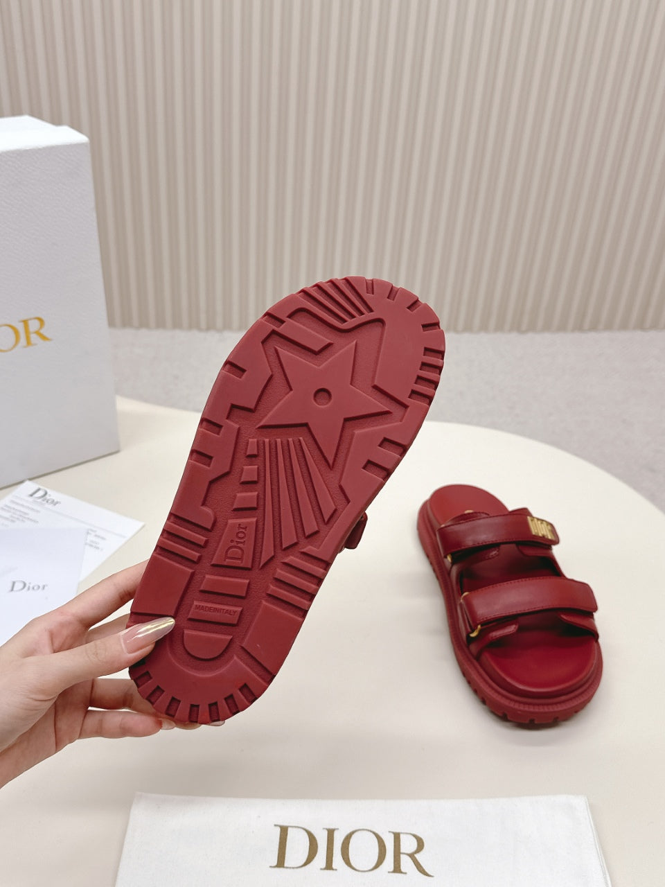 DIOR CLASSIC DOUBLE-STRAP SLIDES 25S IN DARK RED CALFSKIN