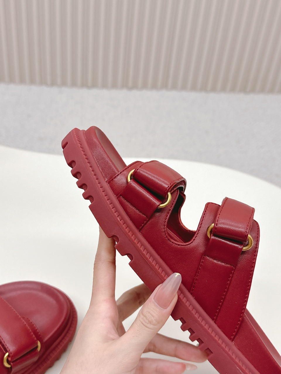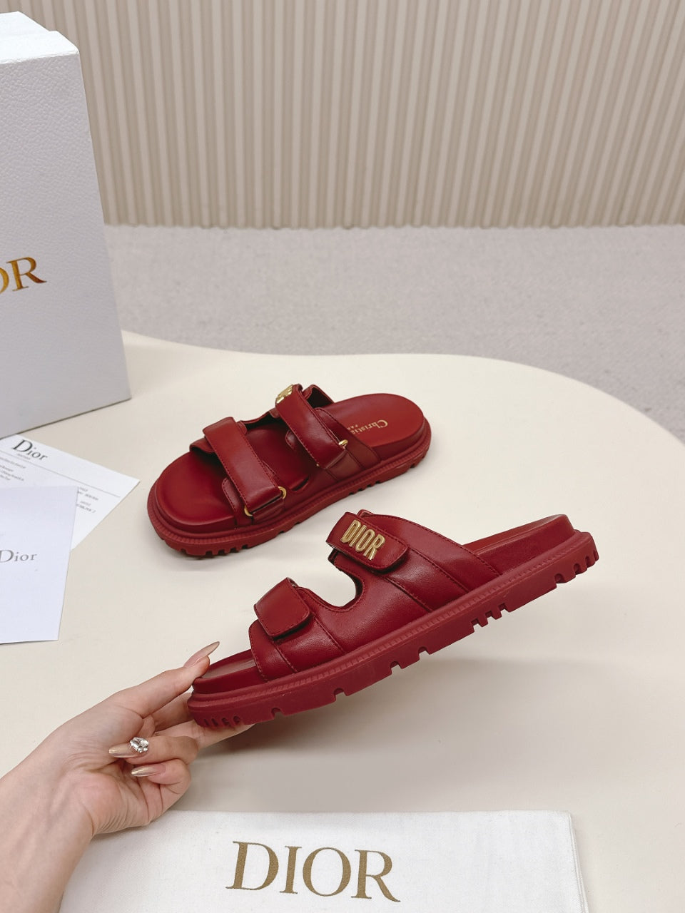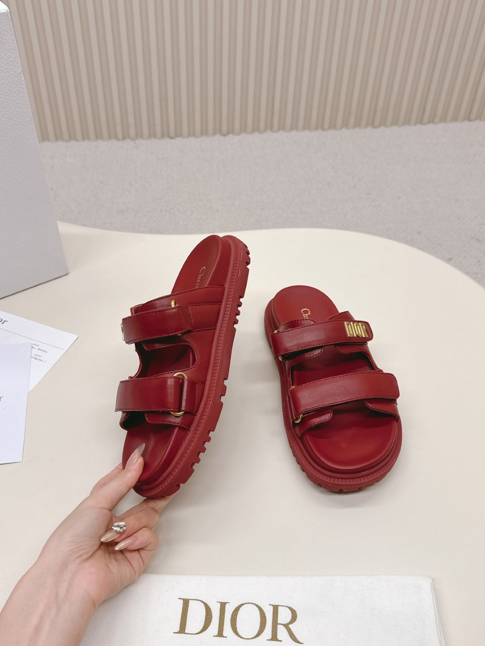DIOR CLASSIC DOUBLE-STRAP SLIDES 25S IN DARK RED CALFSKIN