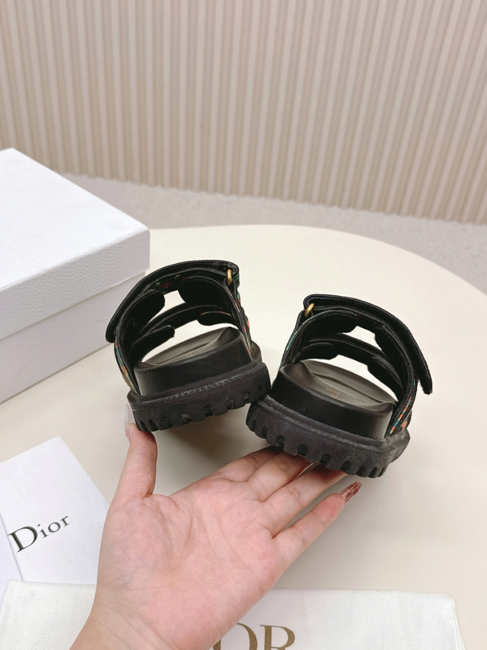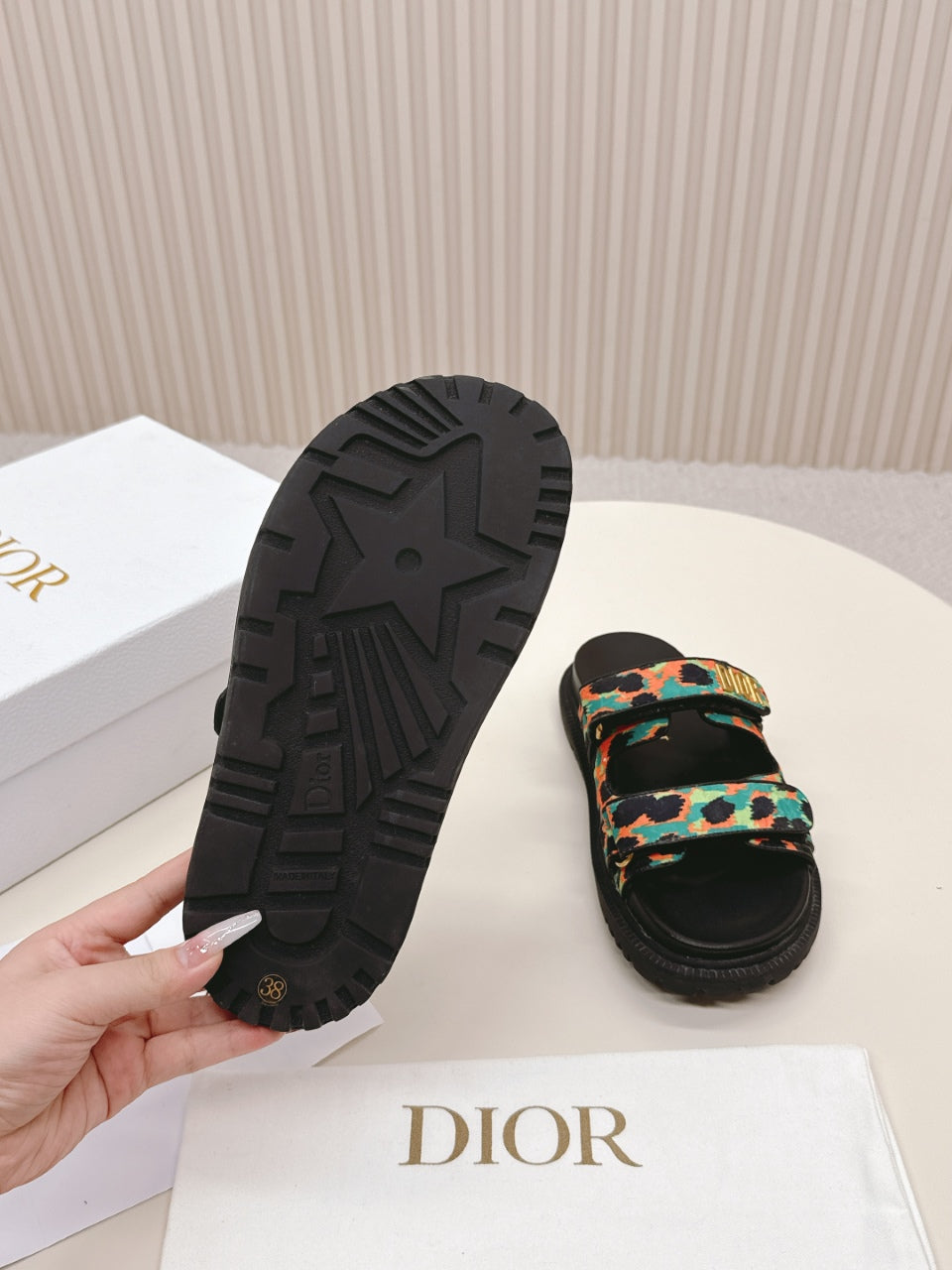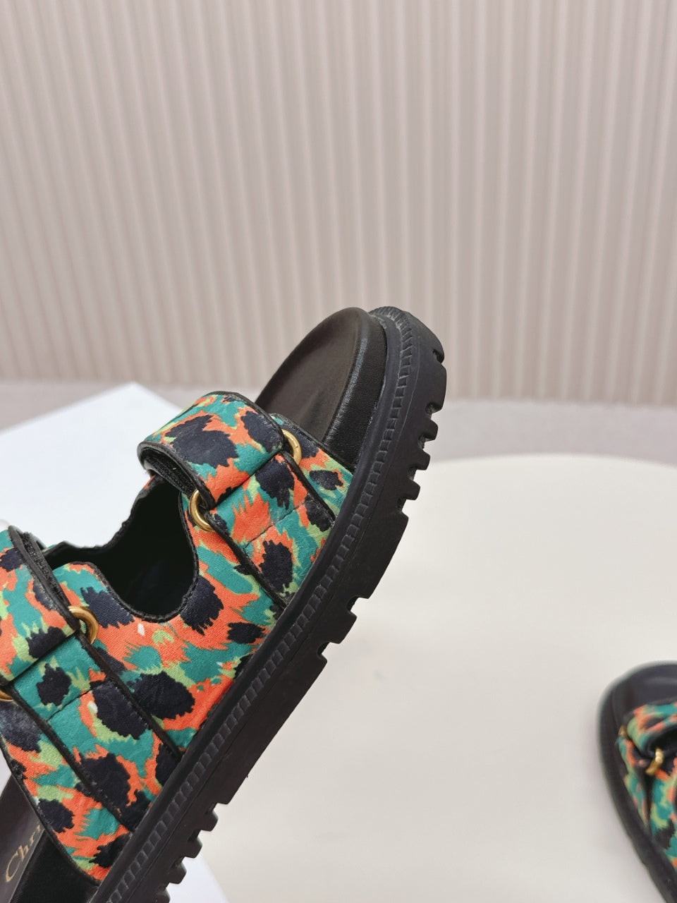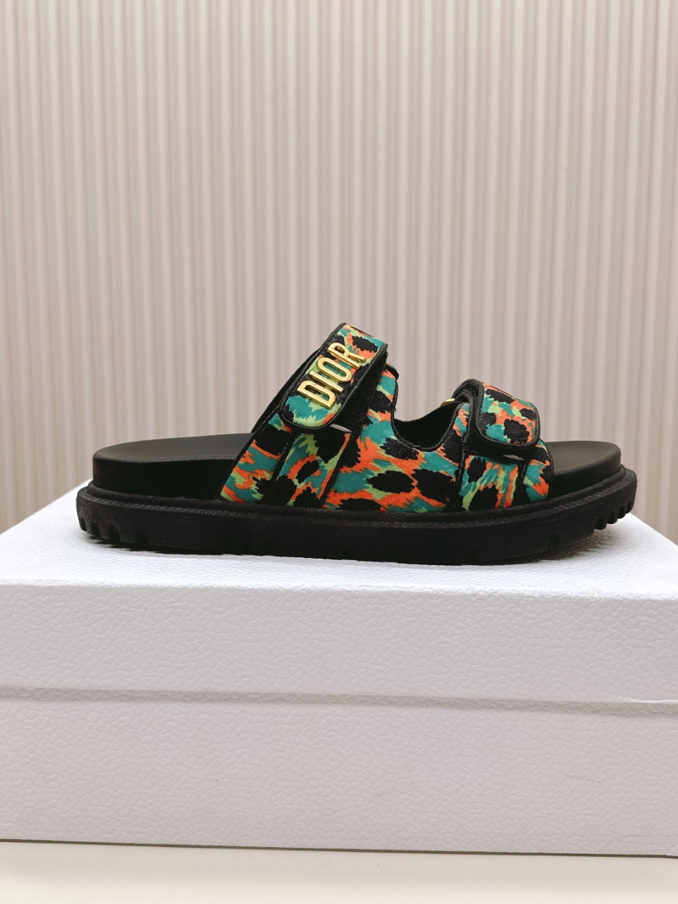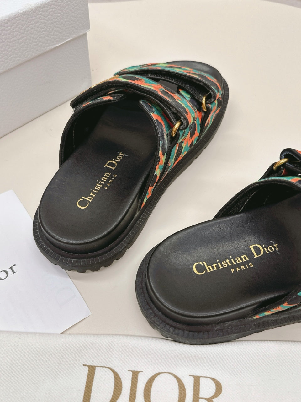 DIOR CLASSIC DOUBLE-STRAP SLIDES 25S IN MULTICOLOR FABRIC AND CALFSKIN