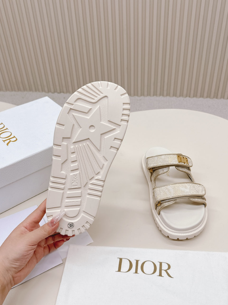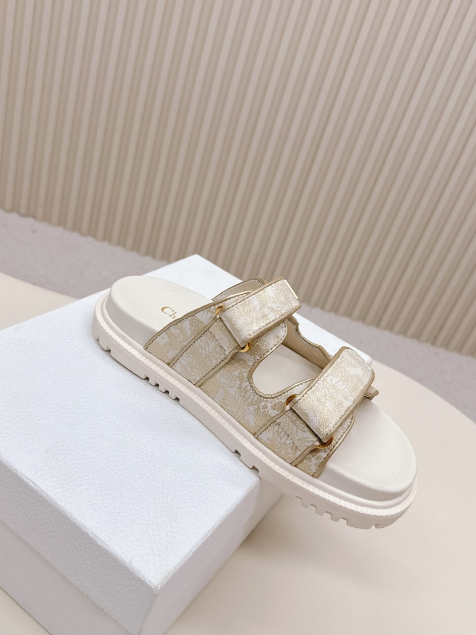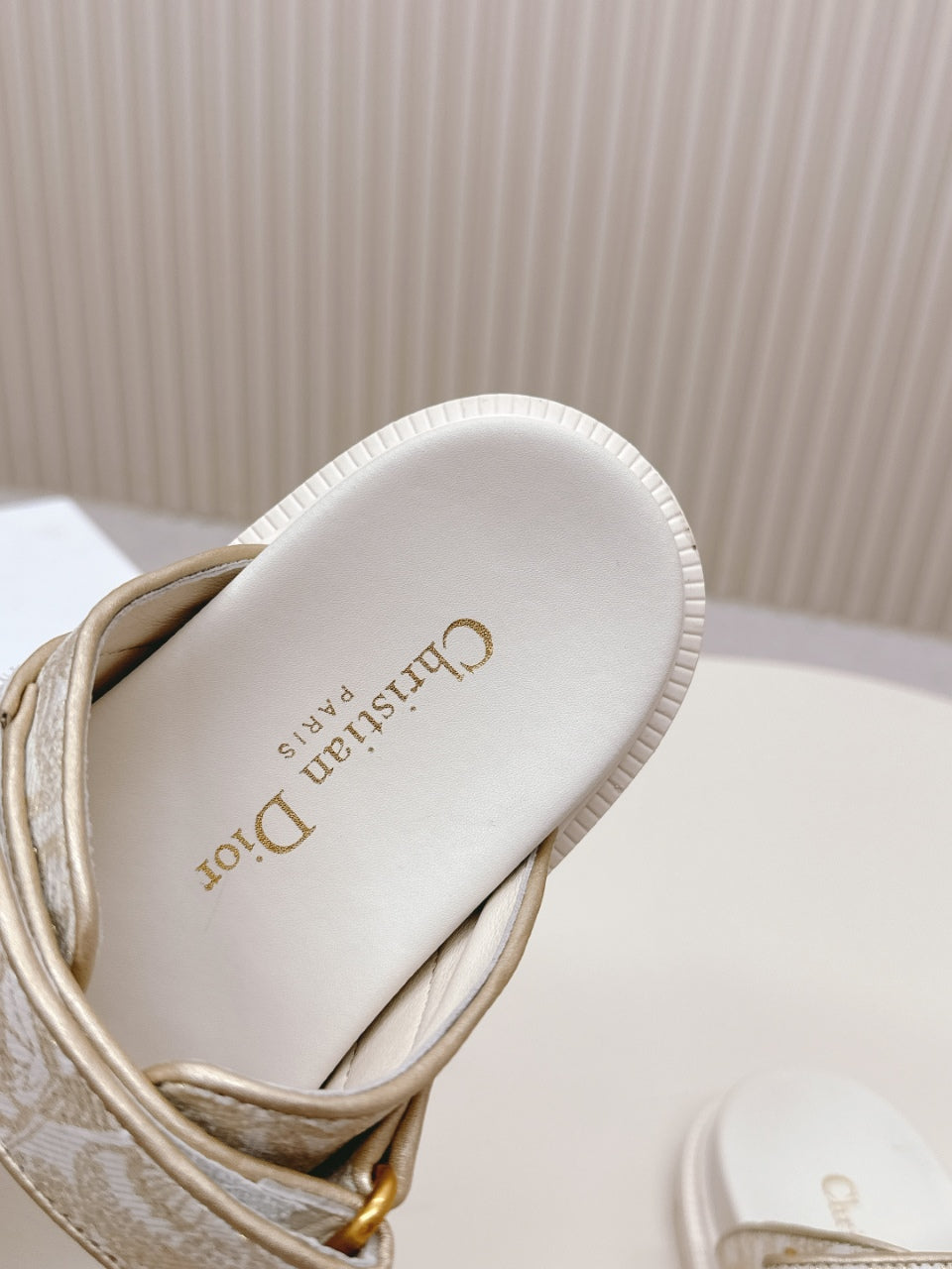 DIOR CLASSIC DOUBLE-STRAP SLIDES 25S IN WHITE MIX BEIGE FABRIC AND CALFSKIN