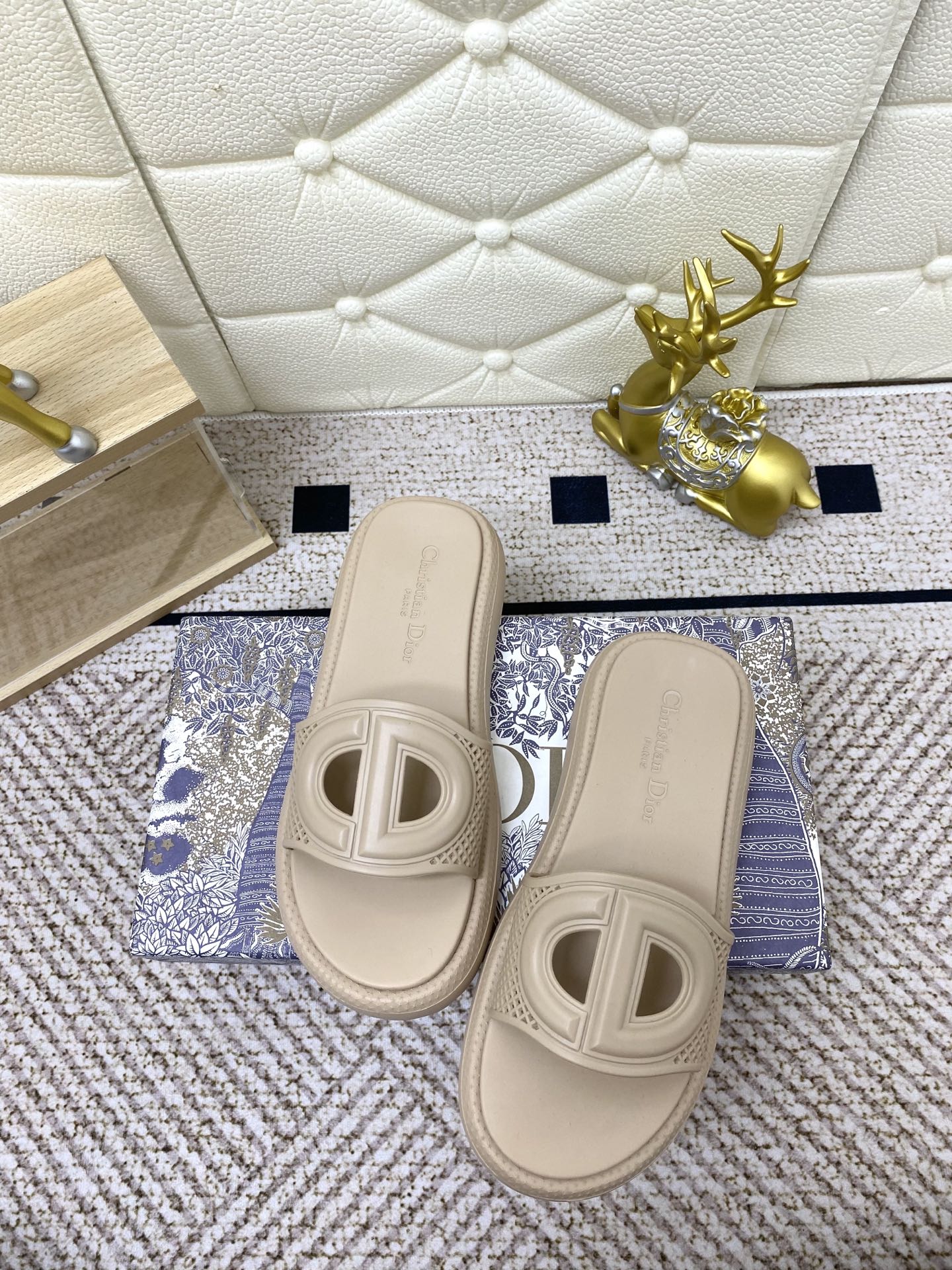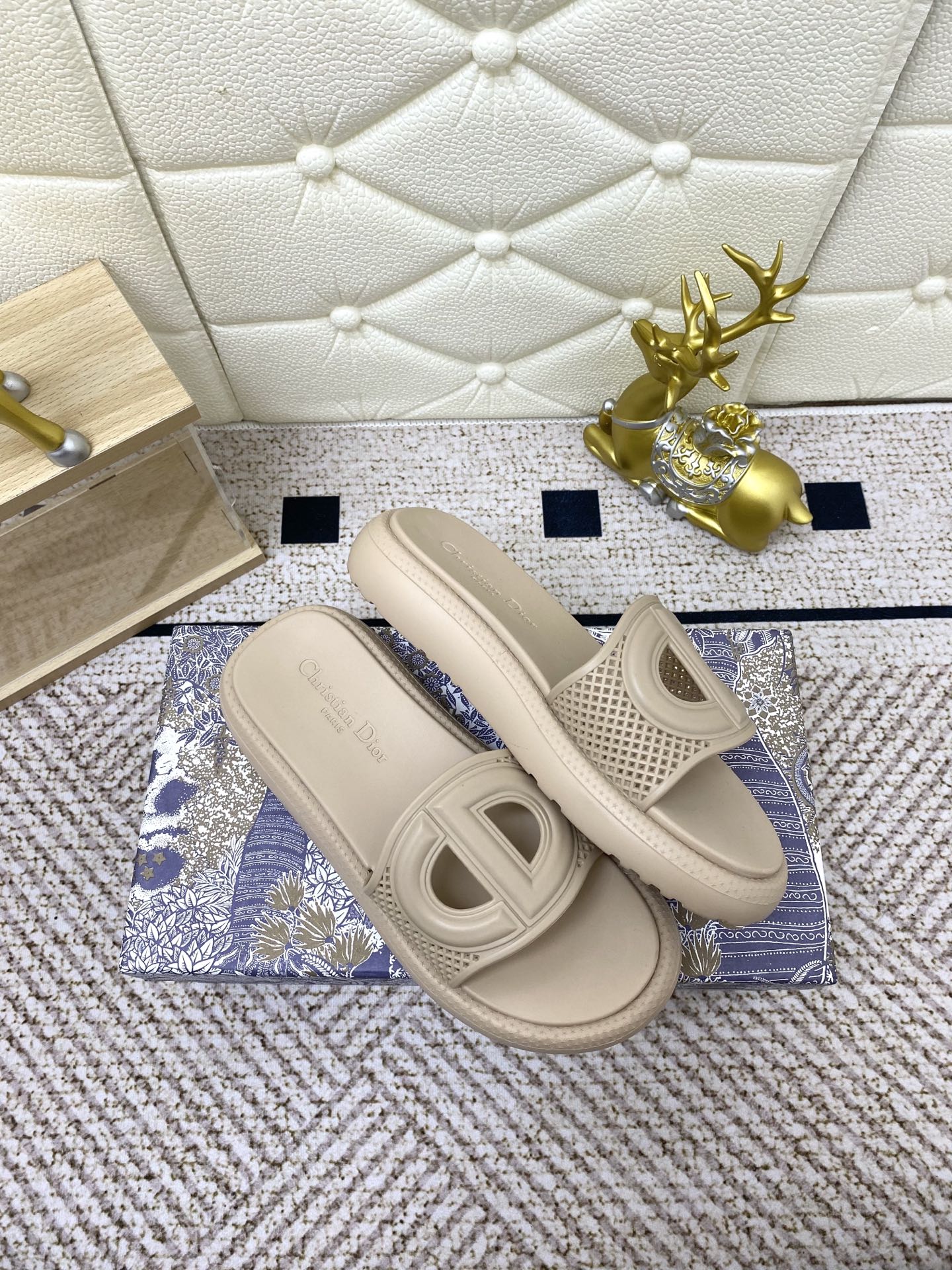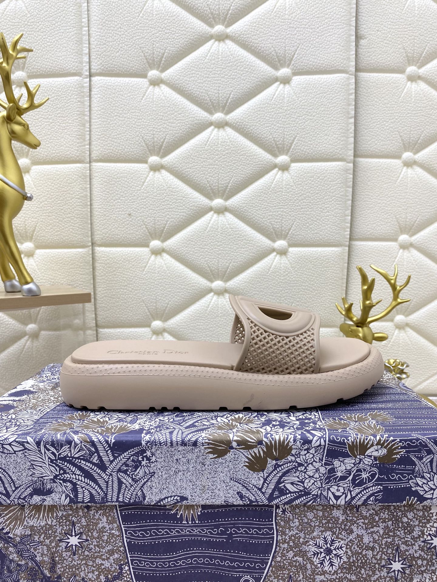 DIOR FLAT SLIDES 25S IN BEIGE TPU