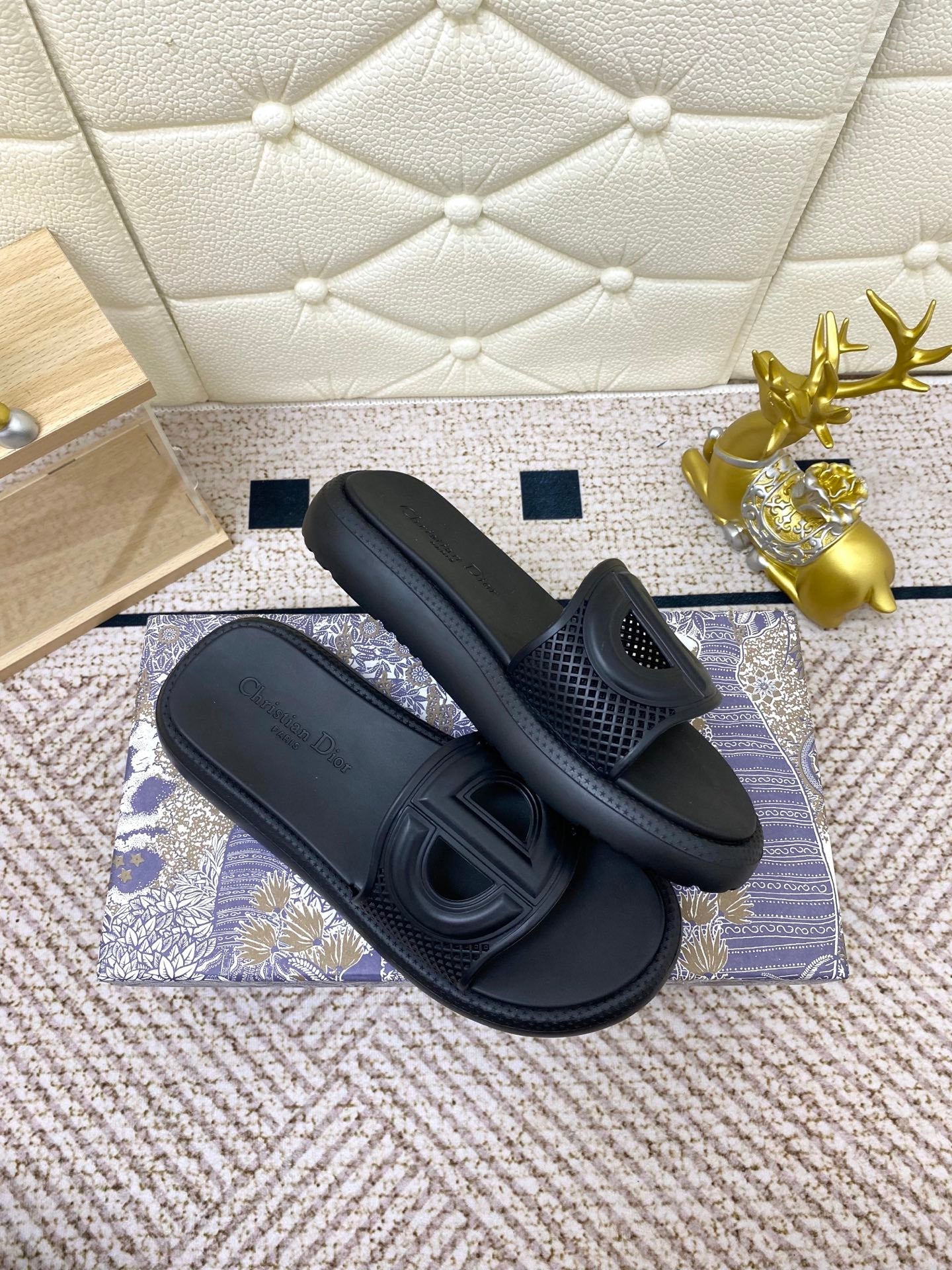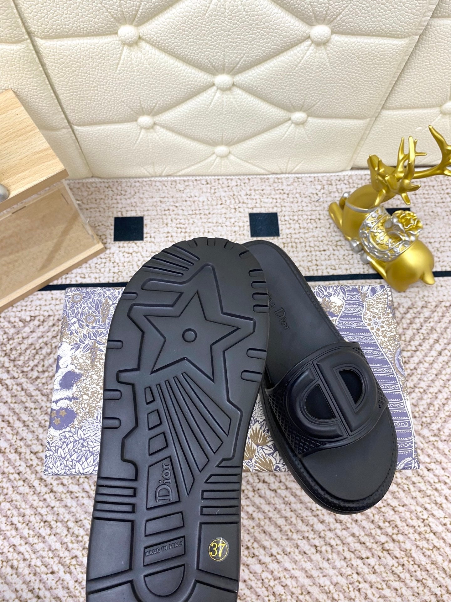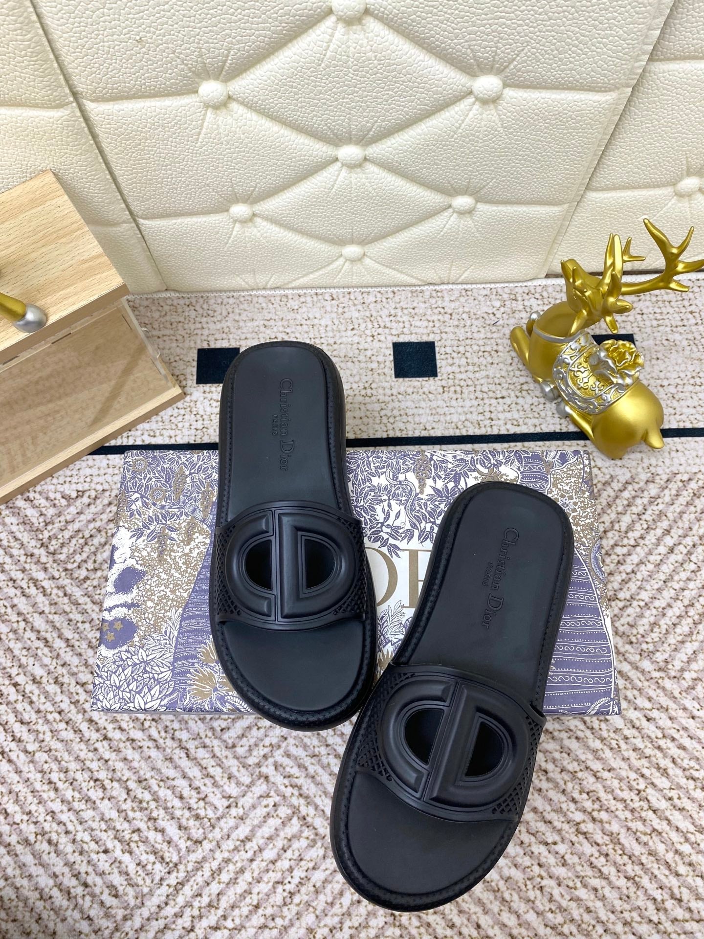 DIOR FLAT SLIDES 25S IN BLACK TPU