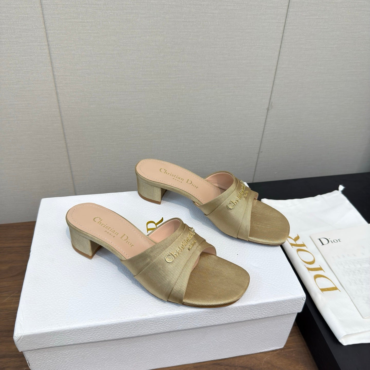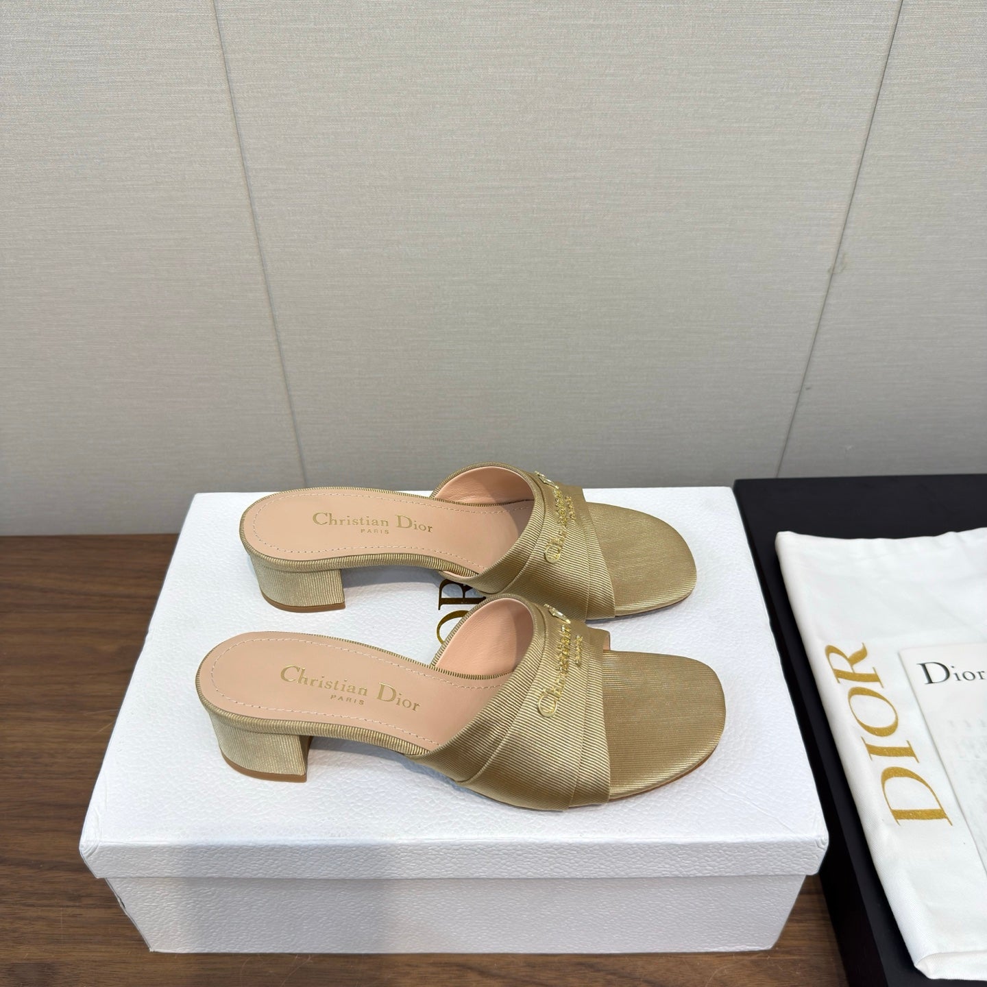 DIOR HIGH HEEL 25S 45 MM IN BEIGE FABRIC WITH GOLD HARDWARE