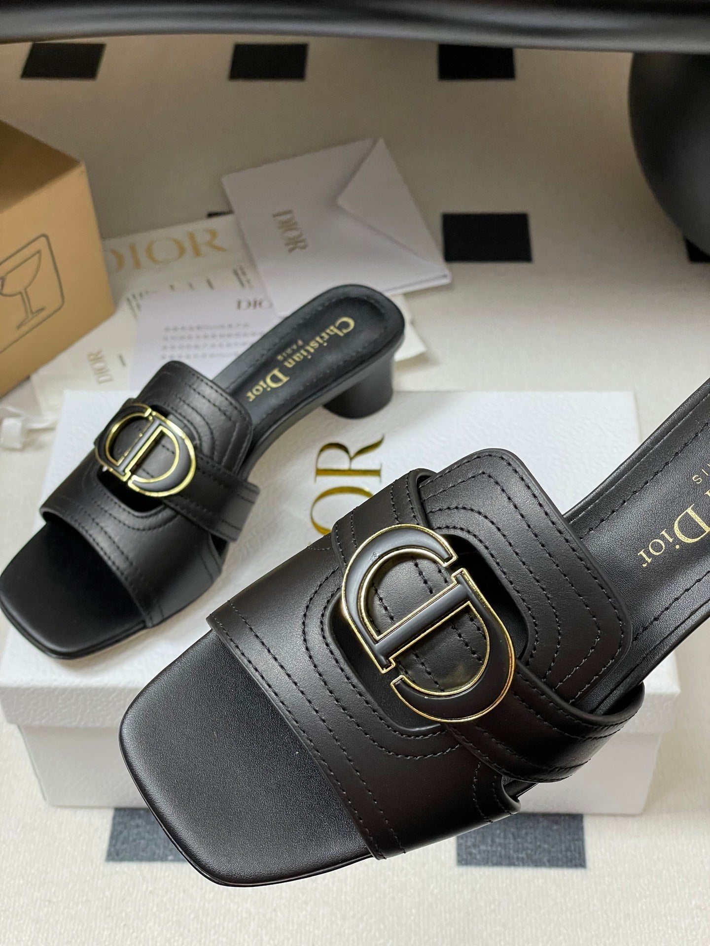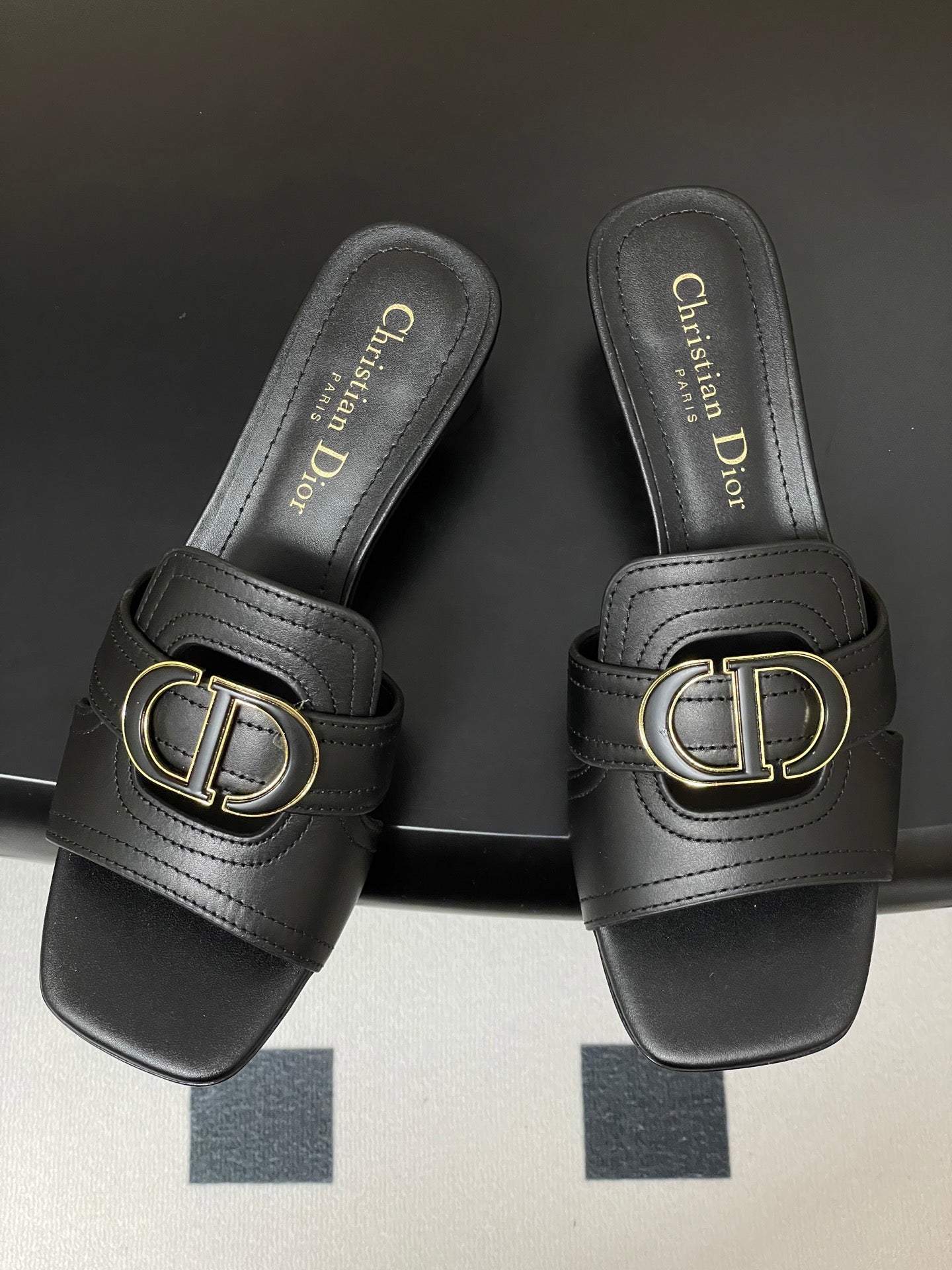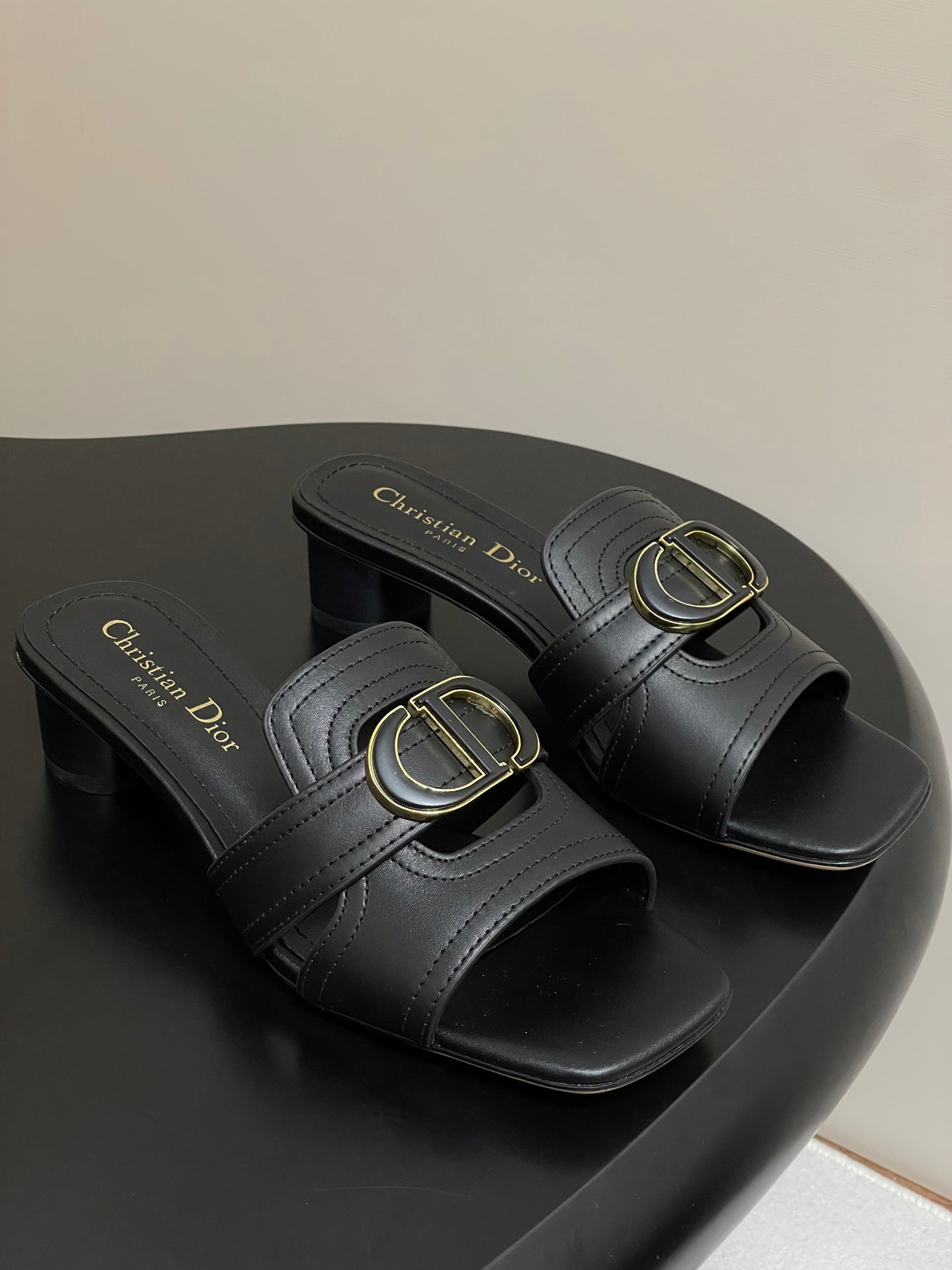 DIOR HIGH HEEL CLASSIC MONTAIGNE 40 MM 25S IN BLACK LAMBSKIN WITH CD LOGO