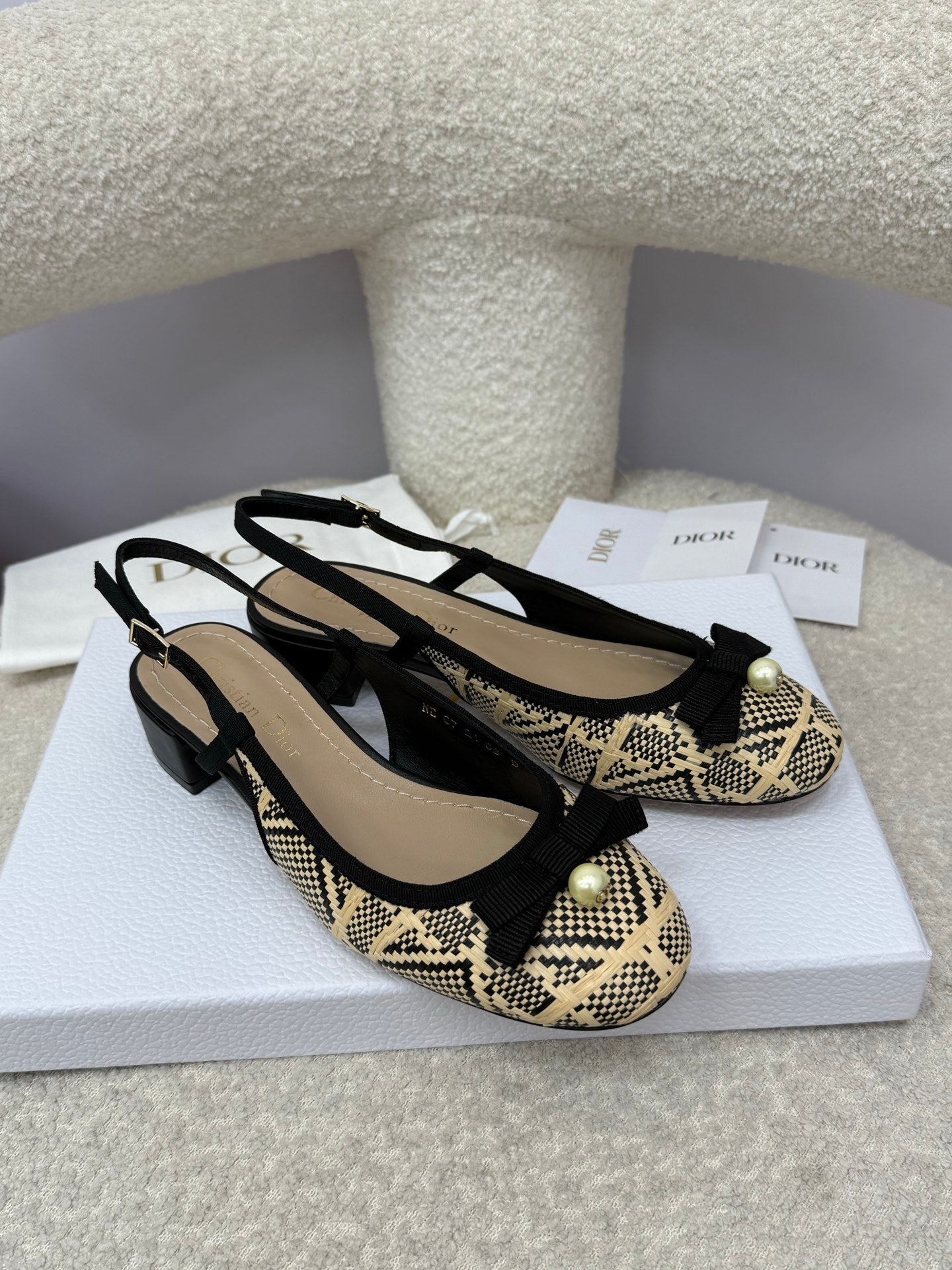 DIOR HIGH SLINGBACK 30 MM 25S IN BLACK AND BEIGE RAFFIA WITH PEARL