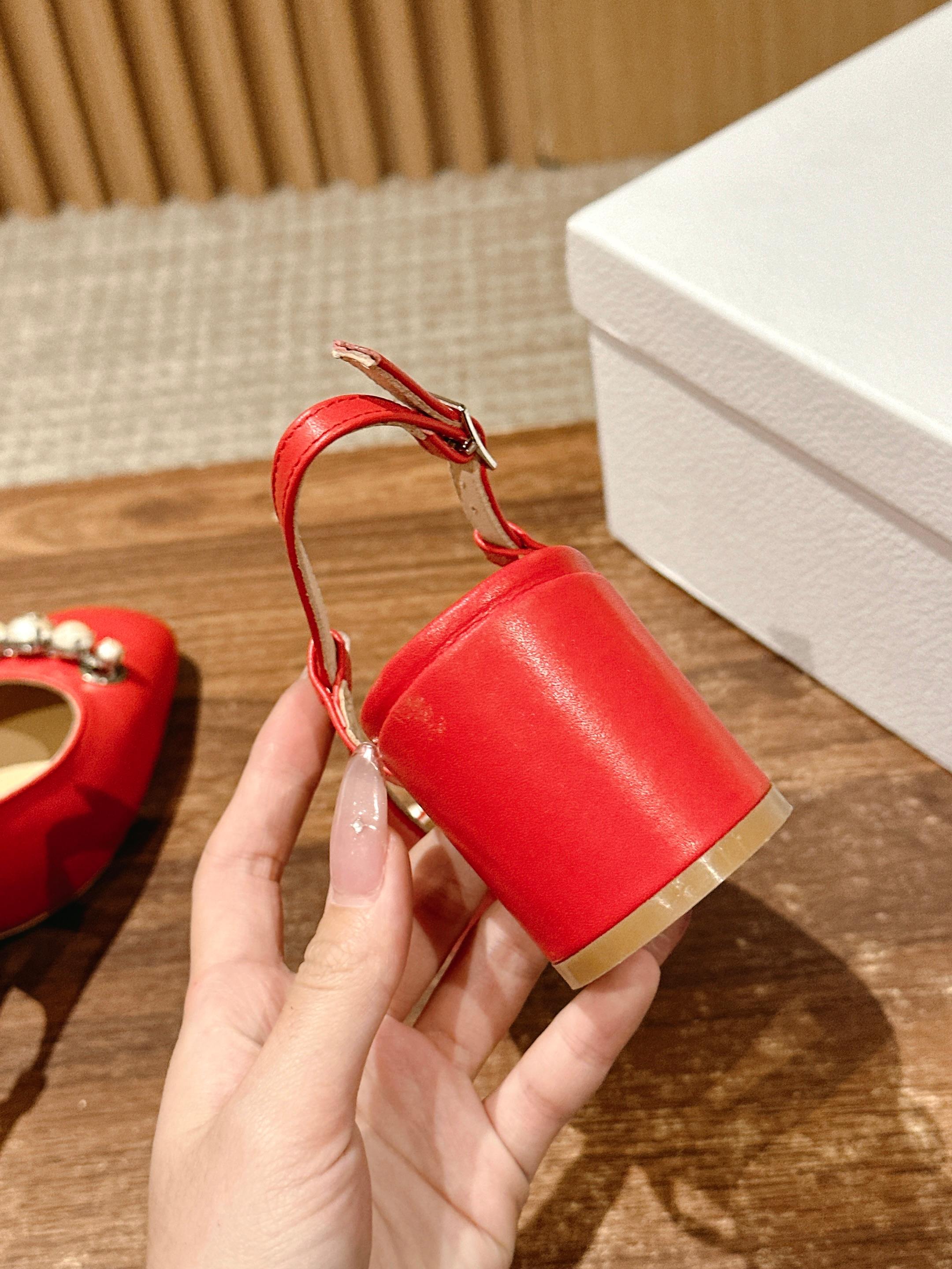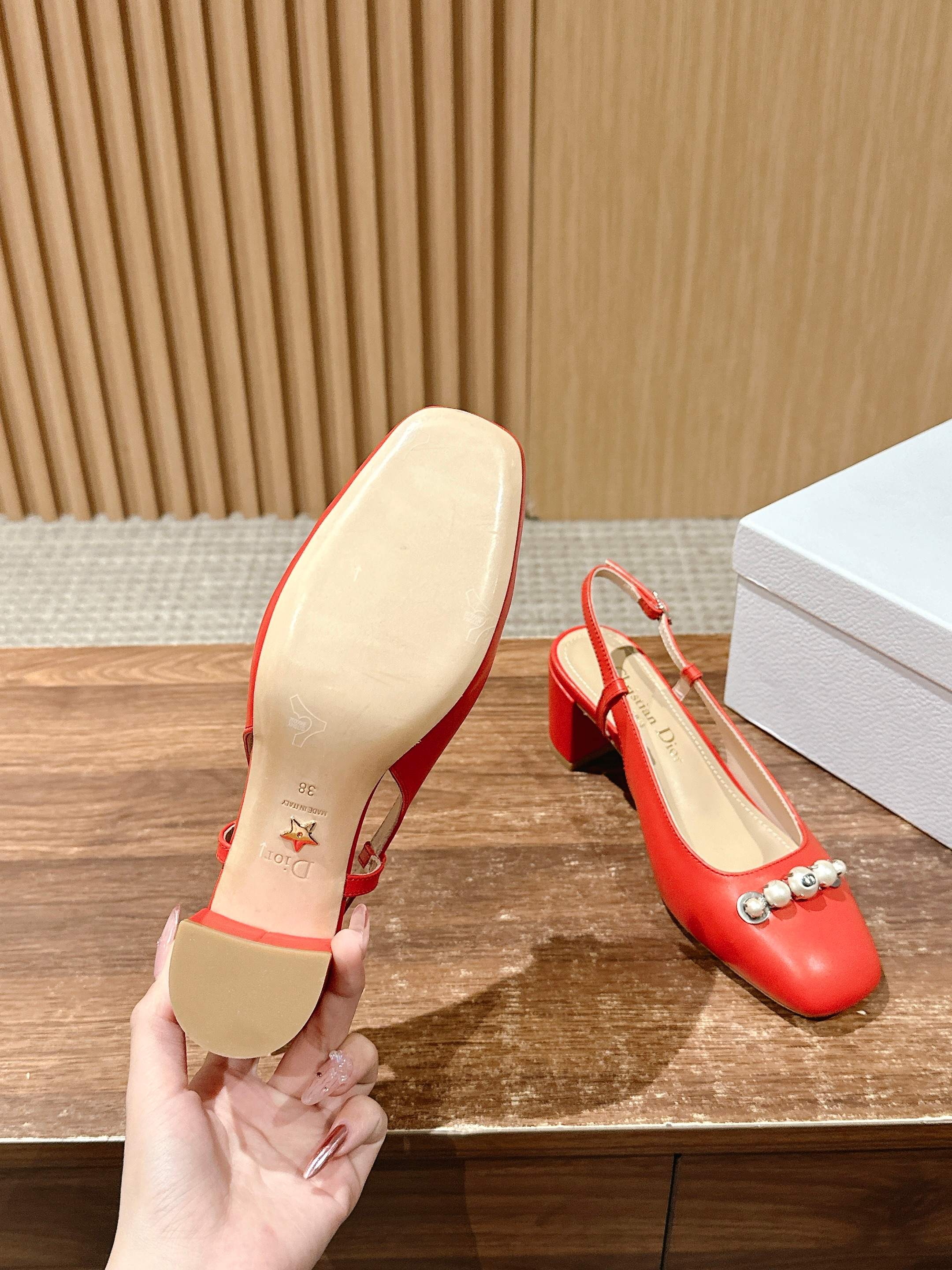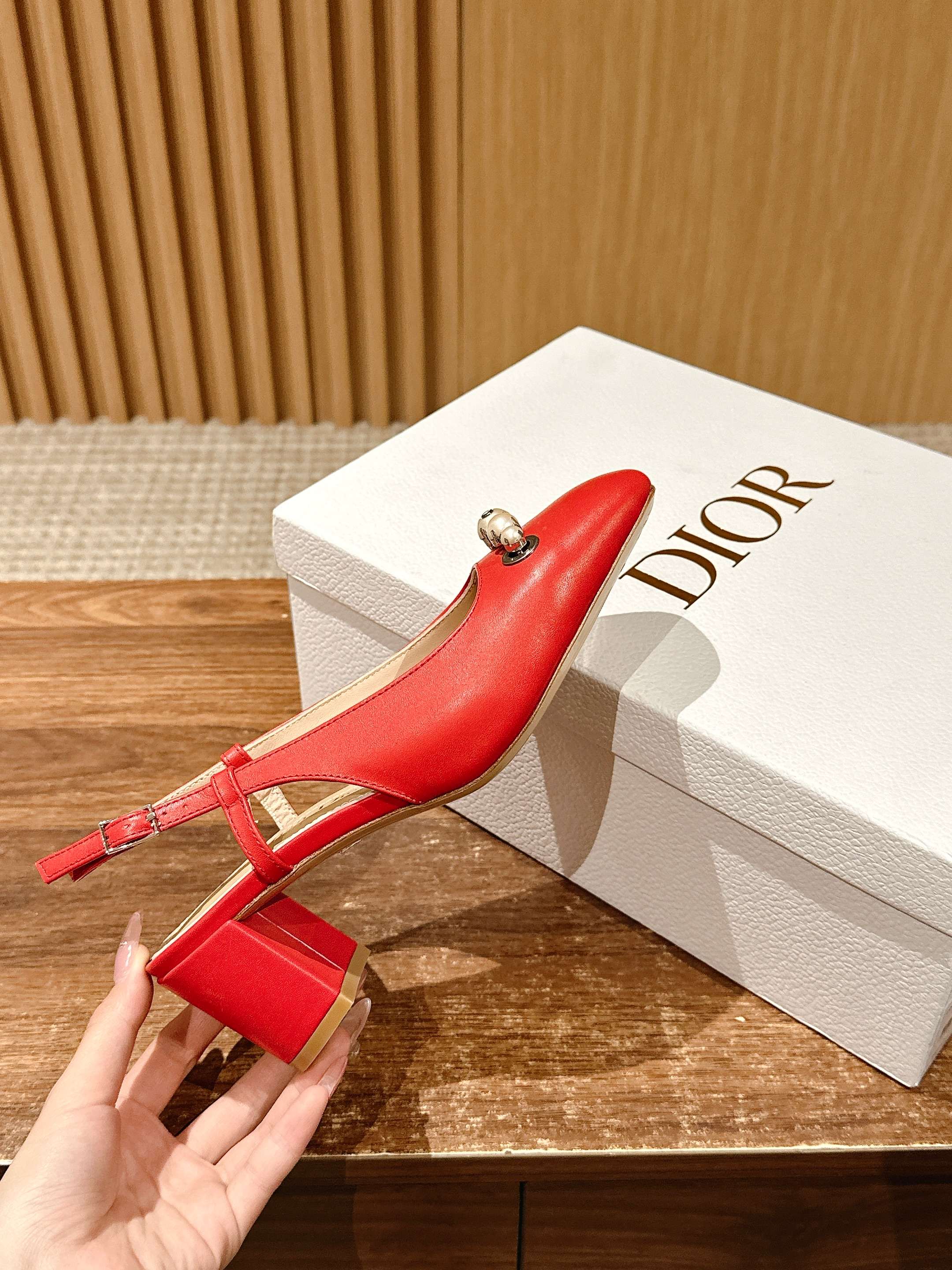 DIOR HIGH SLINGBACK 55 MM 25S IN RED LAMBSKIN PEARL DETAILING