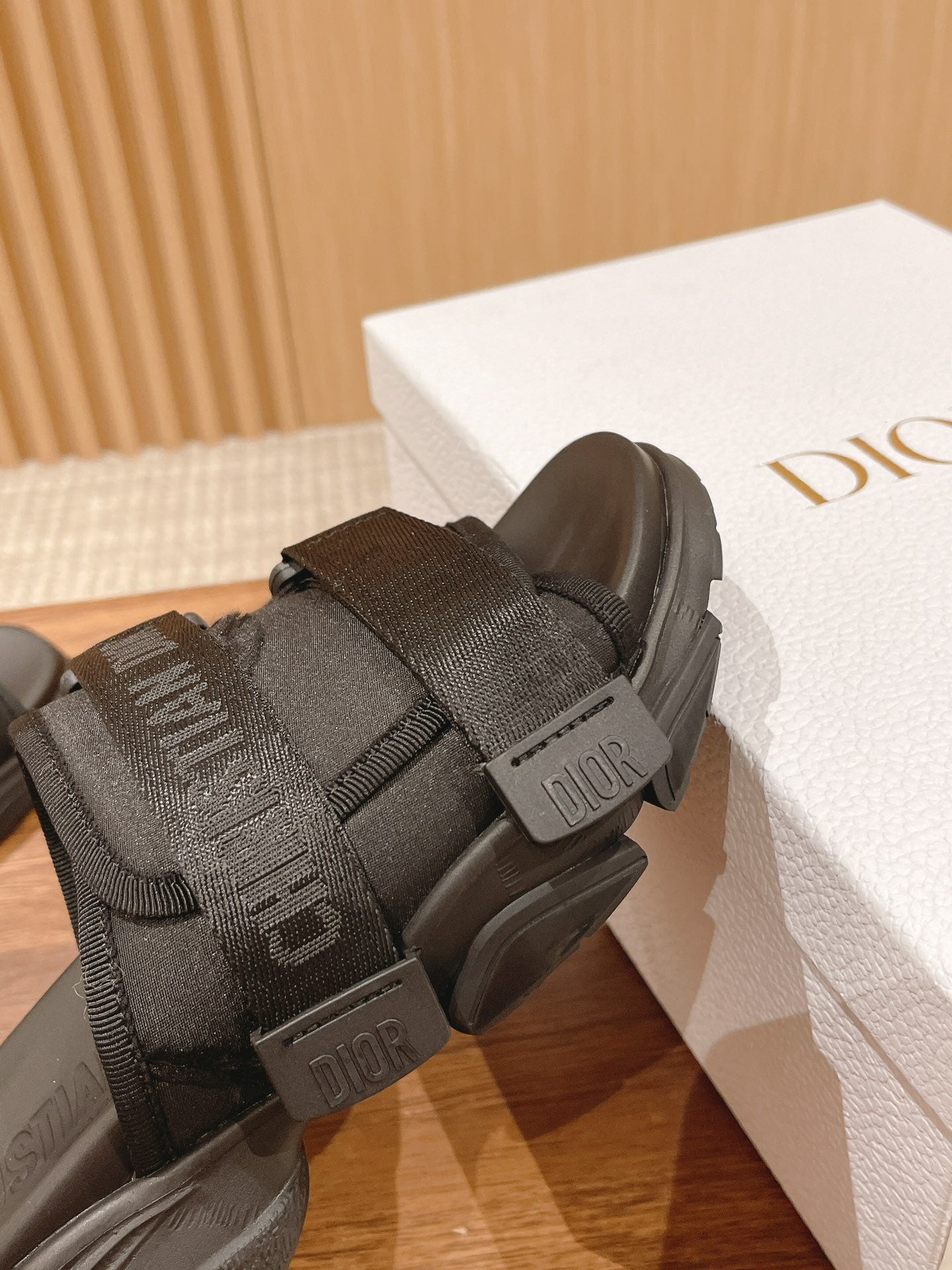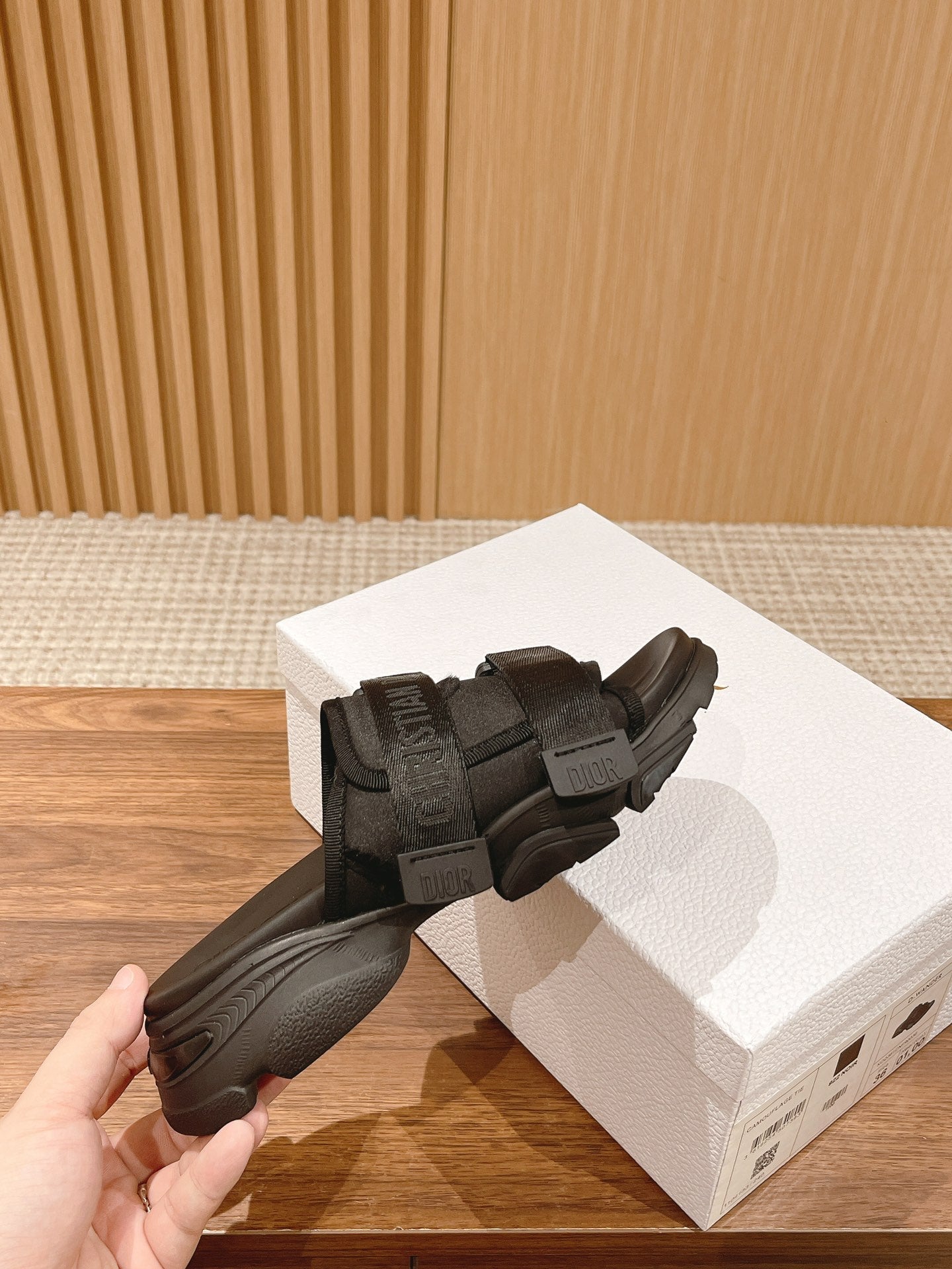 DIOR PLATFORM SLIDES 25S 30 MM IN BLACK FABRIC AND CALFSKIN