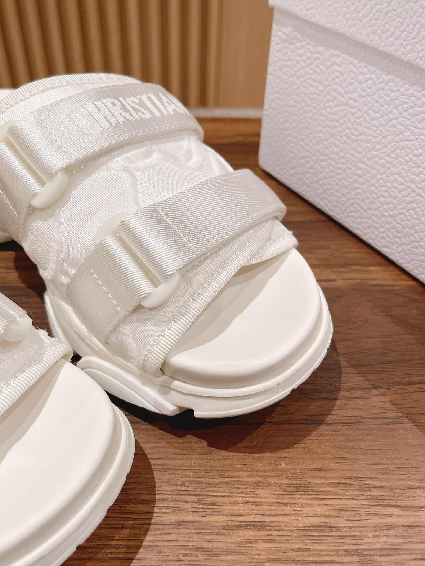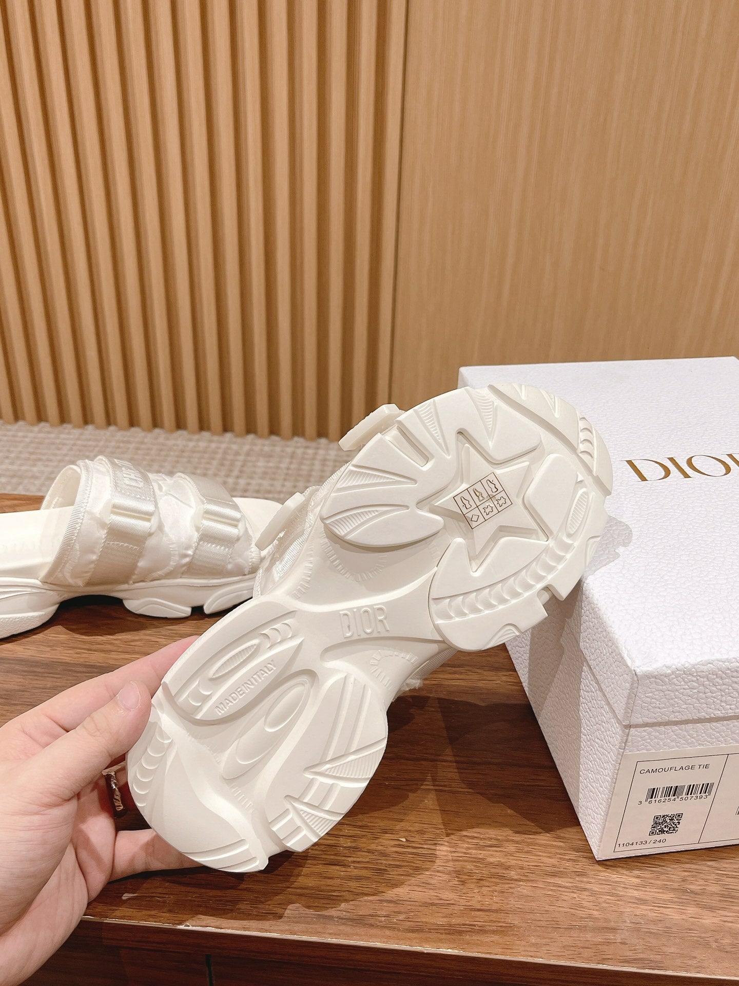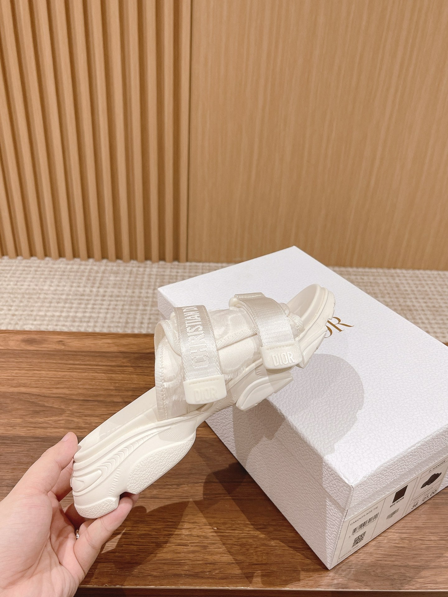 DIOR PLATFORM SLIDES 25S 30 MM IN CREAM WHITE FABRIC AND CALFSKIN