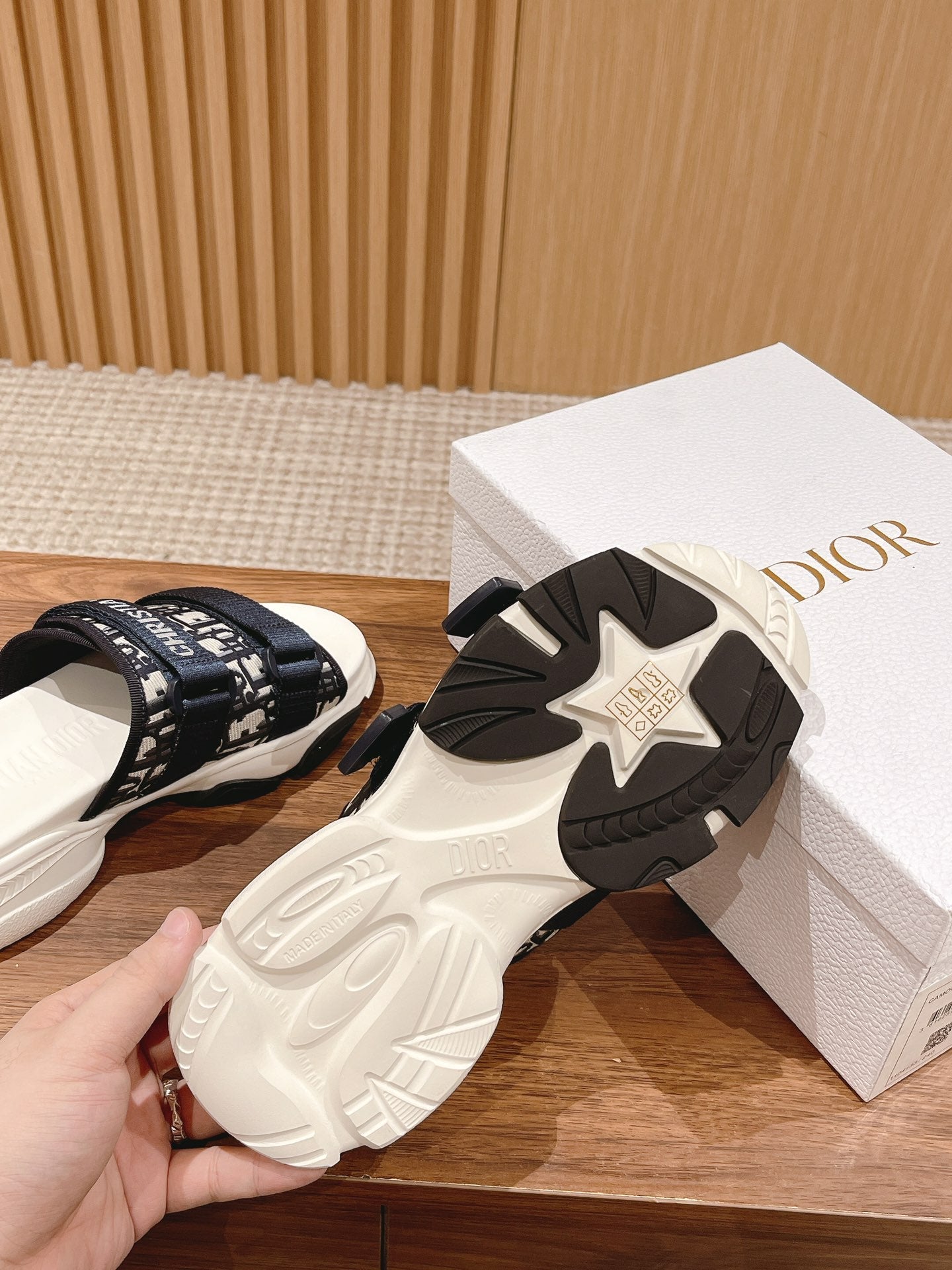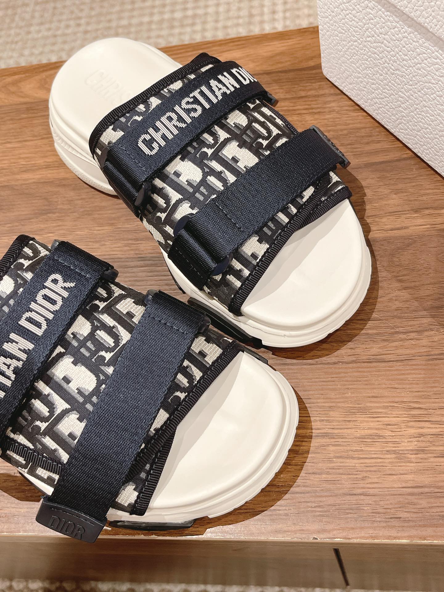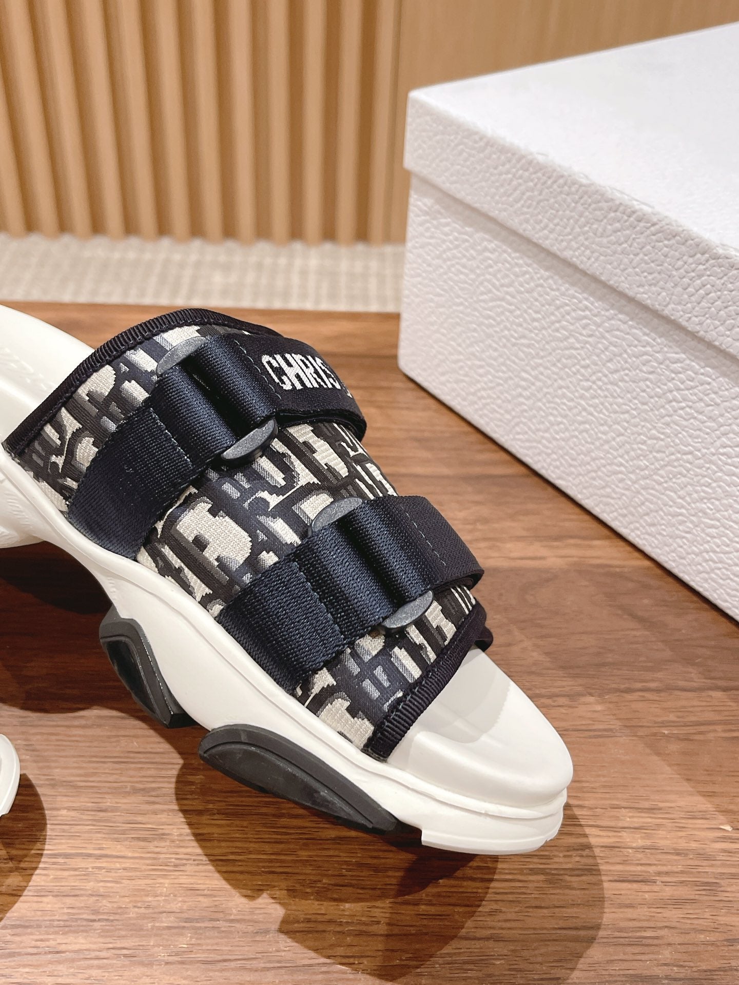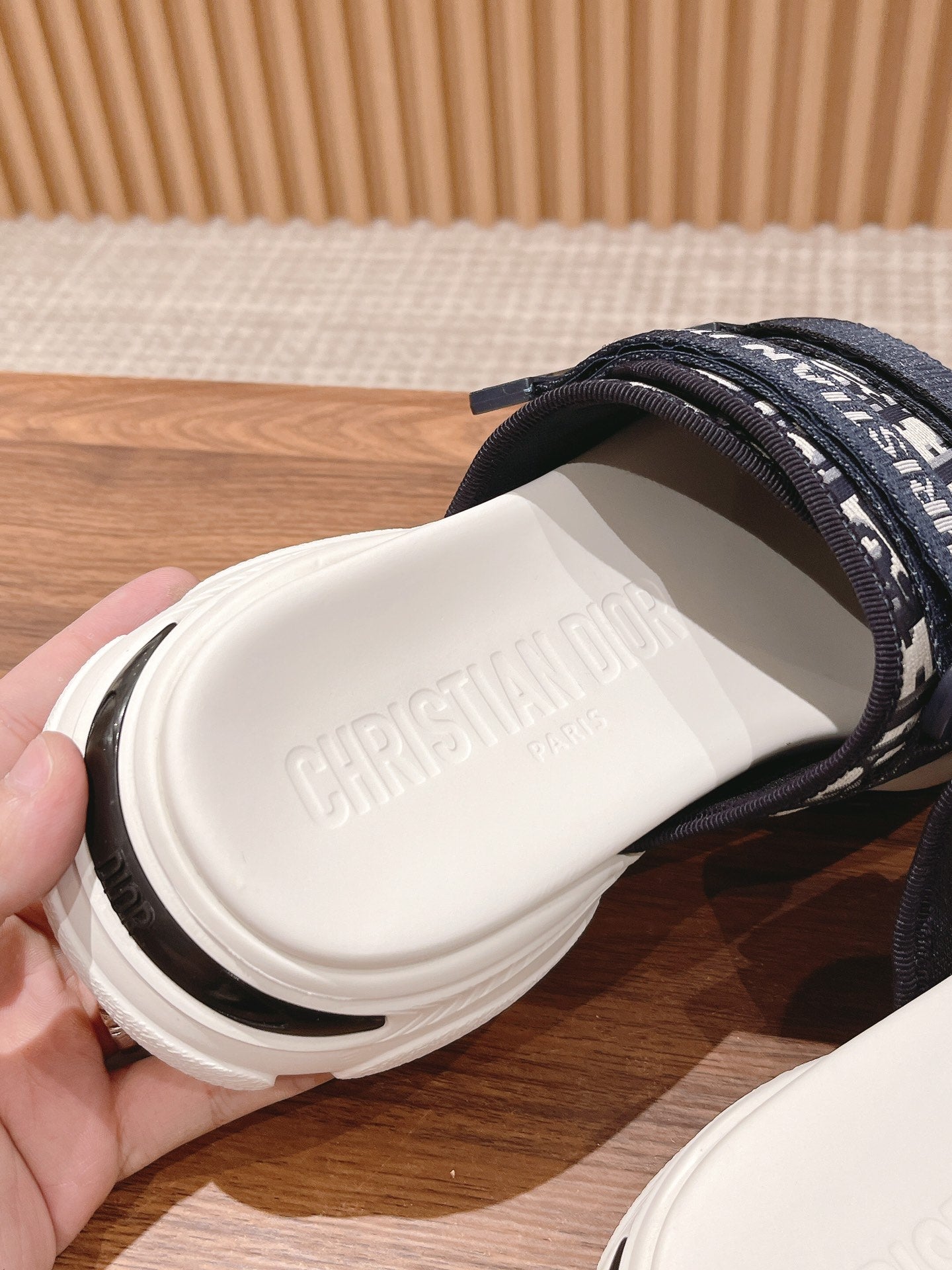 DIOR PLATFORM SLIDES 25S 30 MM IN MIDNIGHT BLUE MIX WHITE FABRIC AND CALFSKIN