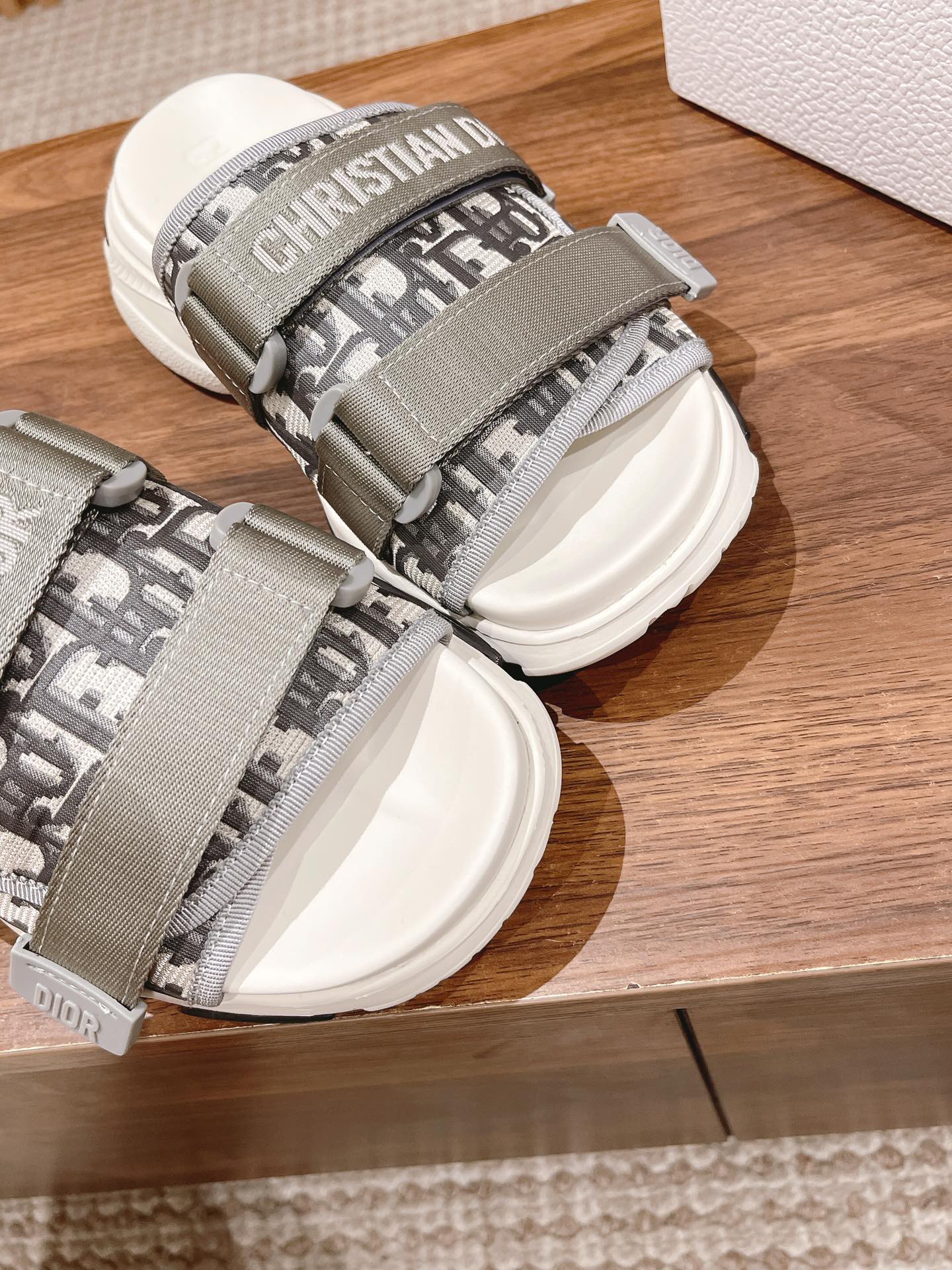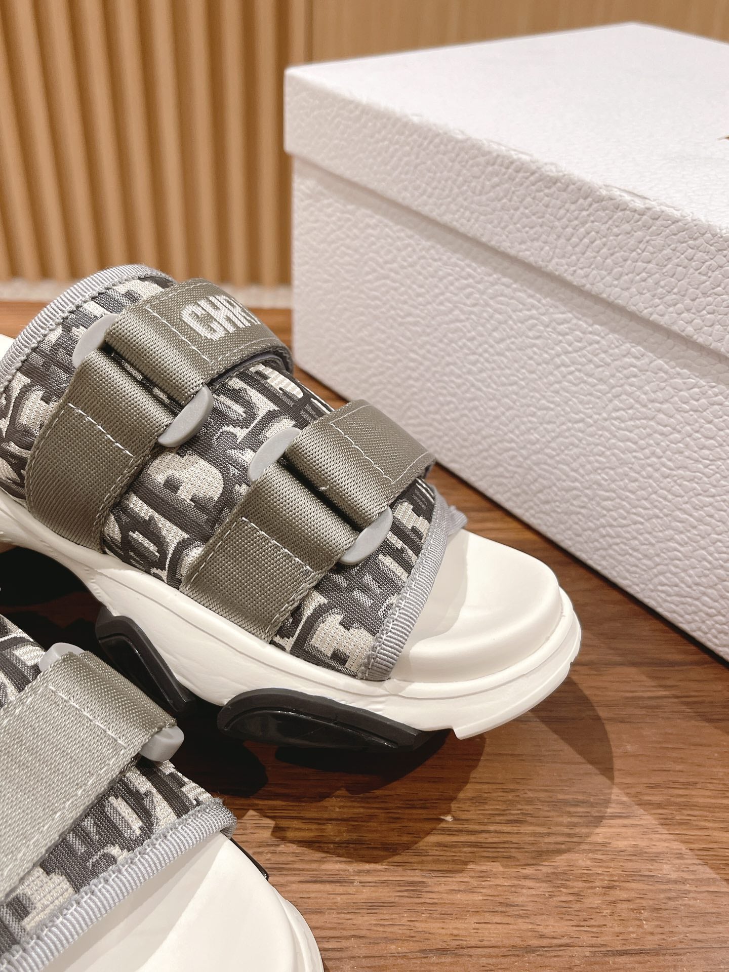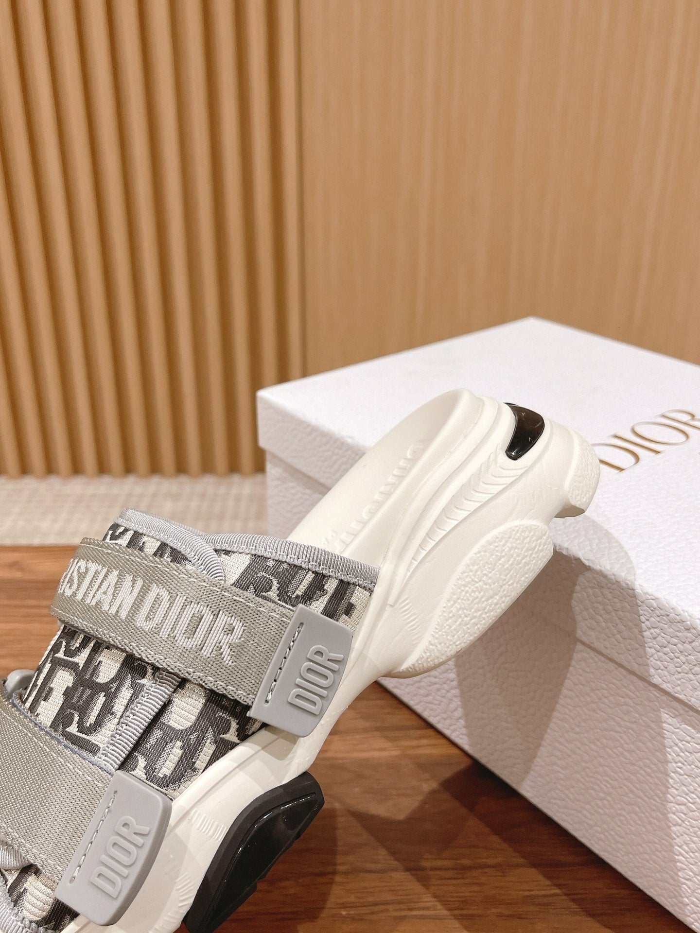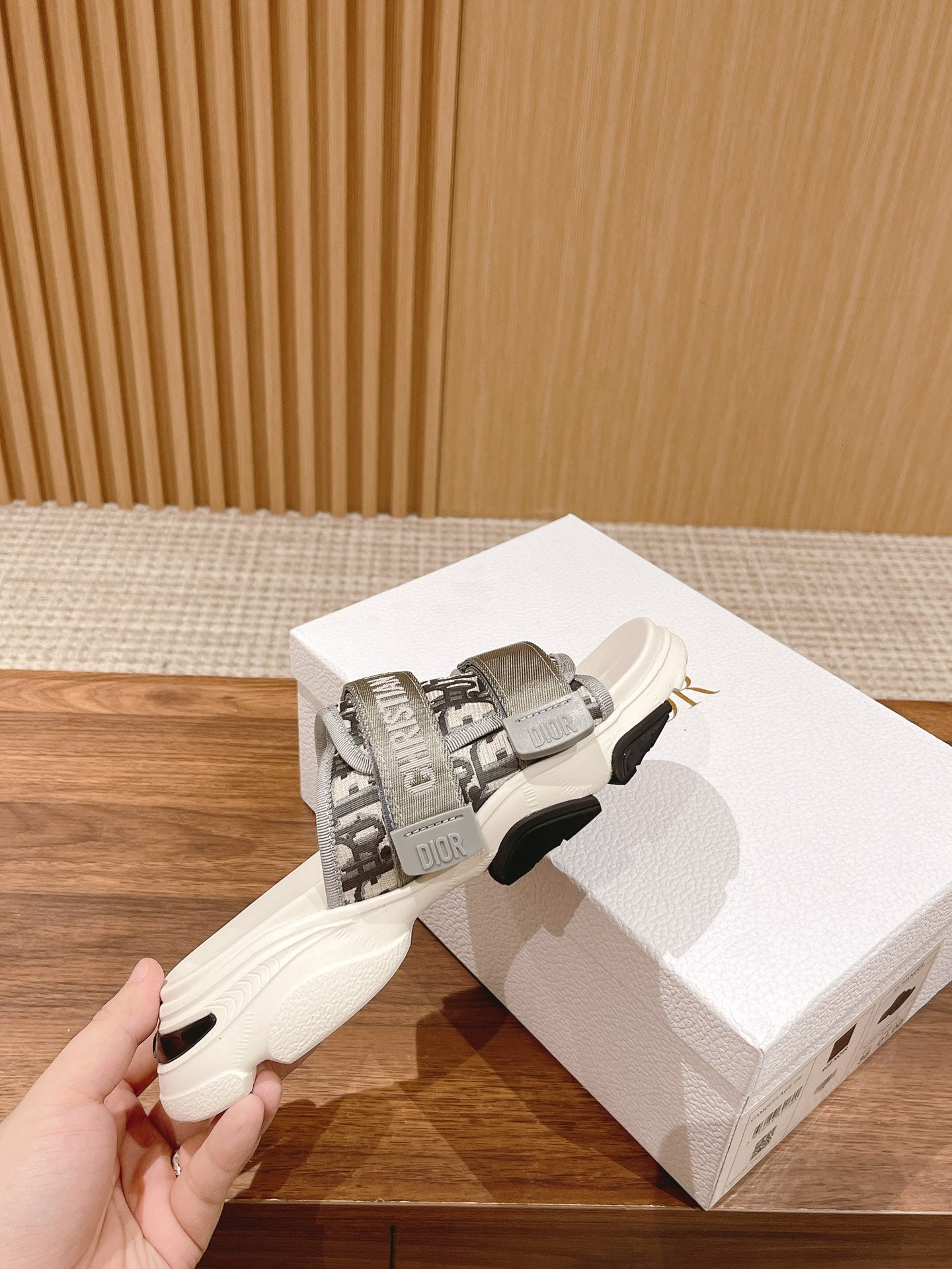 DIOR PLATFORM SLIDES 25S 30 MM IN WHITE MIX GREY FABRIC AND CALFSKIN