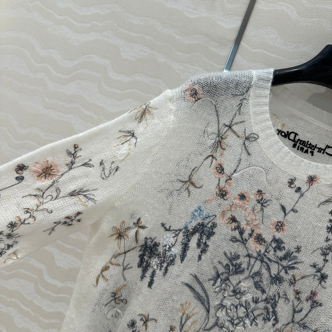 DIOR PREMIUM WHITE KNIT SWEATER WITH PATTERN