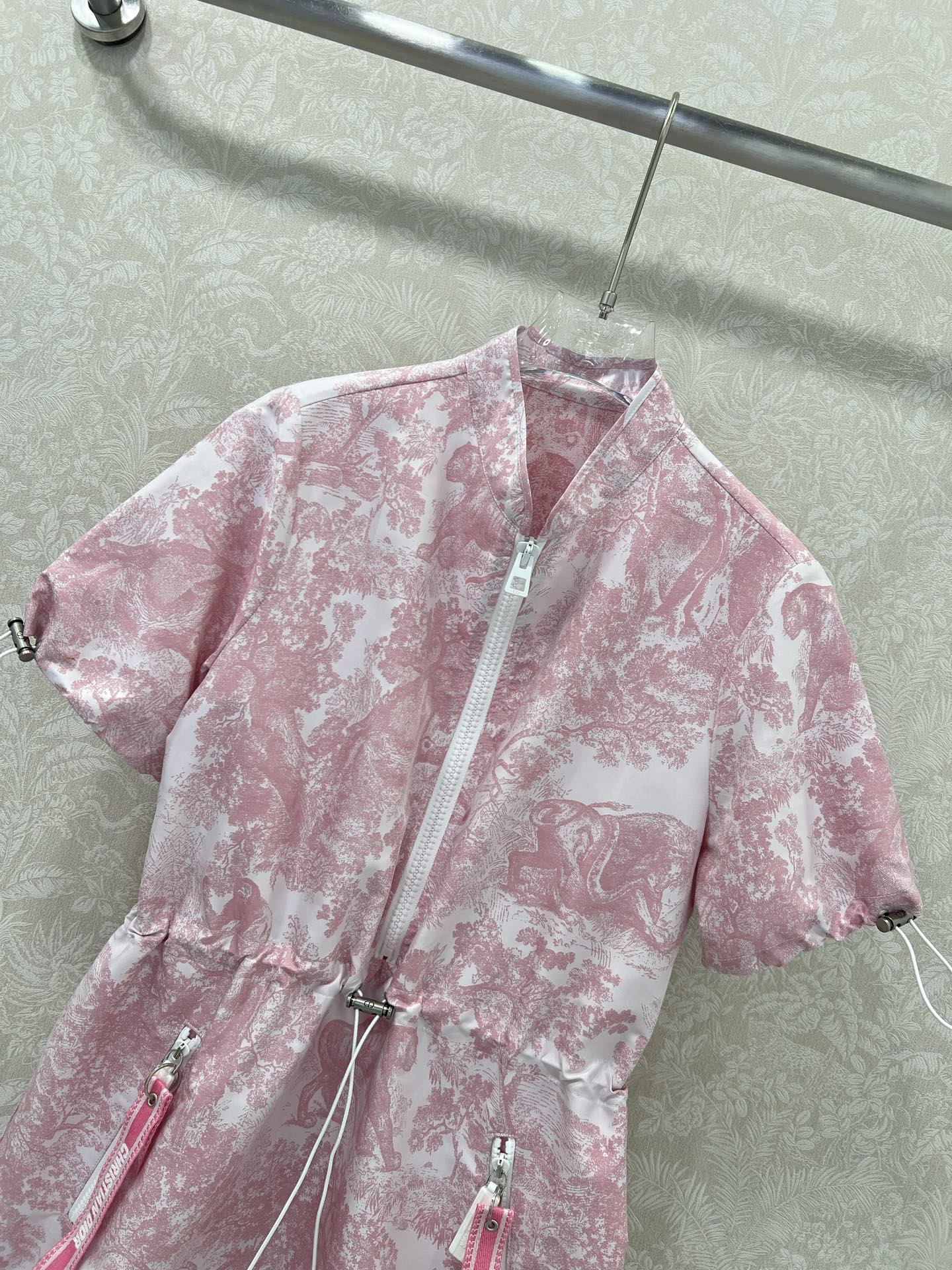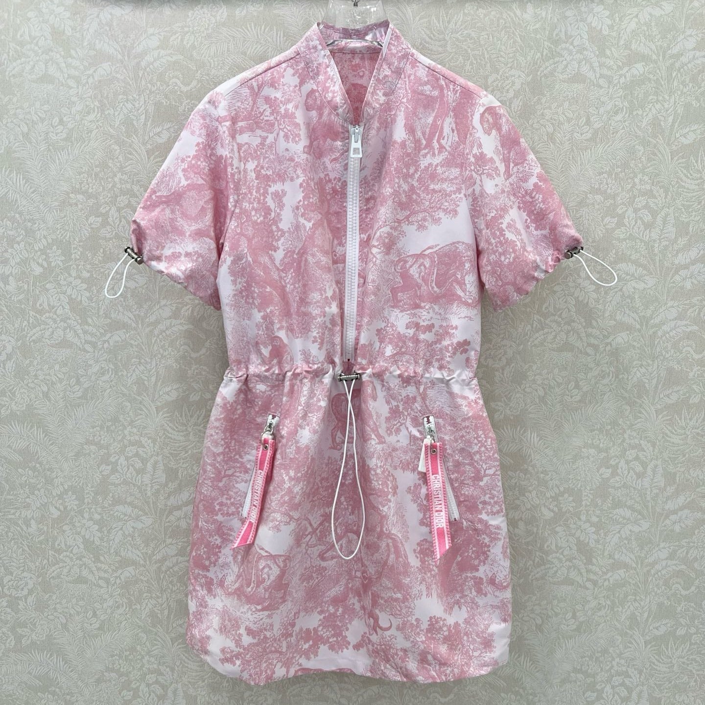 DIOR STAND-COLLAR HALF-ZIP PRINTED DRESS 275175