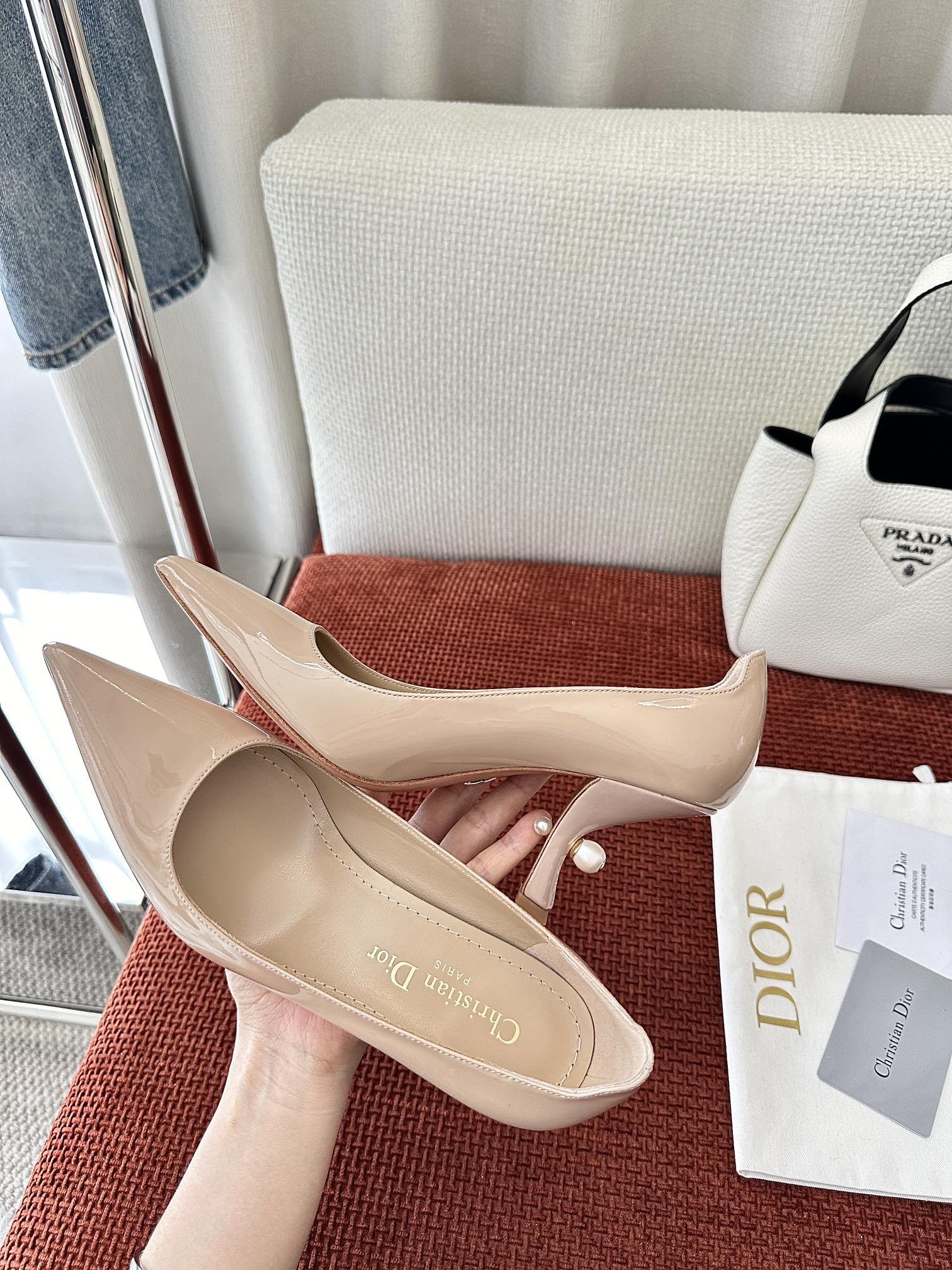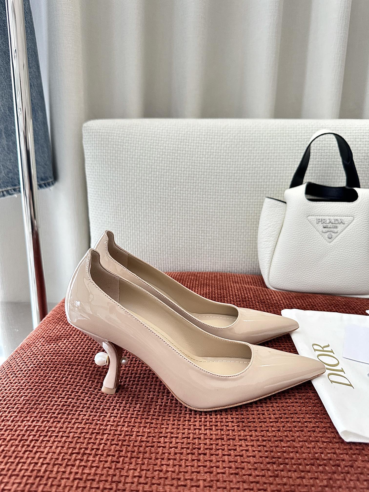 DIOR TRIBALES HIGH HEELS 80 MM 25S IN BEIGE GLOSSY LEATHER