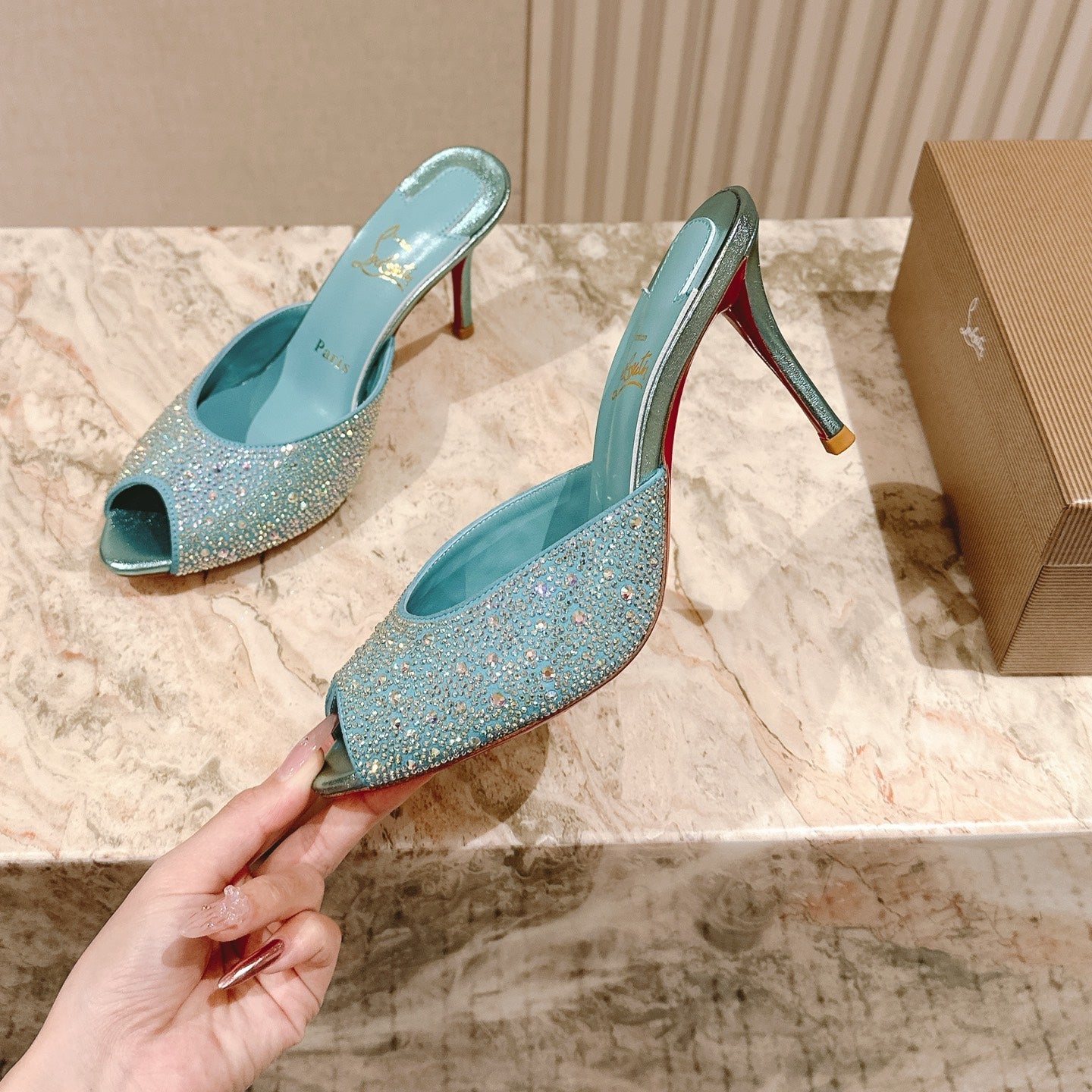 DOLLY STRASS SOLE SLIDE SANDALS 85MM IN BABY BLUE CALFSKIN