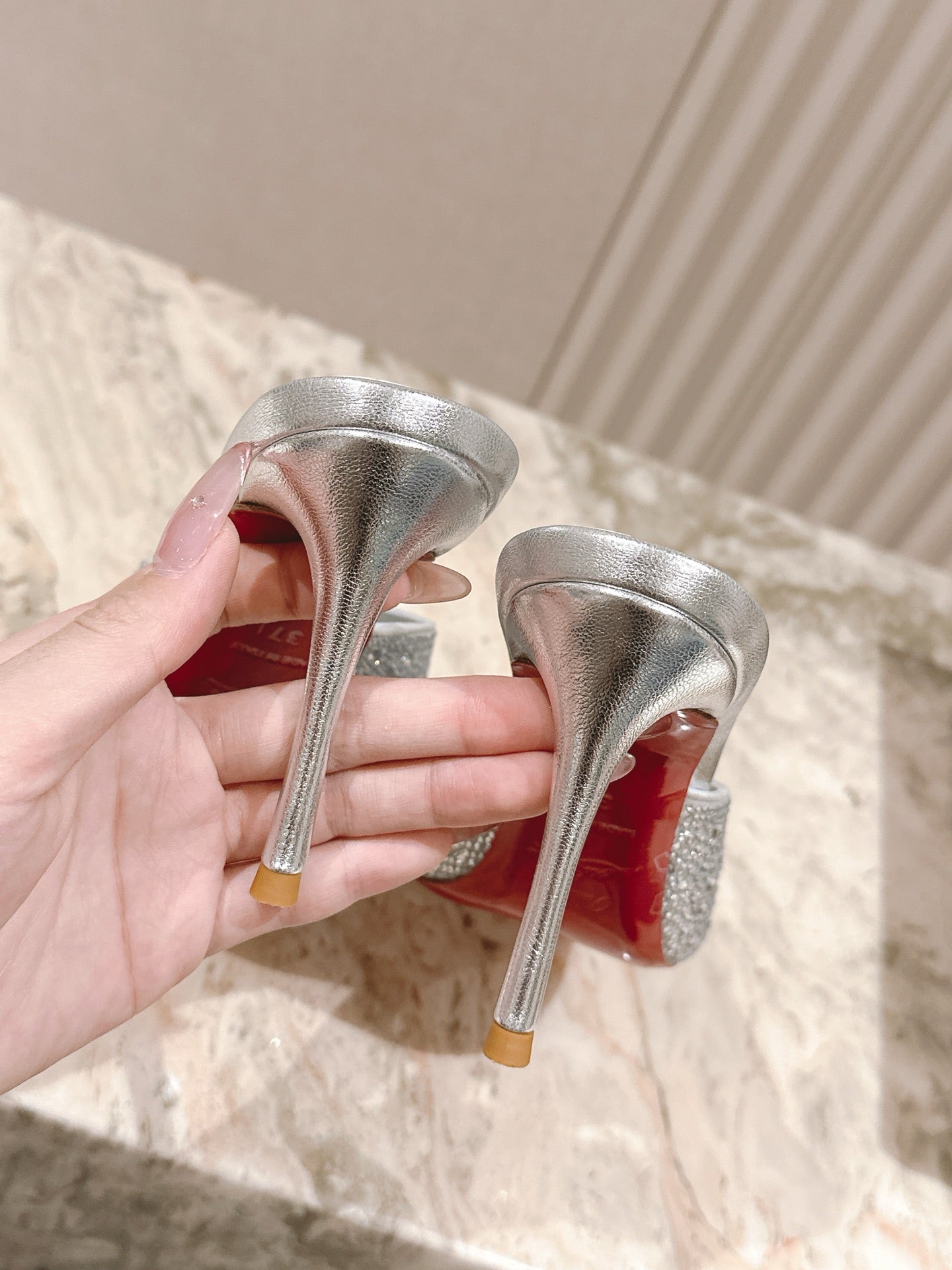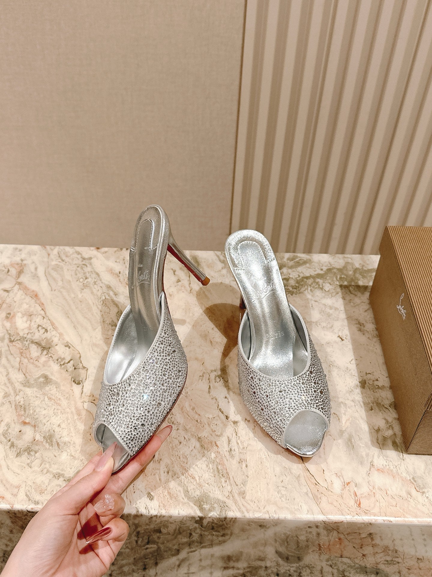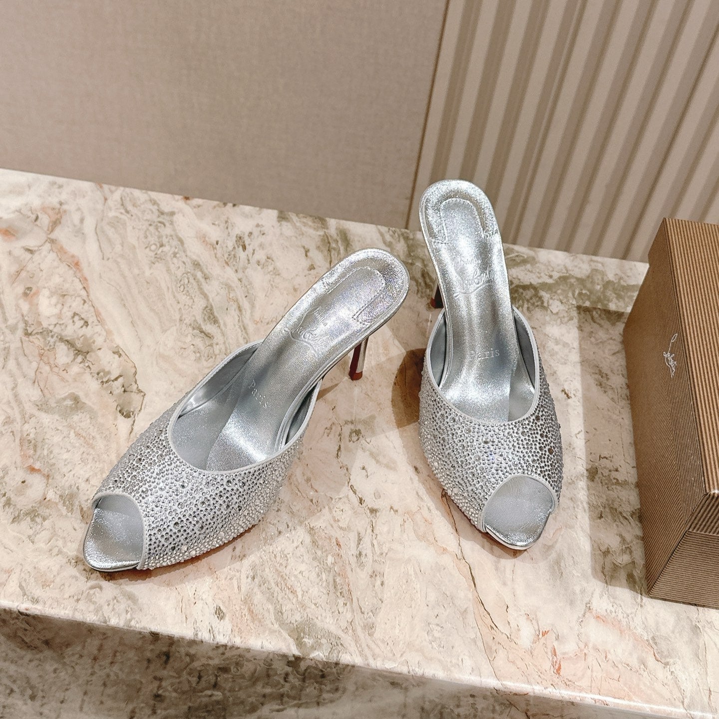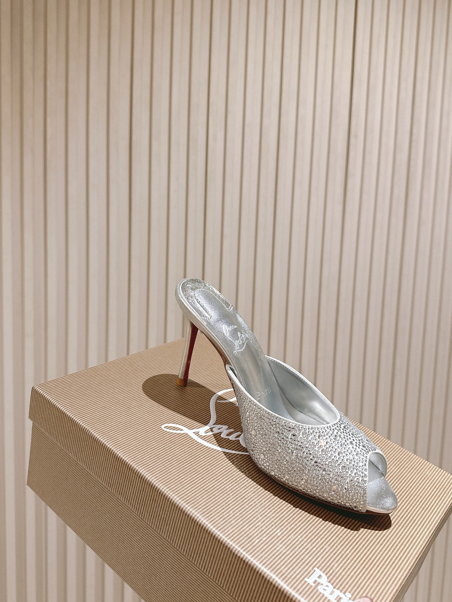 DOLLY STRASS SOLE SLIDE SANDALS 85MM IN SILVER-TONE CALFSKIN