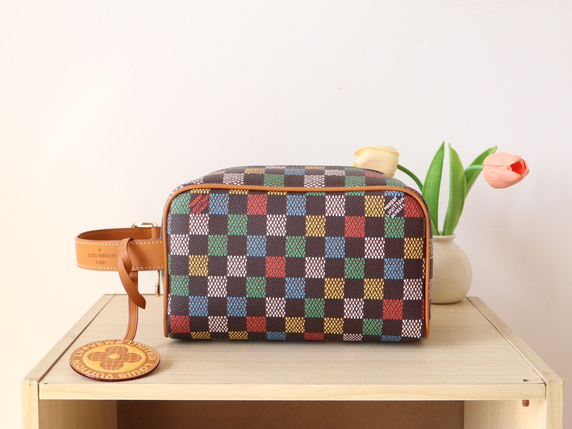 DOPP KIT LOCKER BAG 23 IN COLORFUL DAMIER CALFSKIN