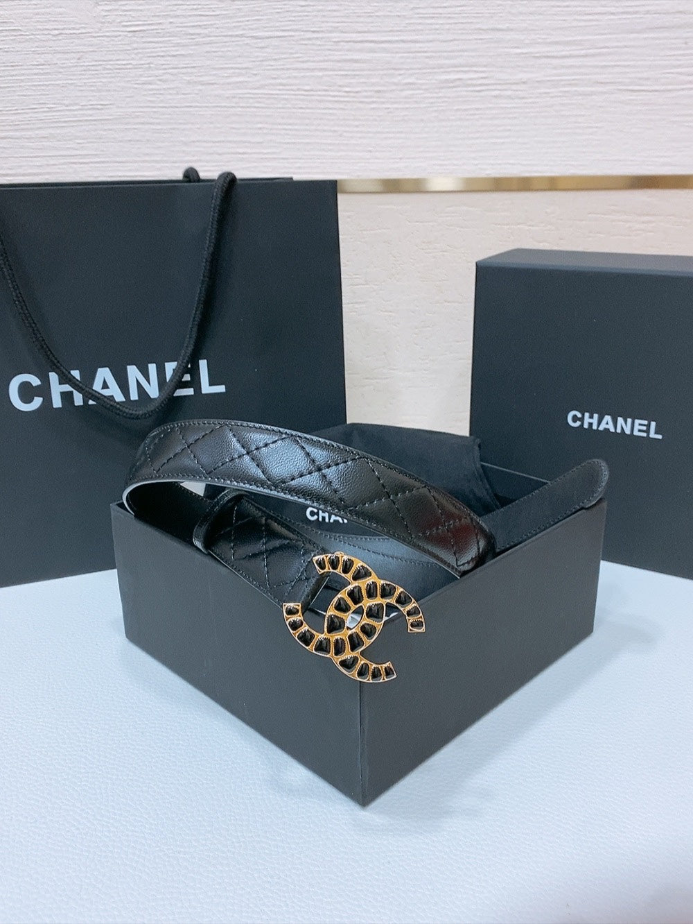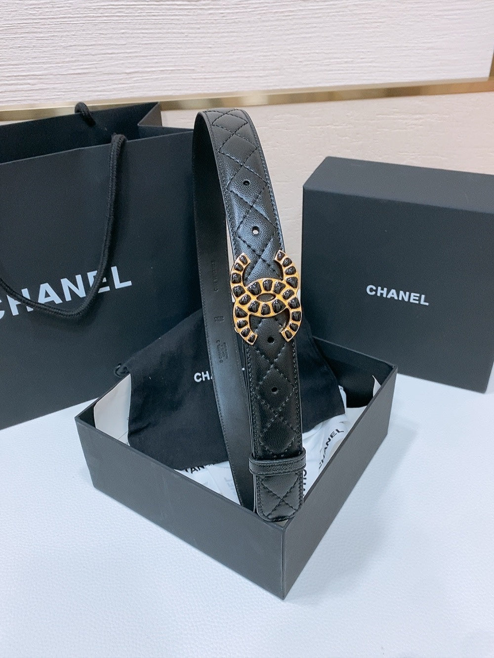 DOUBLE C 30MM IN BLACK QUILTED CALFSKIN INTERWOVEN BUCKLE EMBOSSED BLACK STONE
