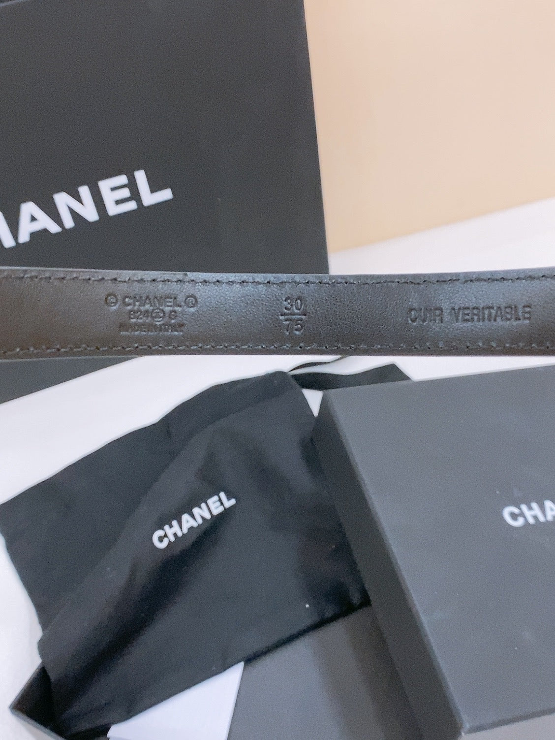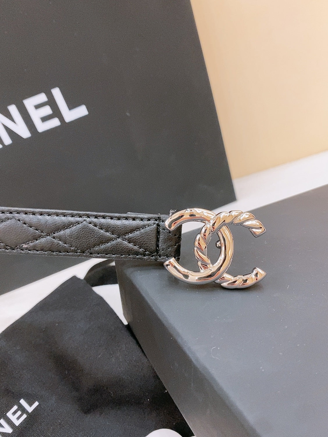 DOUBLE C BELT 20MM IN BLACK CALFSKIN WITH QUILTED STITCHING AND SPIRAL SILVER BUCKLE