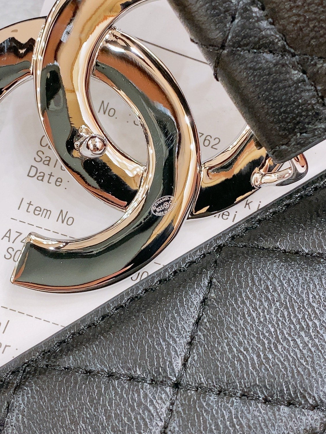 DOUBLE C BELT 40MM IN BLACK QUILTED LAMBSKIN SILVER RESIN BUCKLE