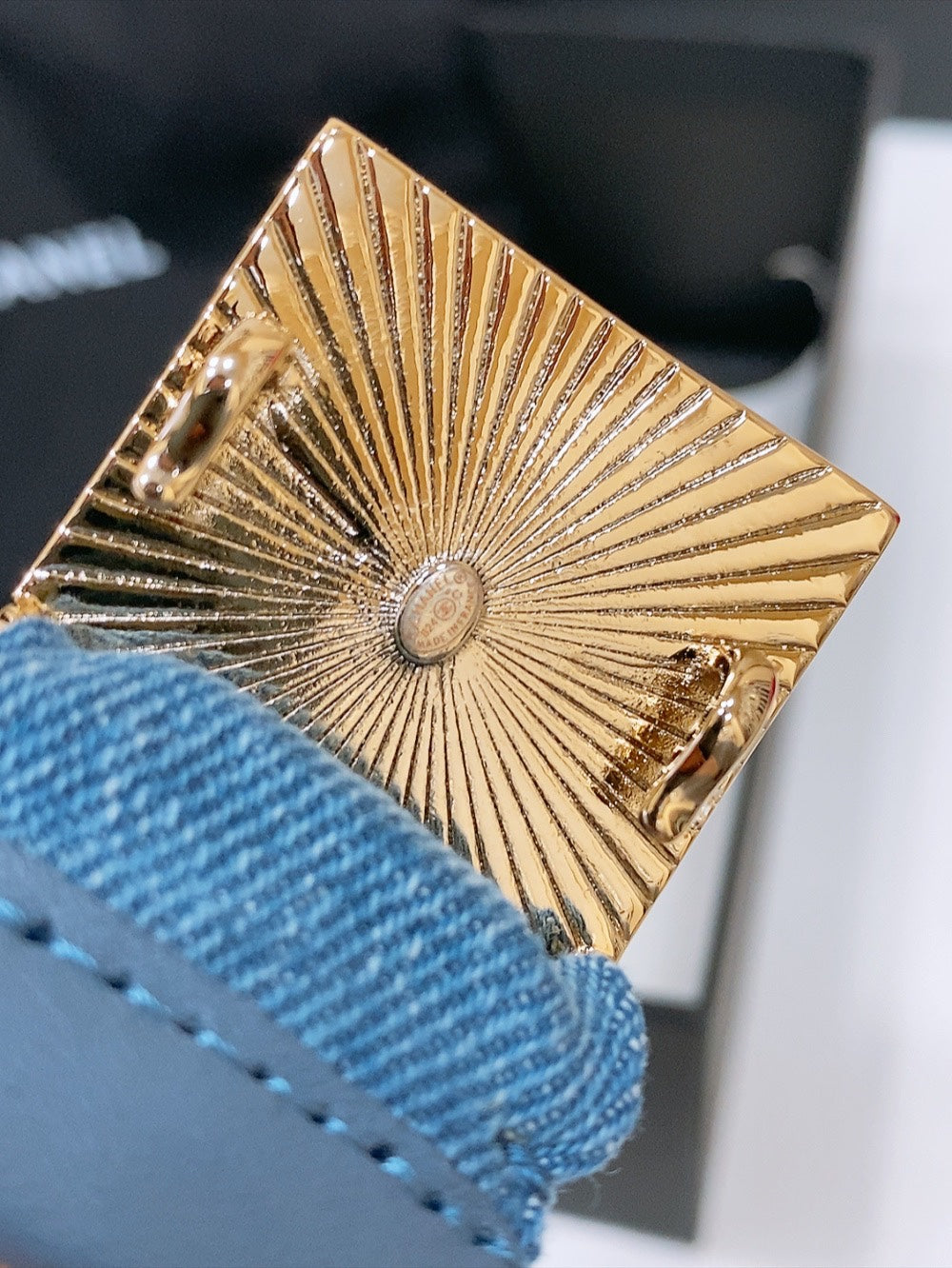 DOUBLE C ELASTIC BELT 30MM IN BLUE DENIM SQUARE GOLD BUCKLE BLACK LOGO