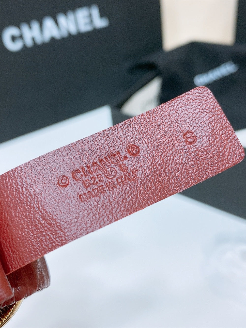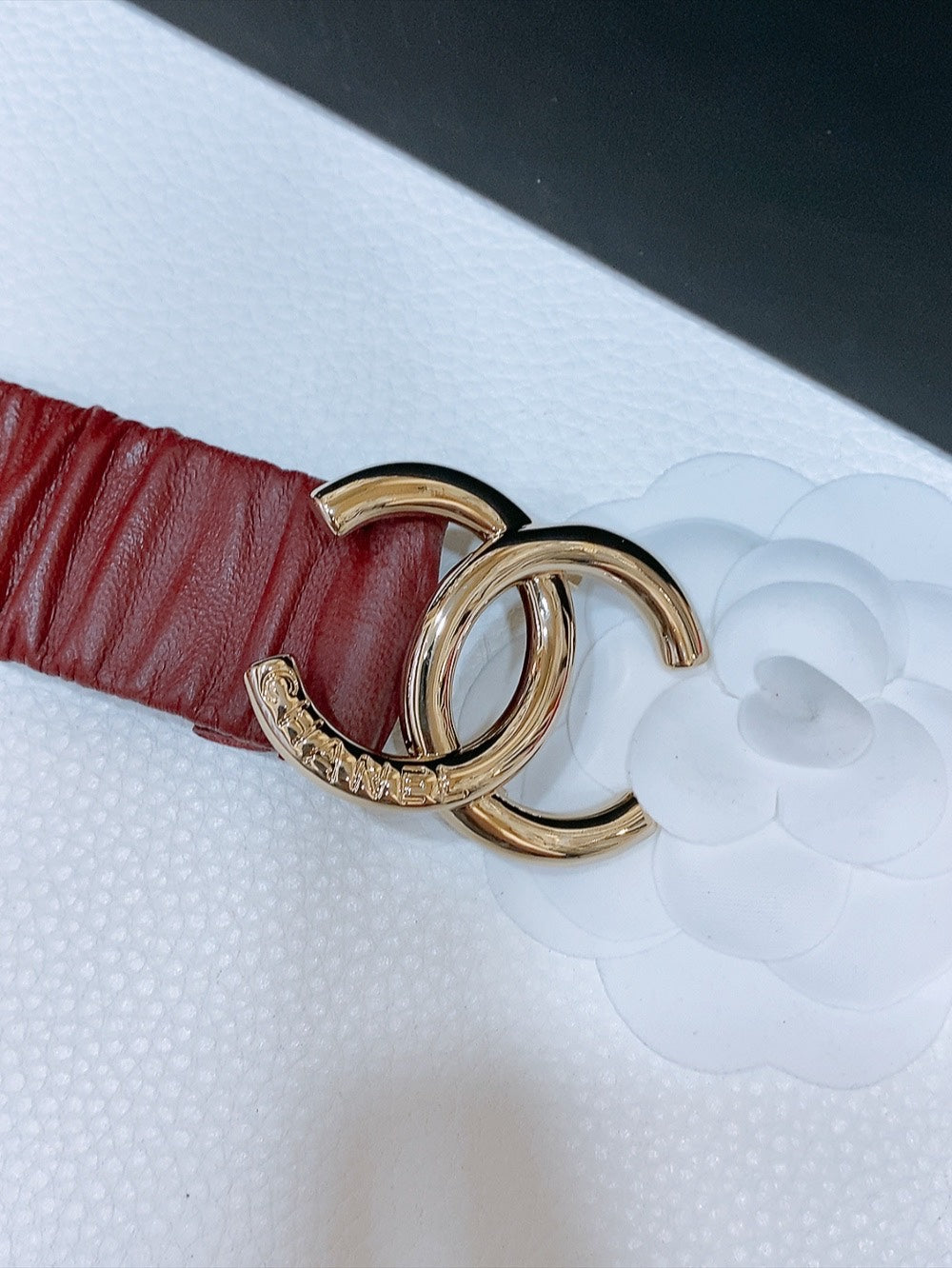 DOUBLE C ELASTIC BELT 30MM IN RED PATENT CALFSKIN GOLD HARDWARE