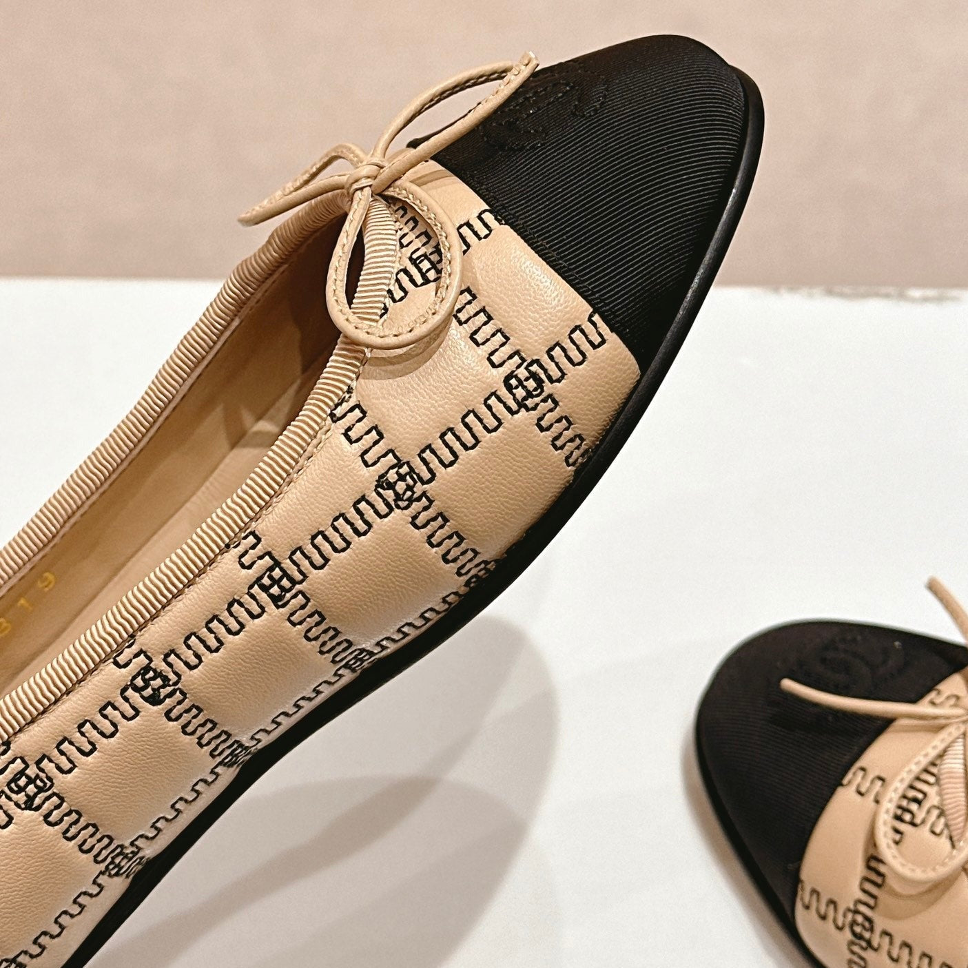 Double C New Ballet Flats Dark Cream Black Lambskin
