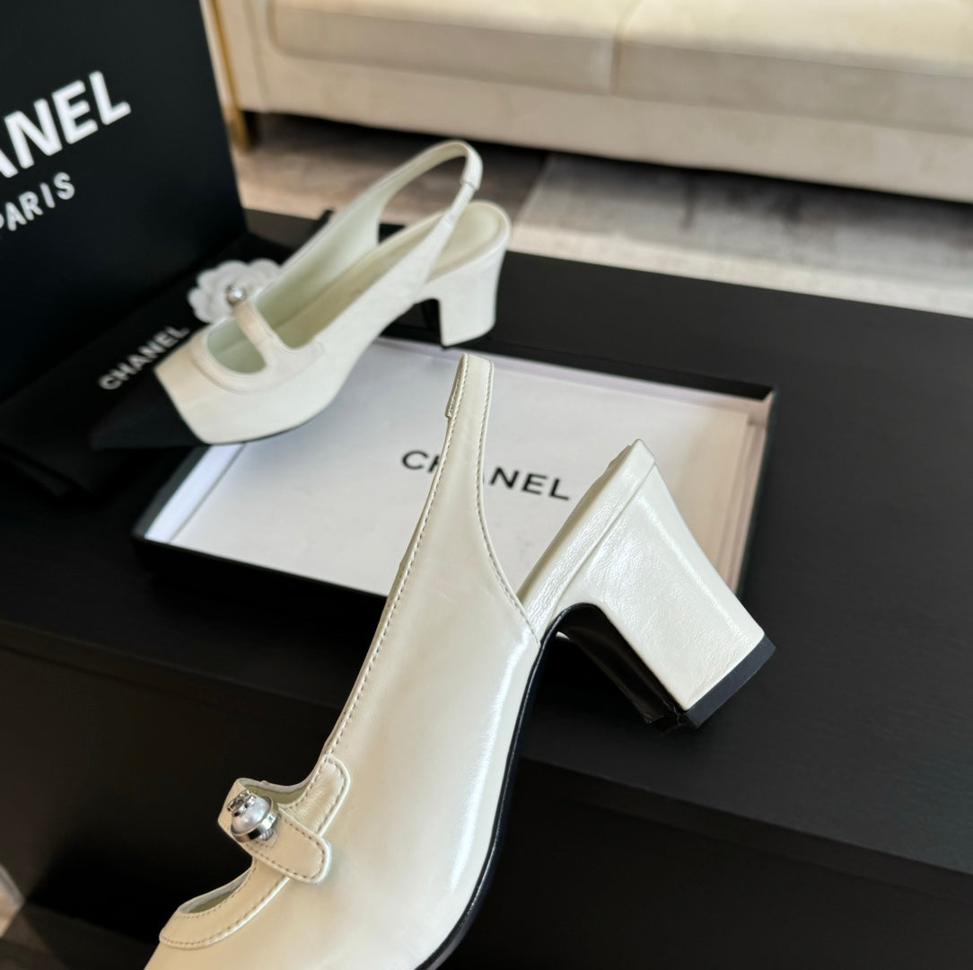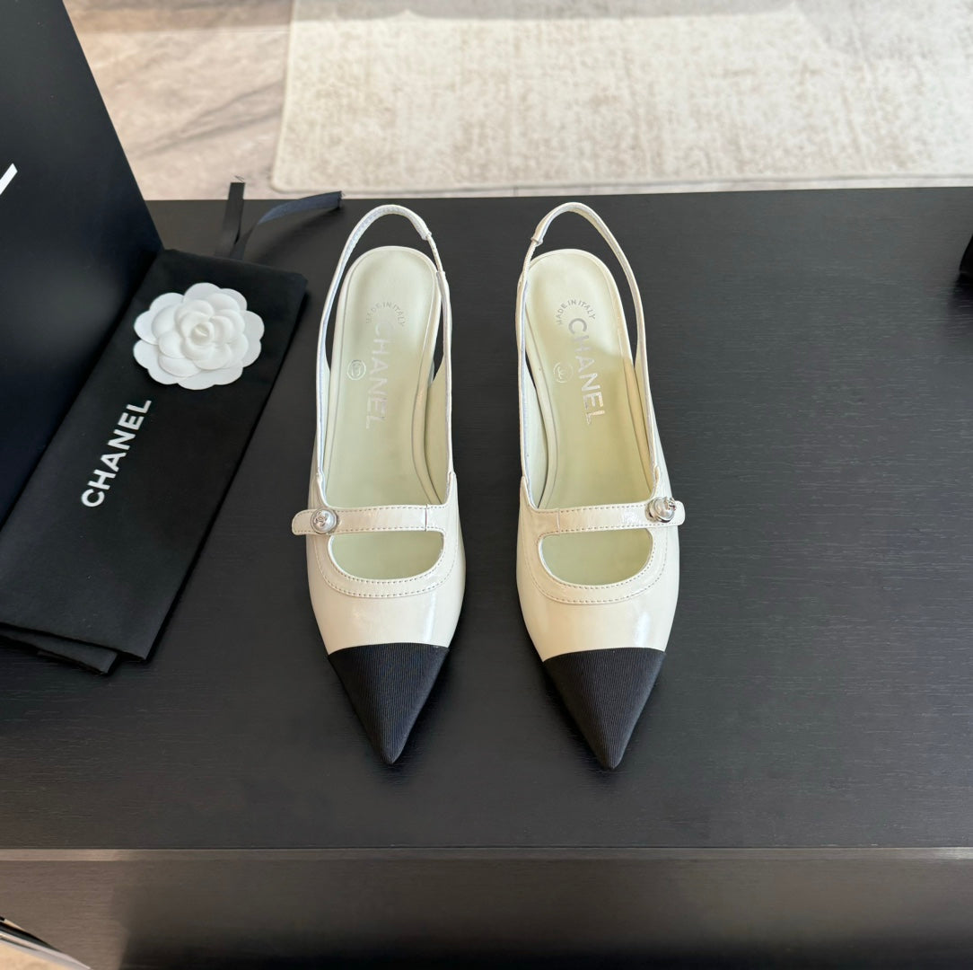 Double C WOMEN'S Slingback SPIRIT TOE White Lambskin