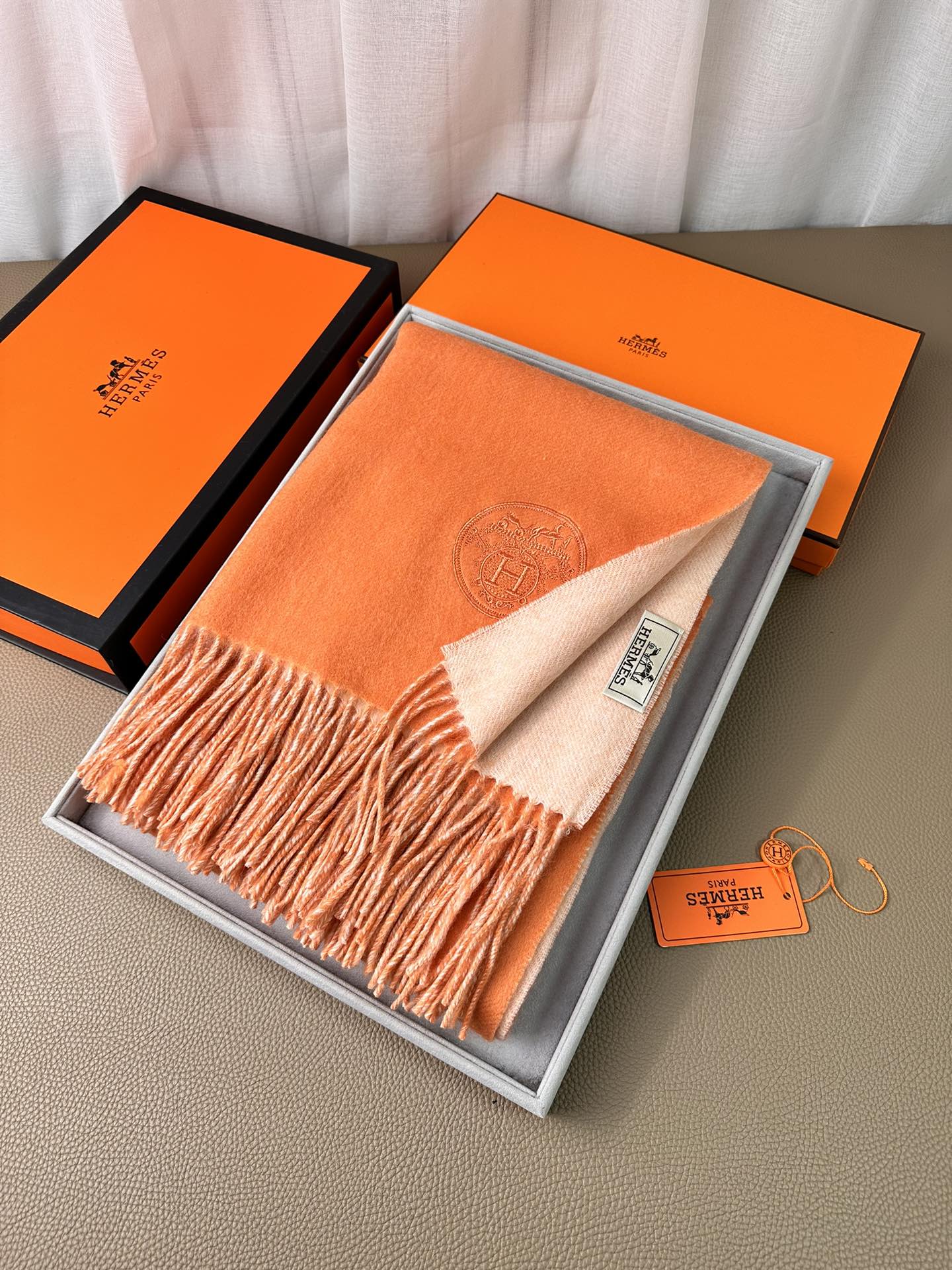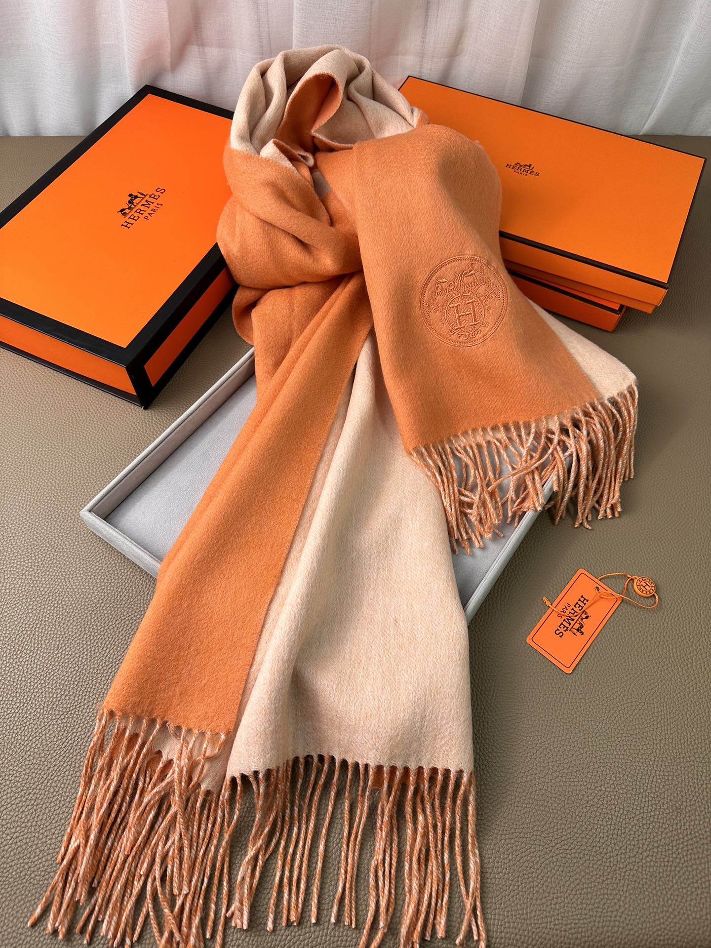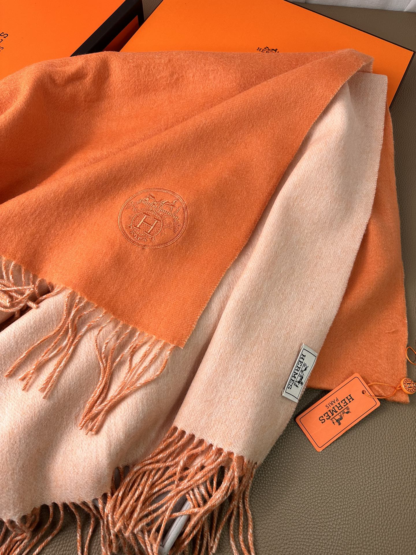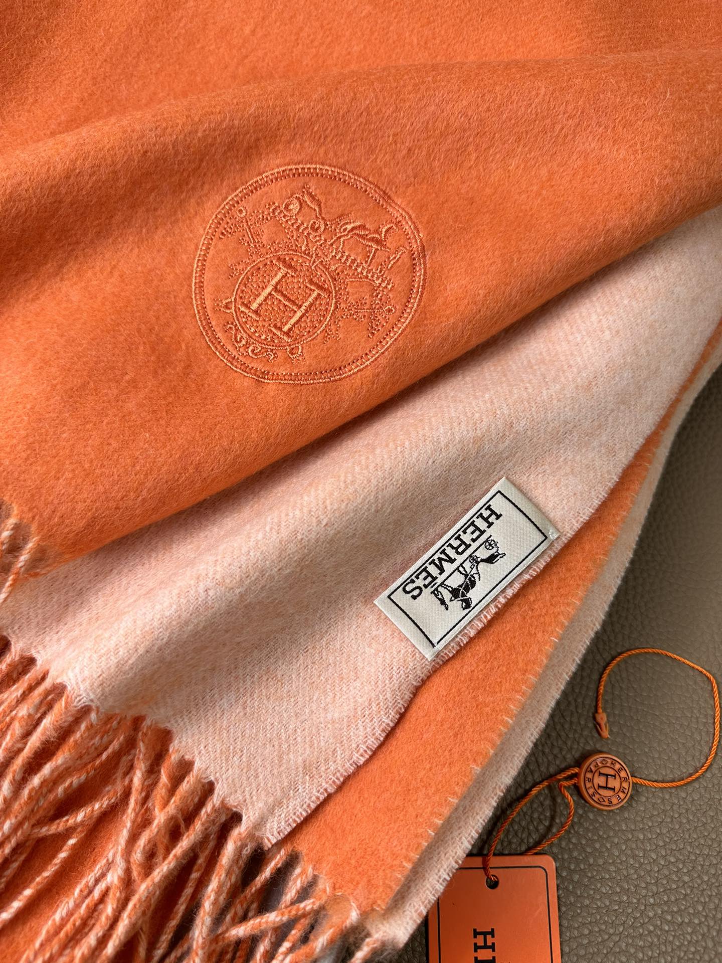 DOUBLE-FACE SCARF 200 CM IN TIGER ORANGE CASHMERE