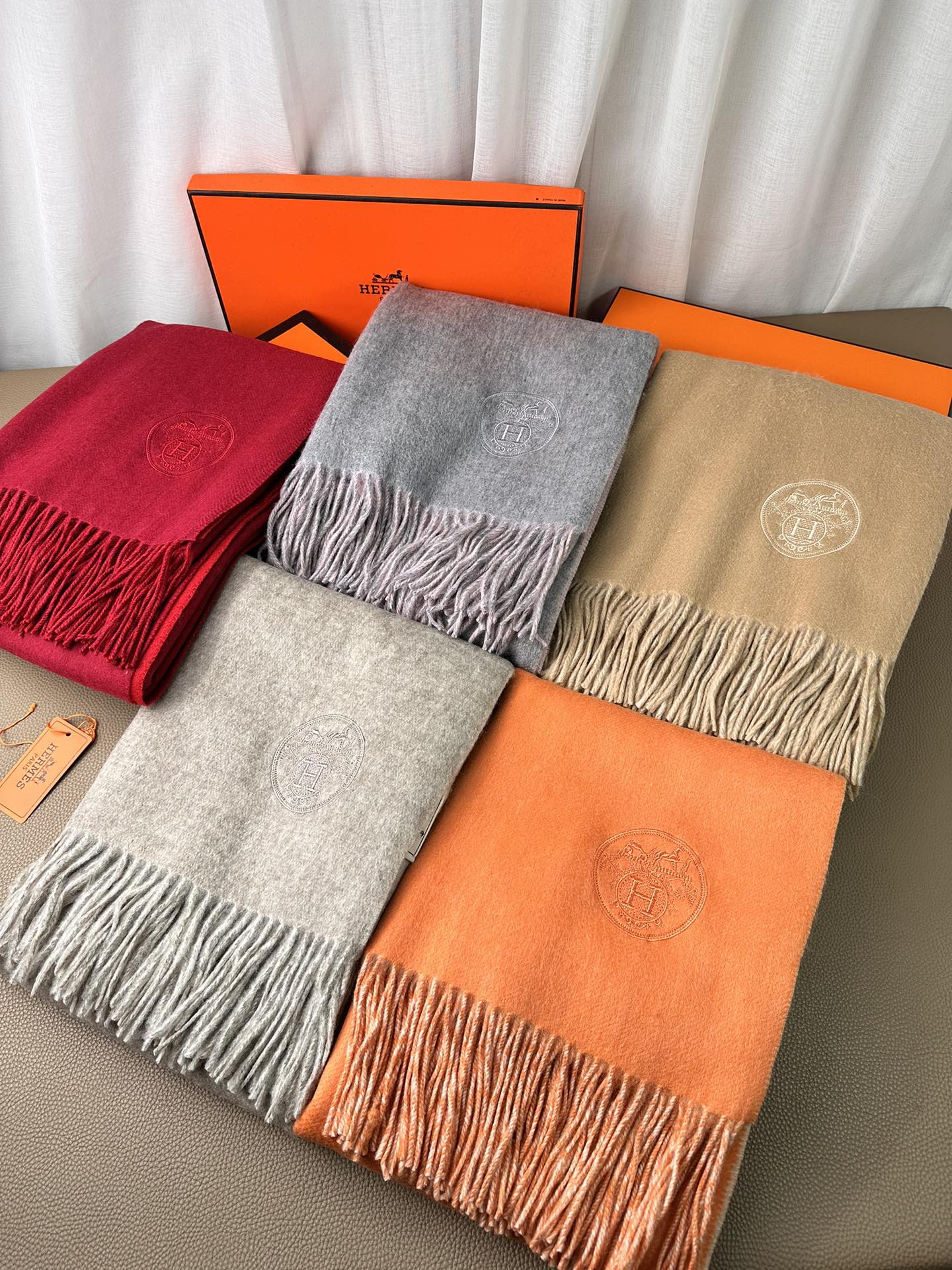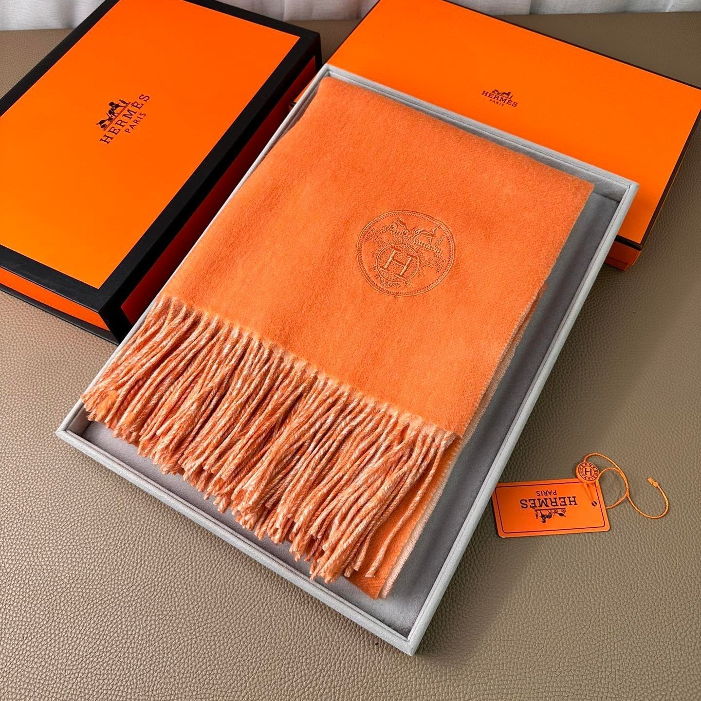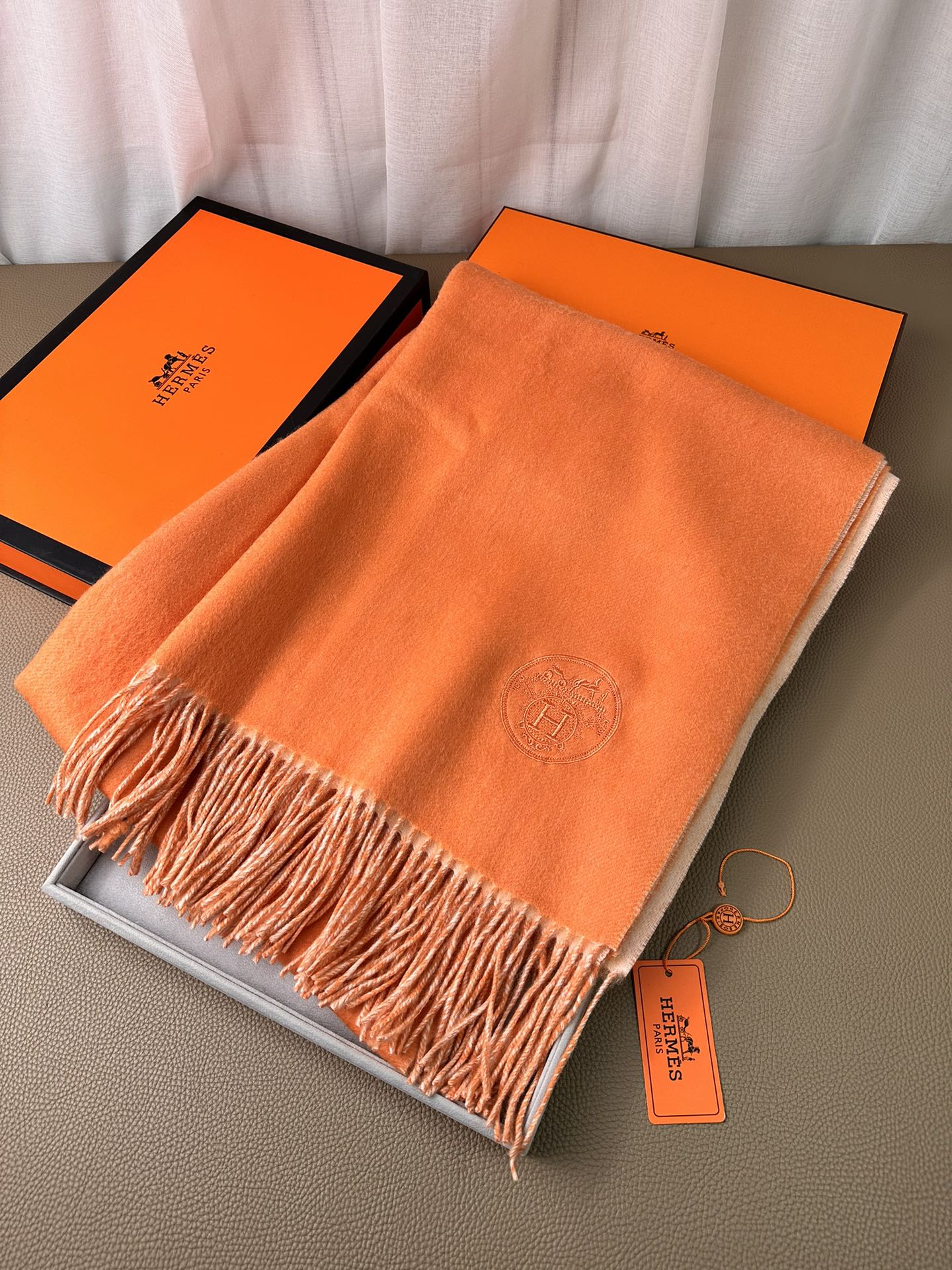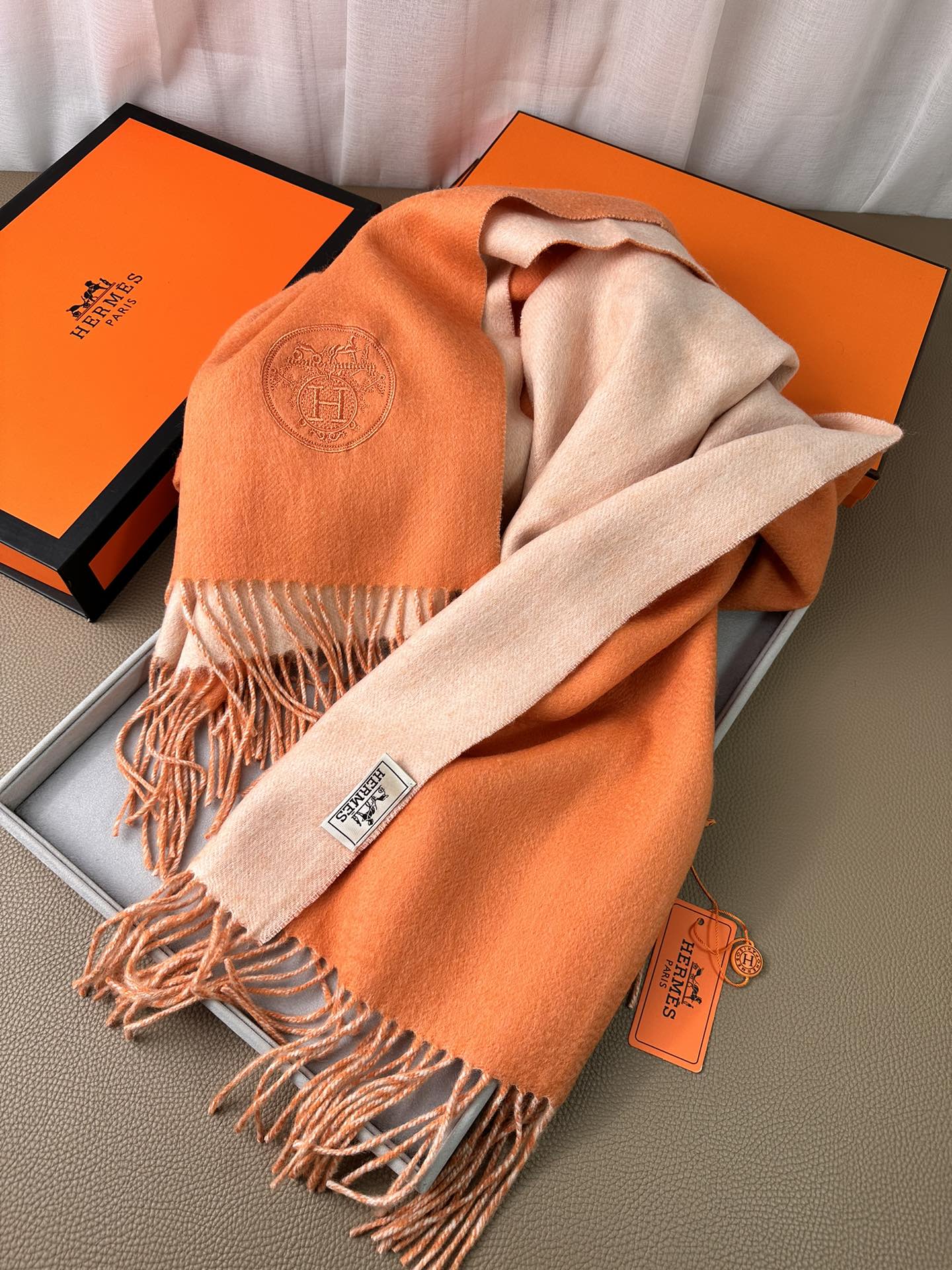 DOUBLE-FACE SCARF 200 CM IN TIGER ORANGE CASHMERE