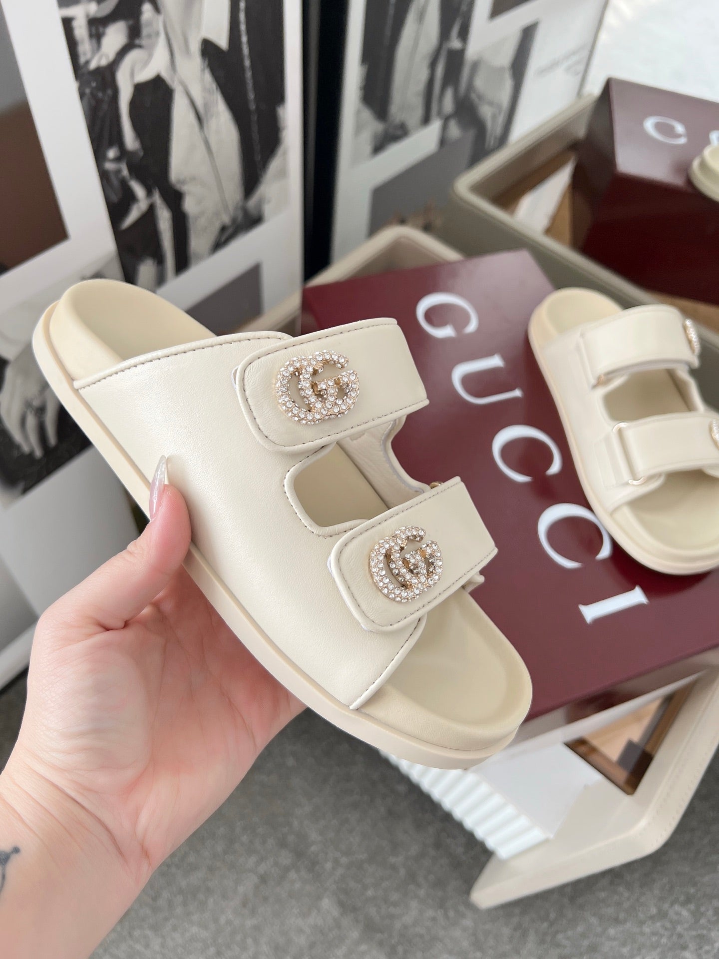 DOUBLE G CRYSTAL FLAT SANDALS IN IVORY SOFT LAMBSKIN