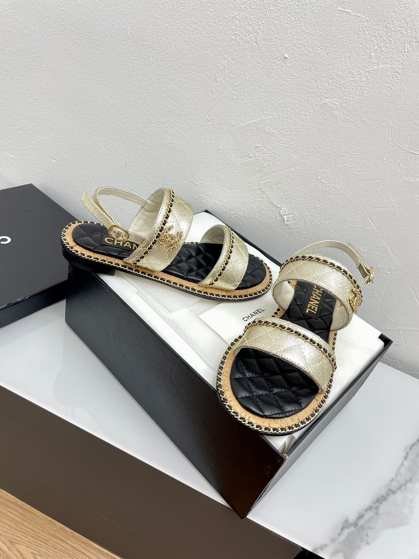 DOUBLE STRAPS SANDALS IN LIGHT GOLD LAMBSKIN