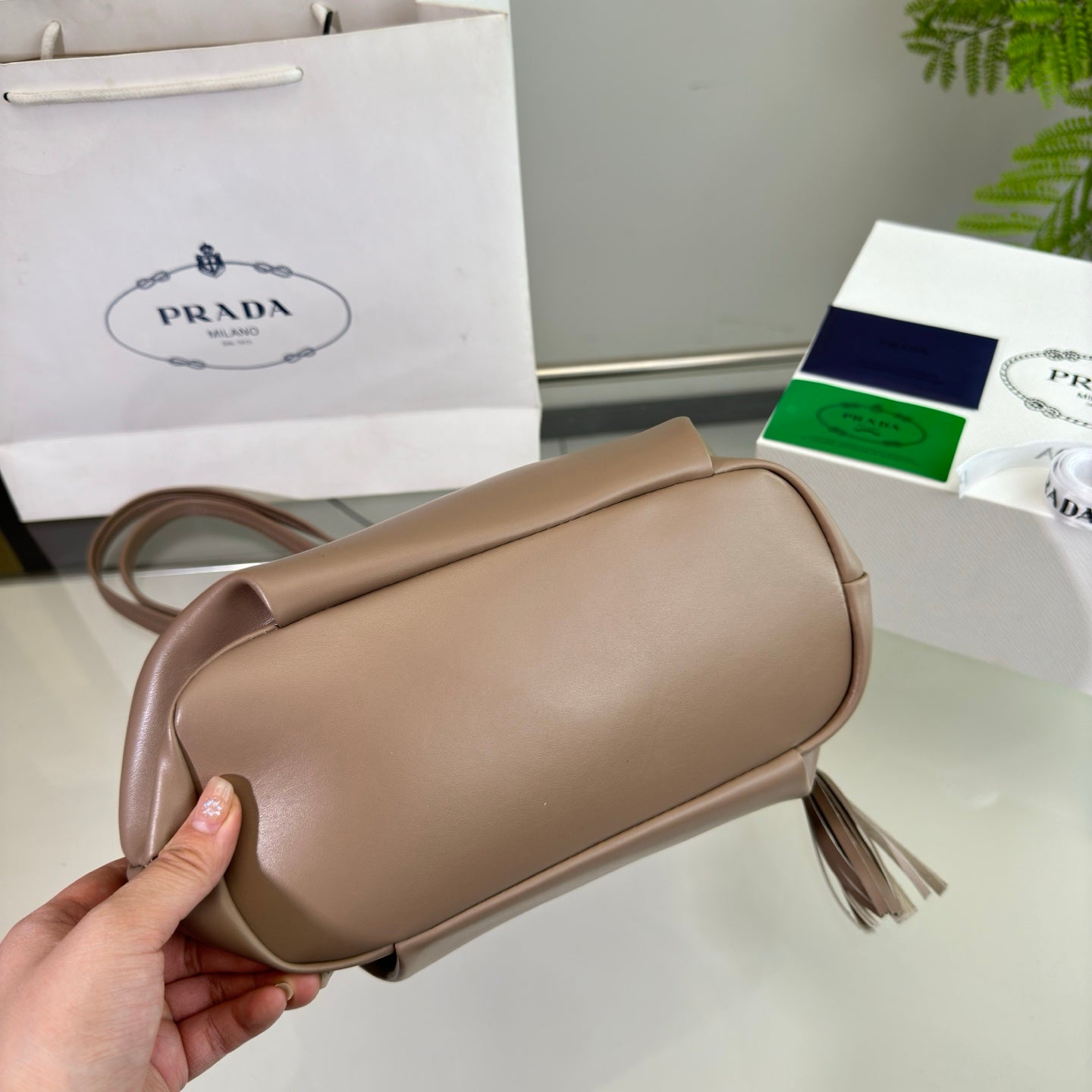 DRAWSTRING BUCKET BAG 25 IN BROWN BEAR SOFT LAMBSKIN