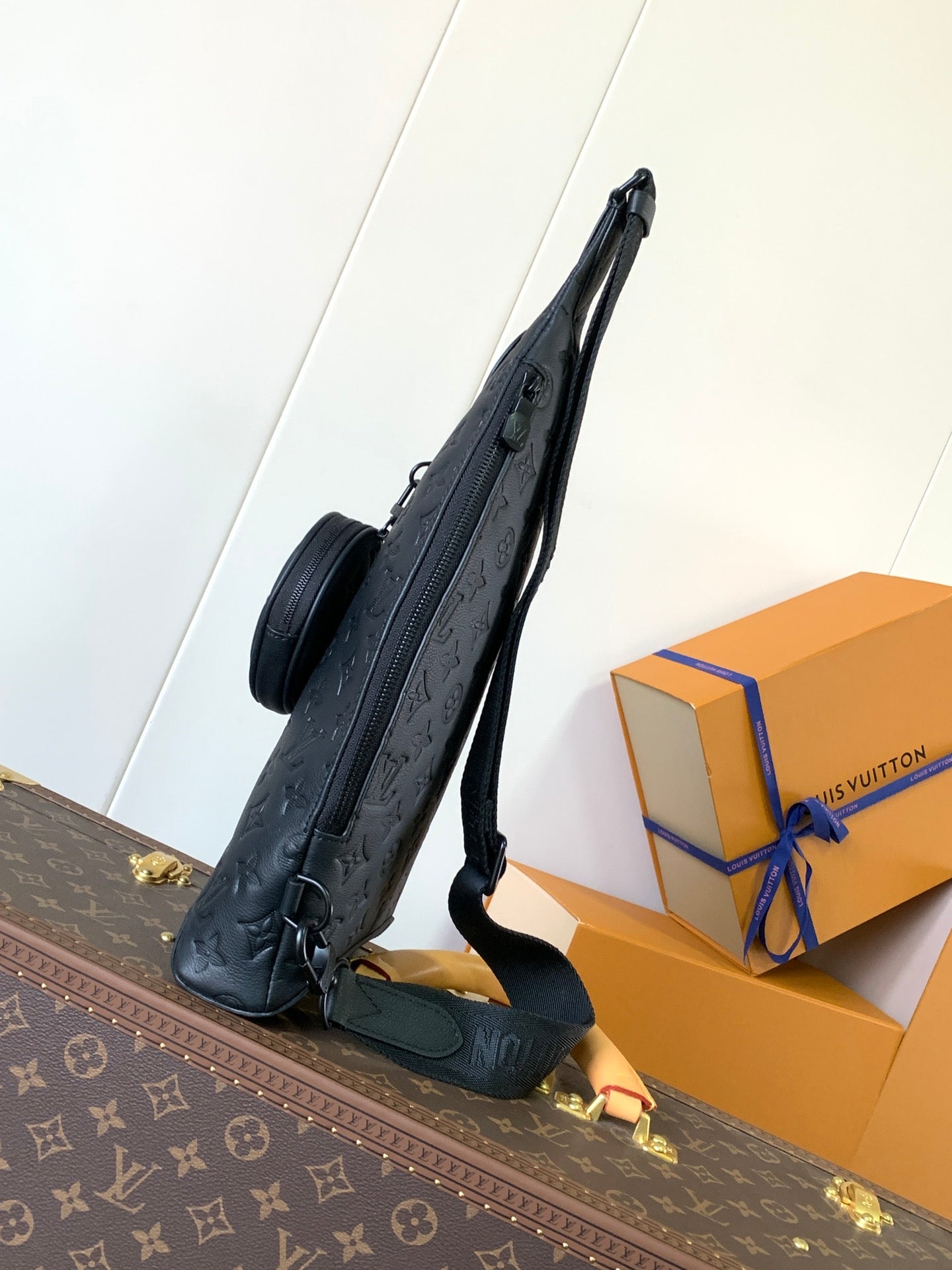 DUO CROSSBAG BAG 42 IN BLACK EMBOSSED CALFSKIN
