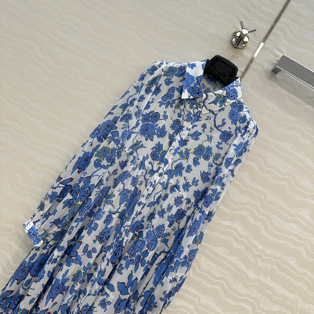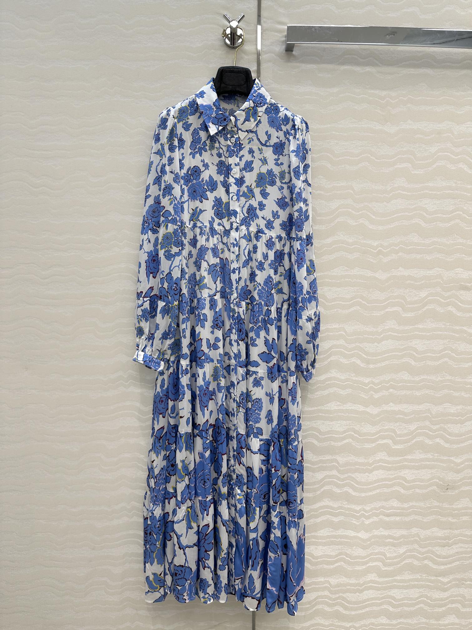 DVF PREMIUM BLUE FLORAL SILK DRESS