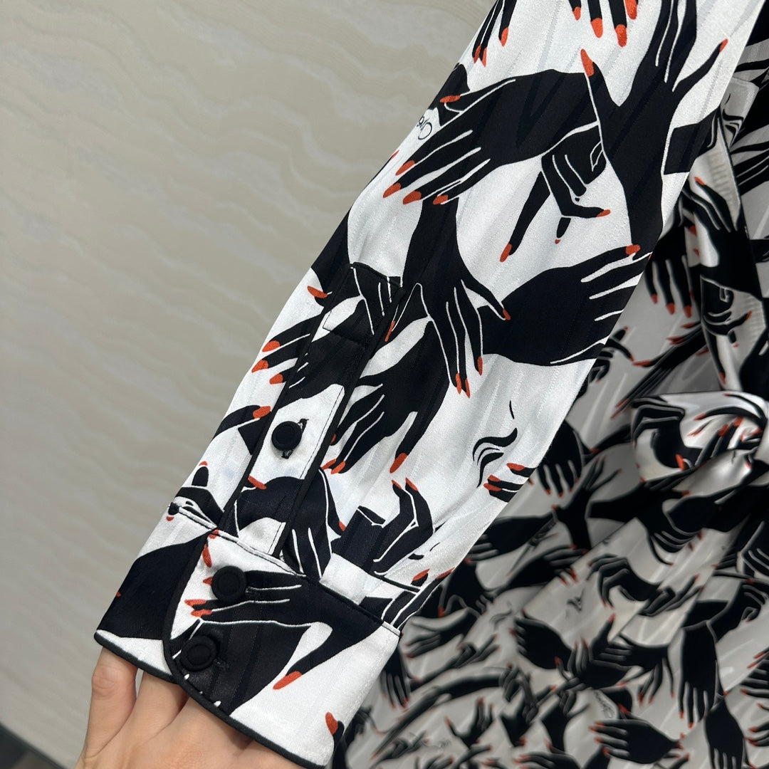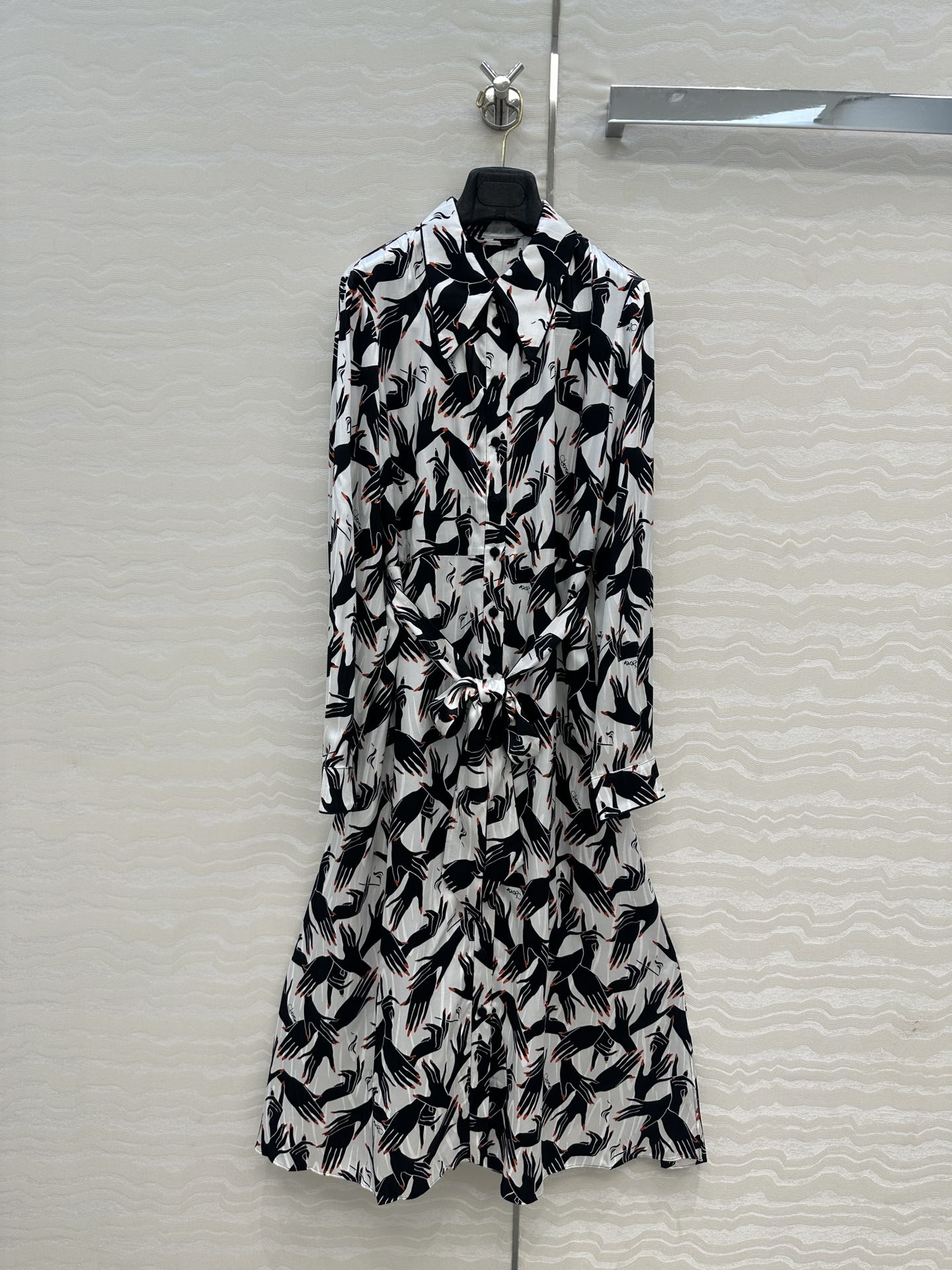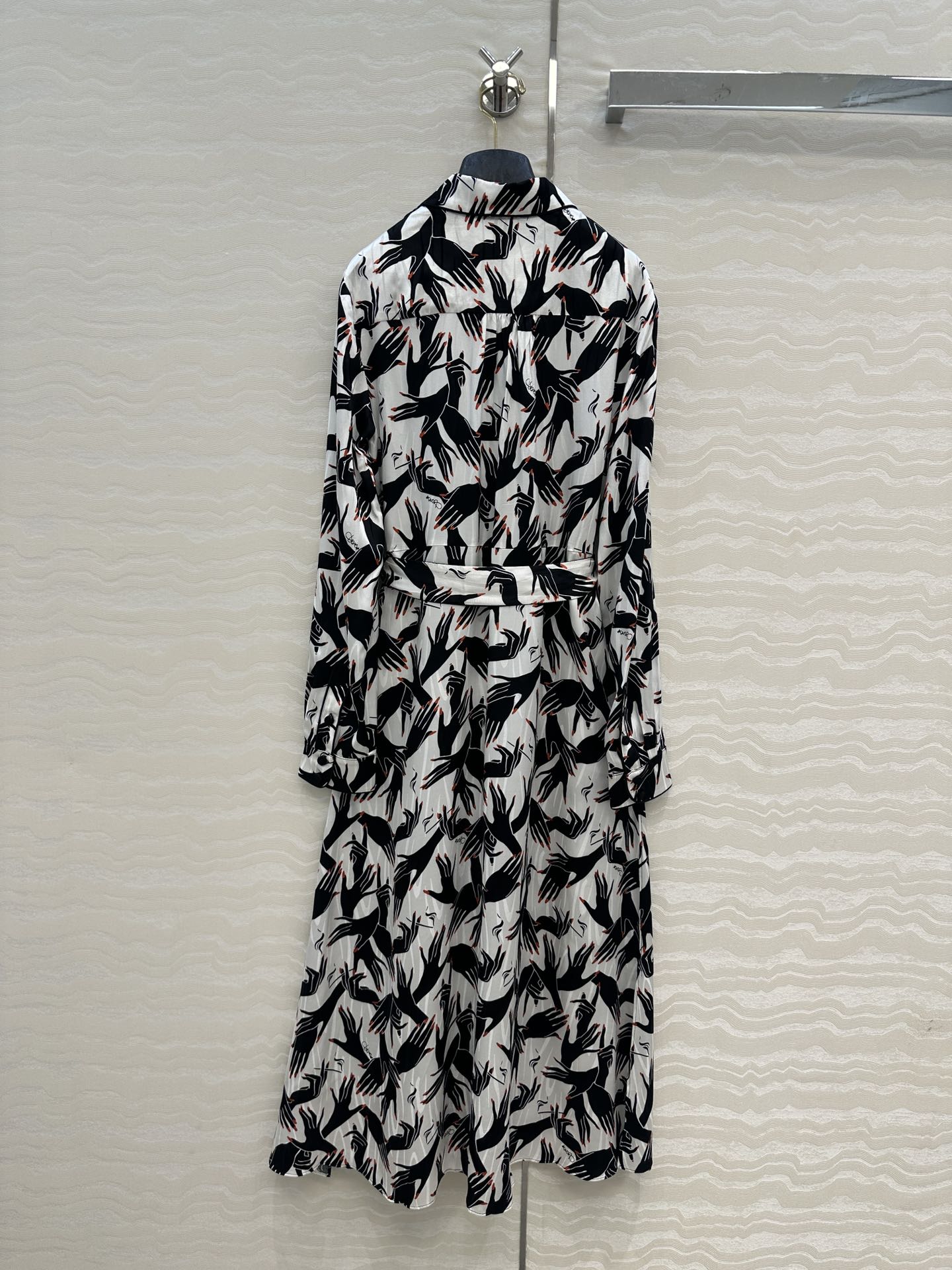 DVF WHITE AND BLACK PRINTED SILK SHIRT DRESS